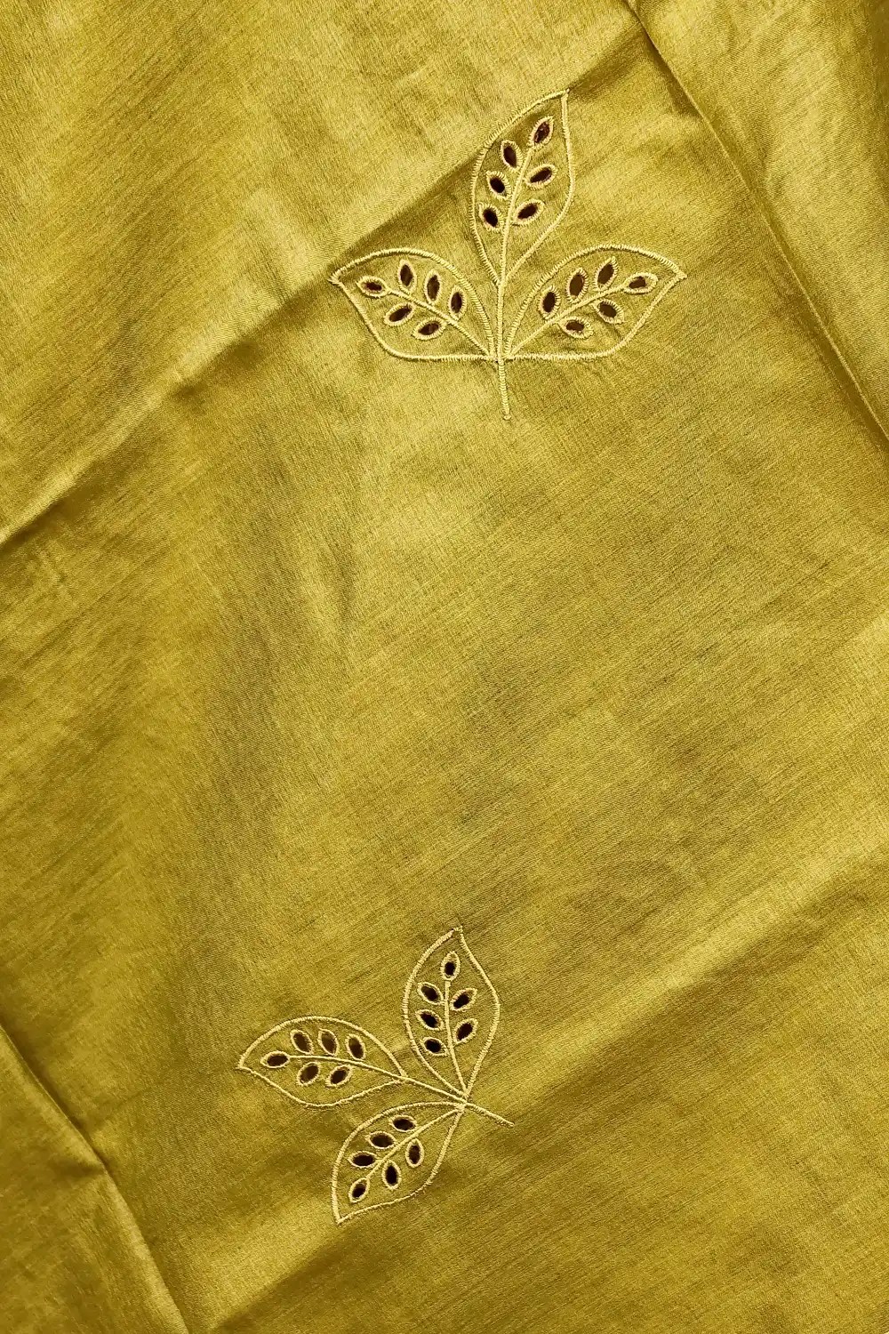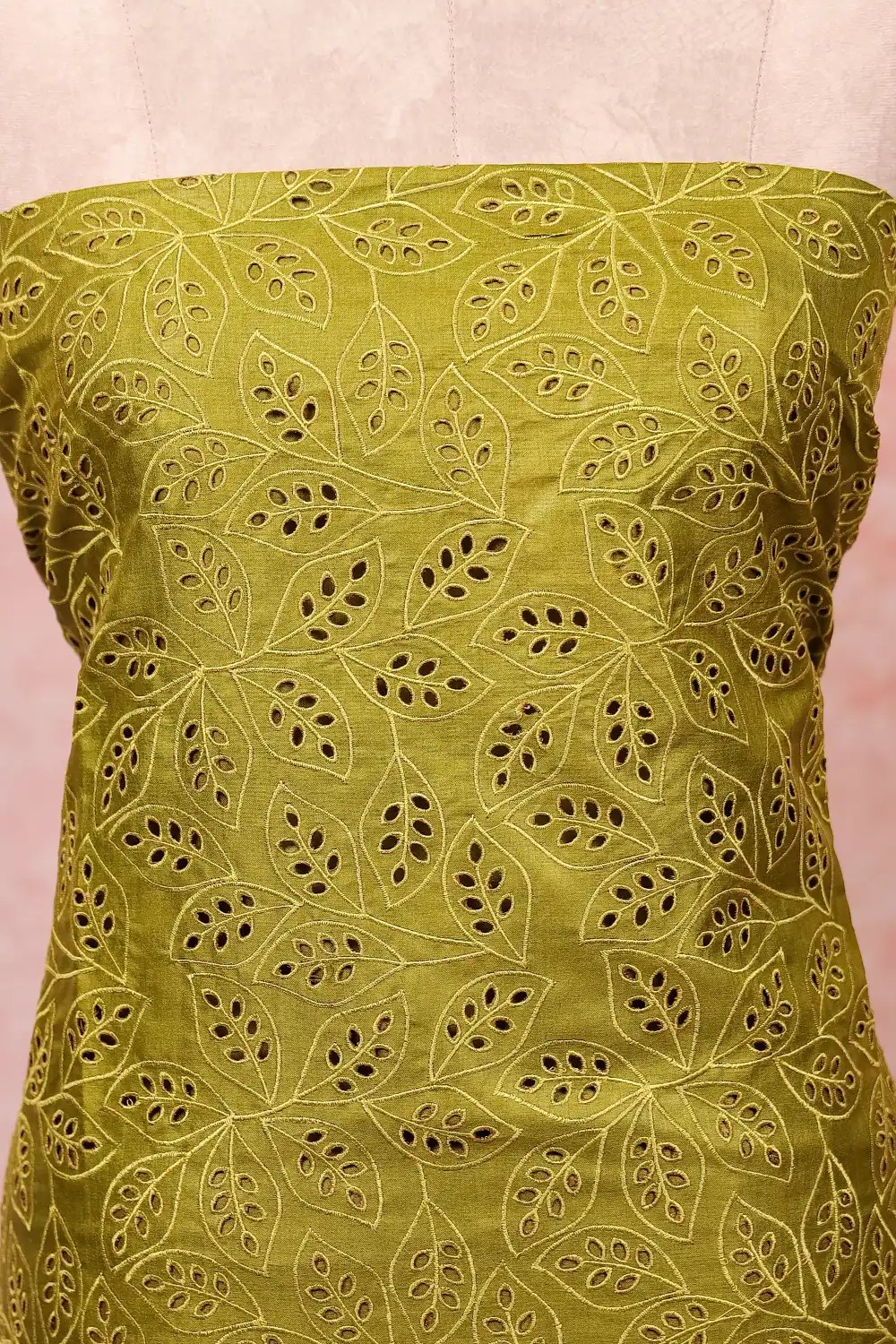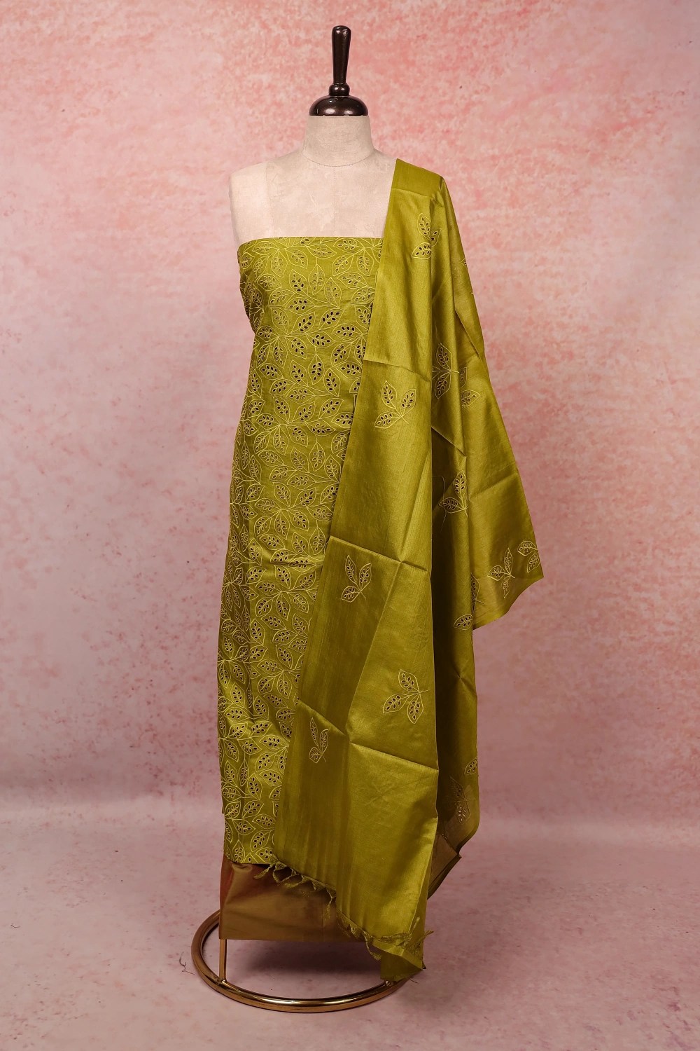 Mehandi Green Tussar Silk Cuttwork Unstitched Churidhar Material