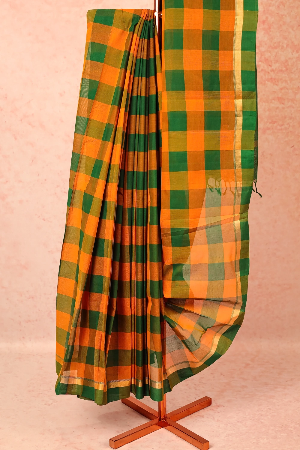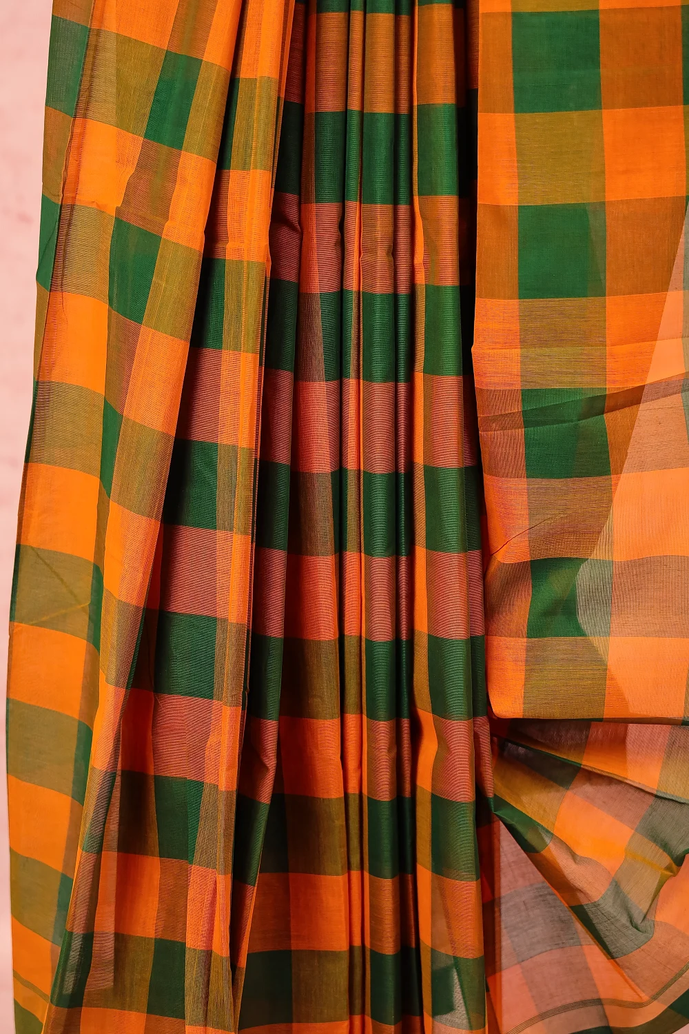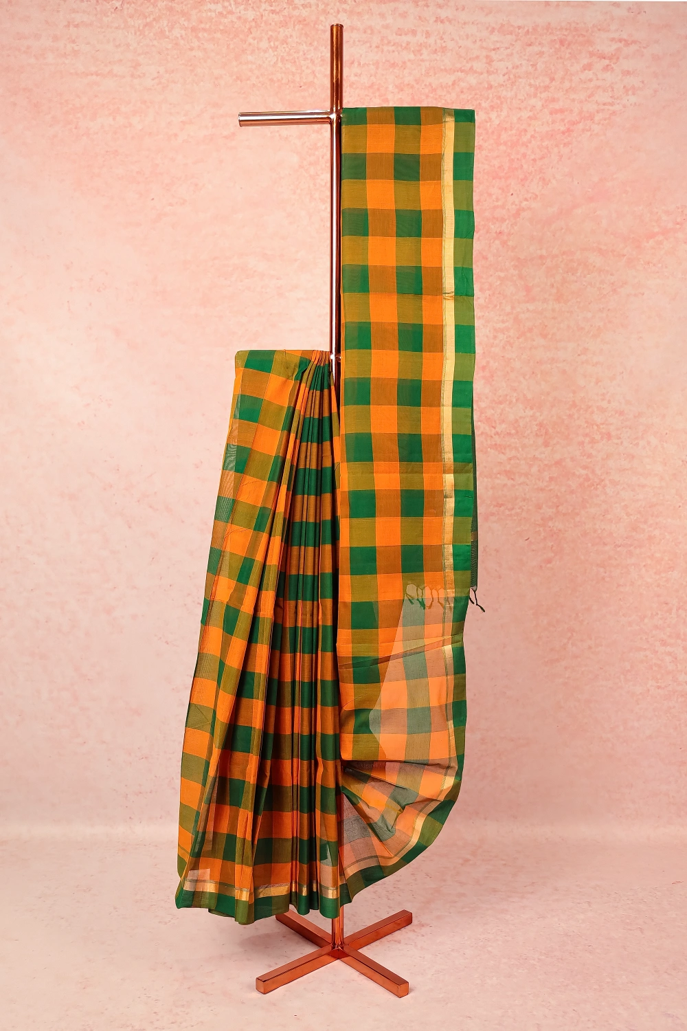 Multi Color Cotton Check Saree with Small border. Includes Unstitched Blouse