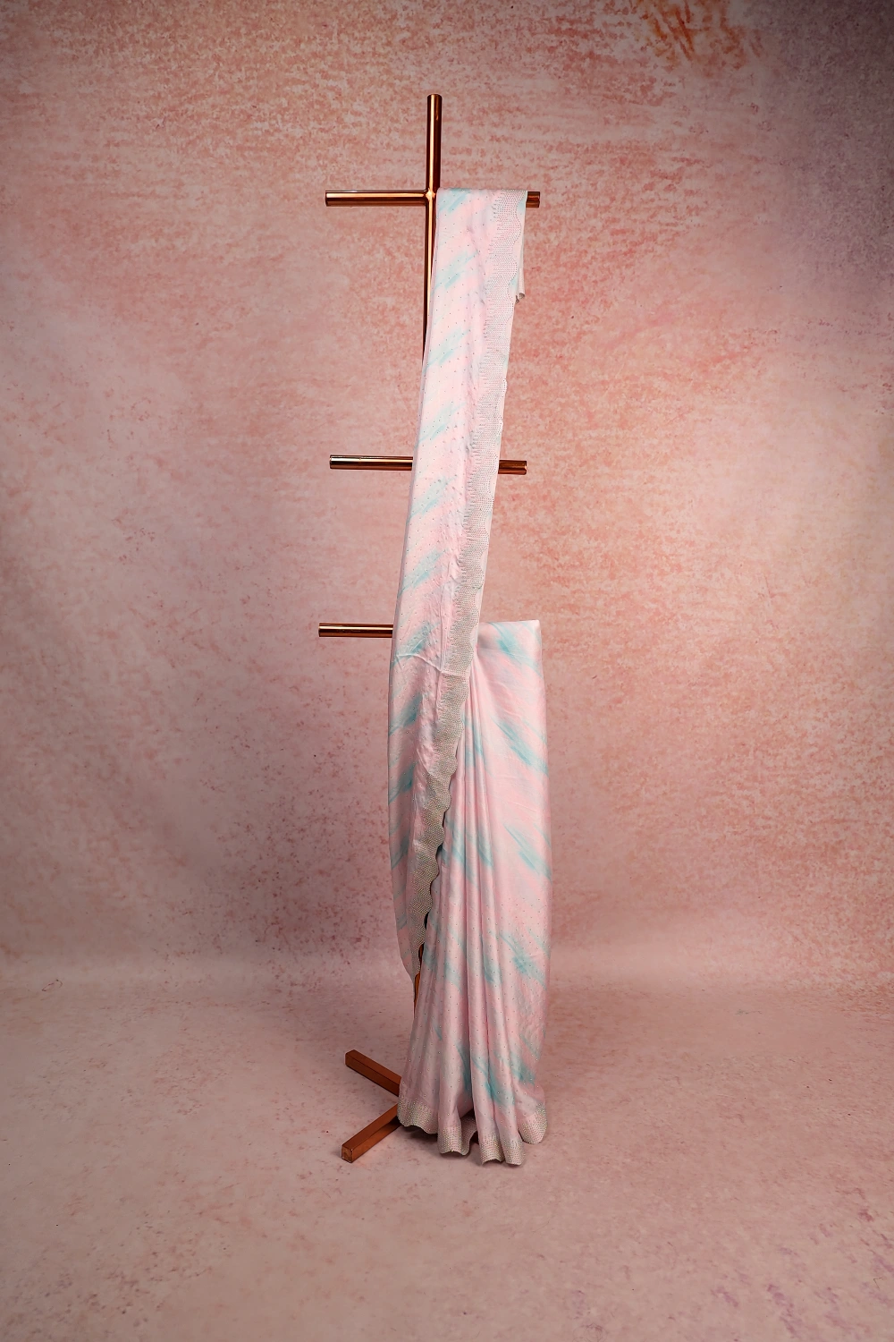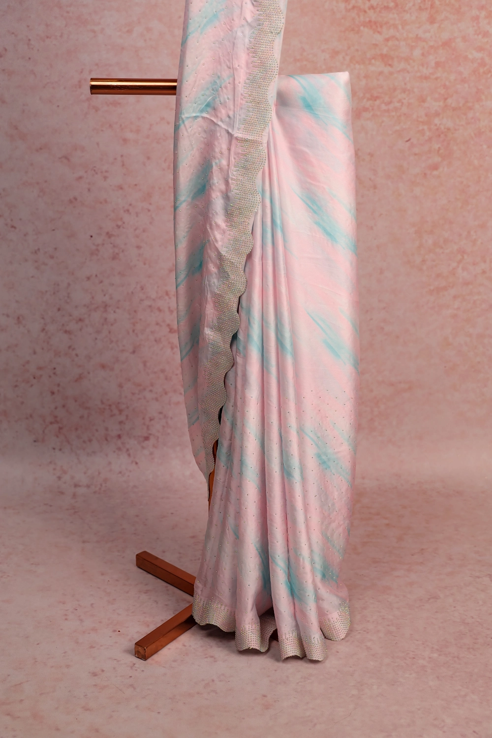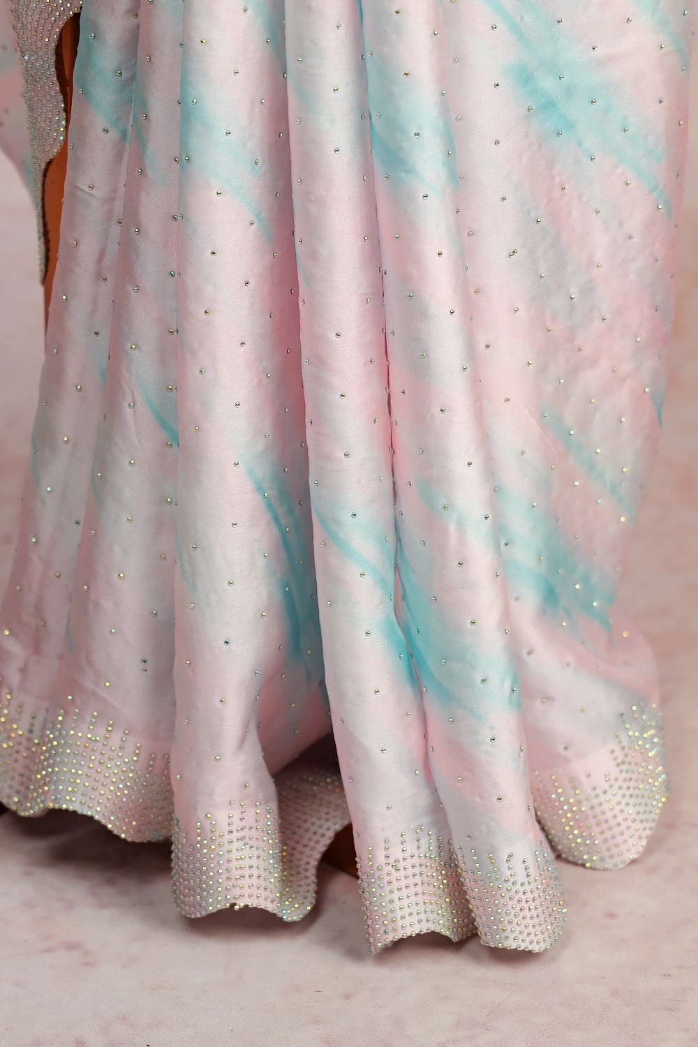 Multi Color Crepe Stone Work Saree with Scalp Border. Includes Un stitched Blouse