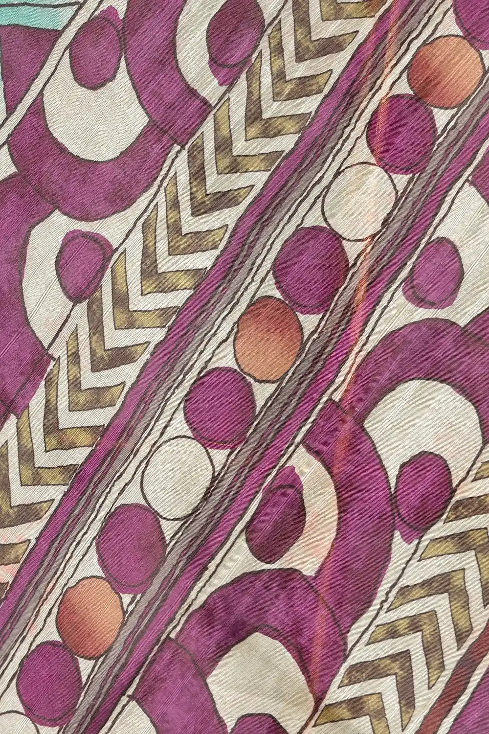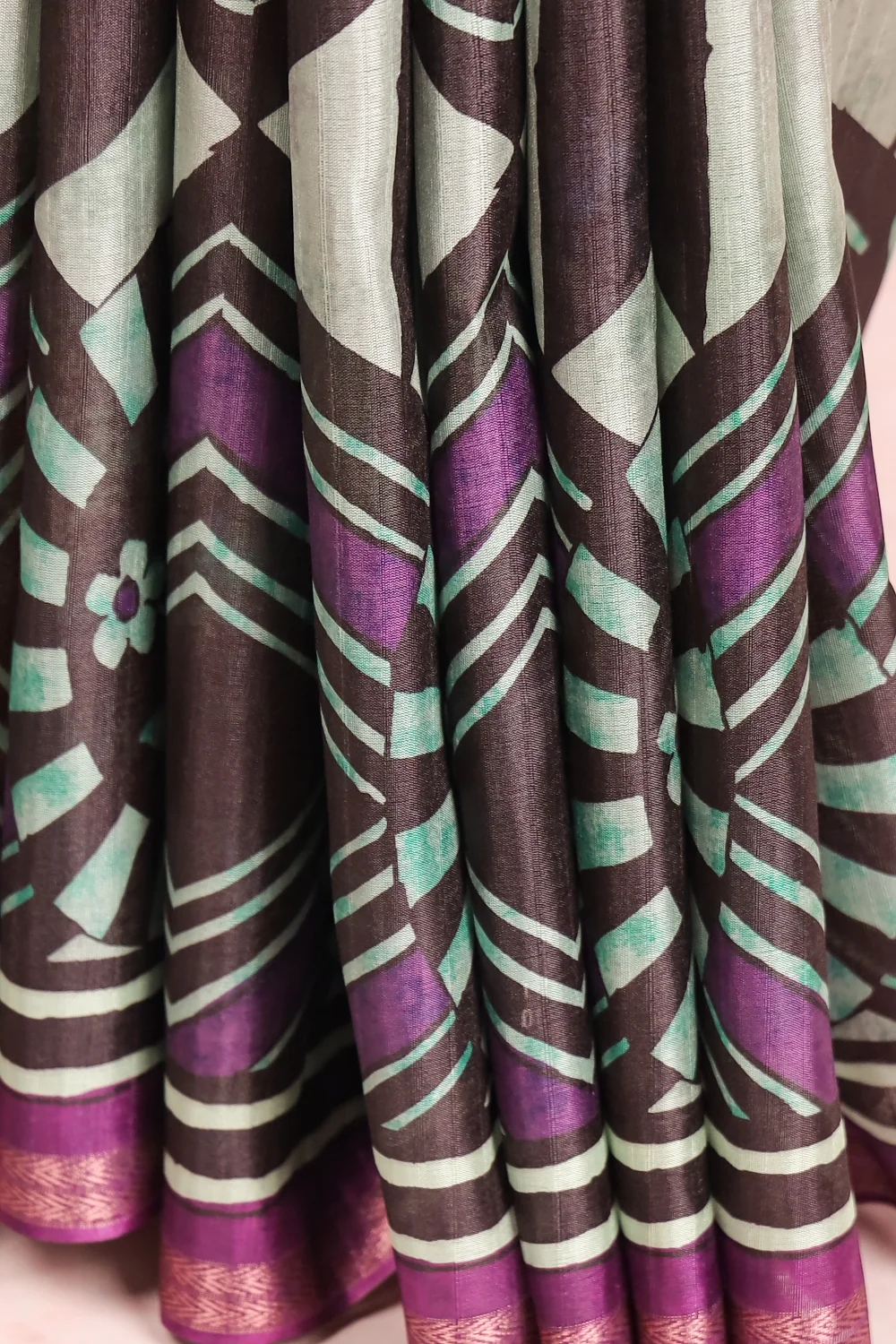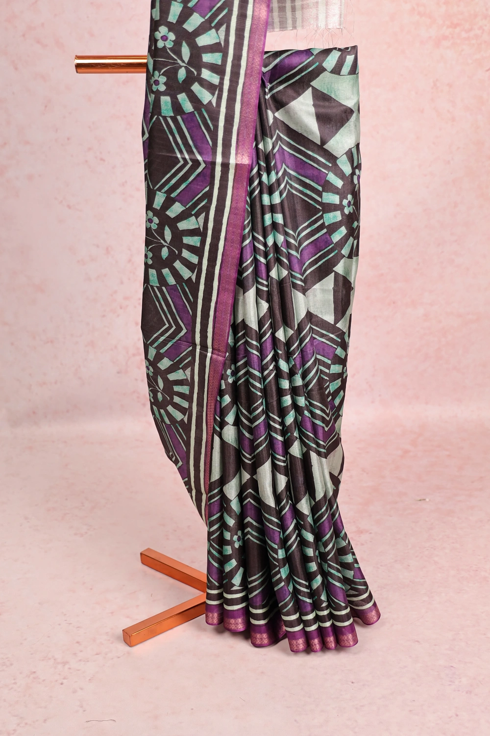 Multi Color Semi Tussar Printed Saree with Small Border. Includes Unstitched Blouse