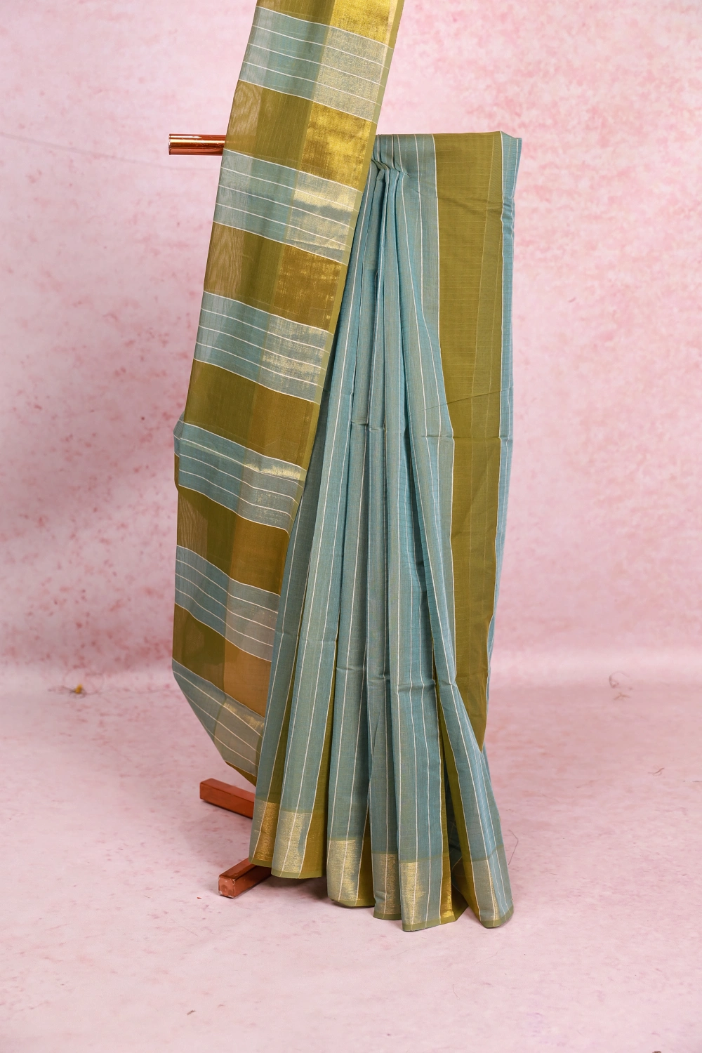 Multi Colour Cotton Stripes Saree with Small Border. Includes Unstitched Blouse