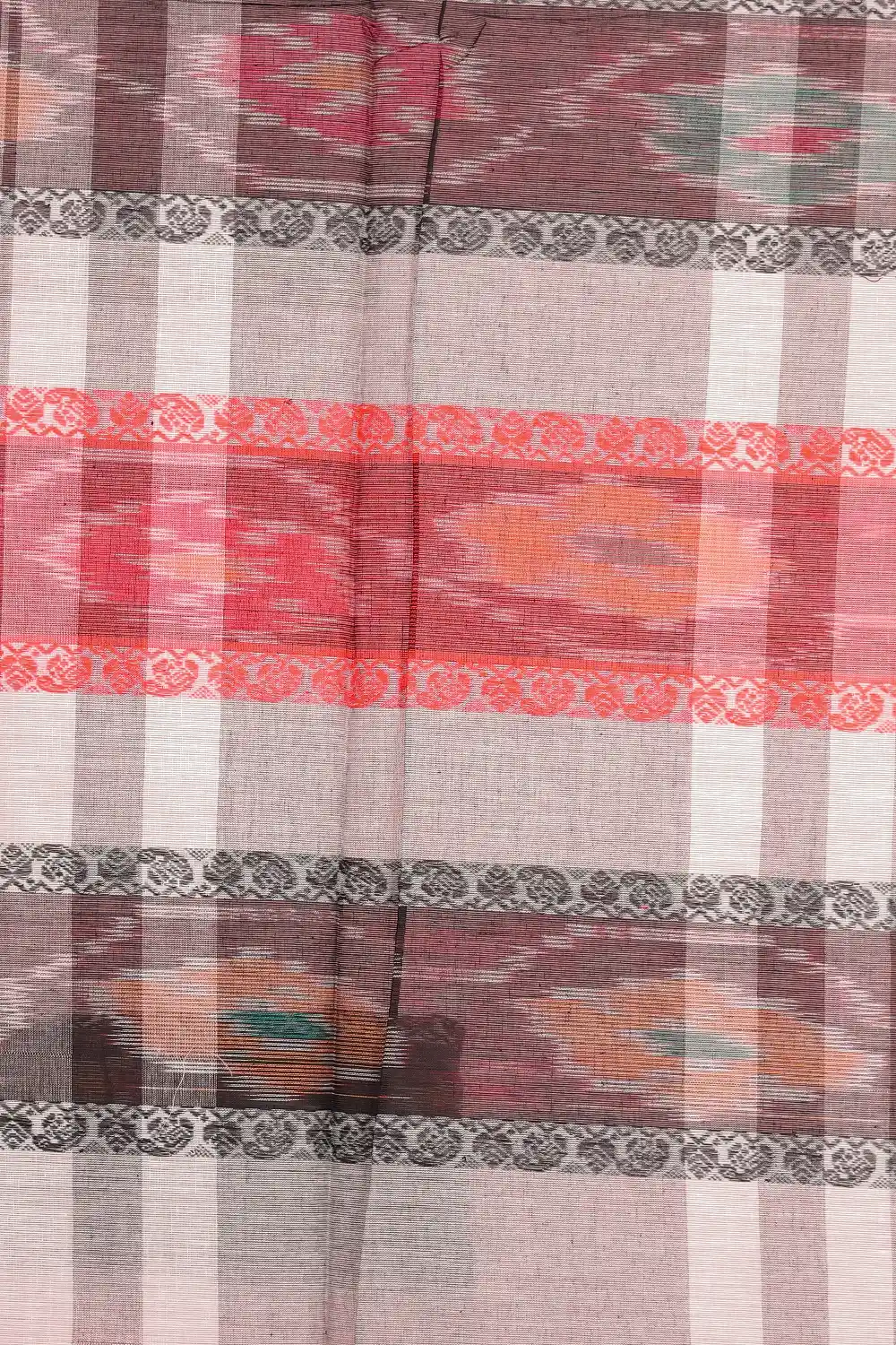 Multi Colour Cotton Thread Design Saree with Plain Border. Includes Unstitched Blouse