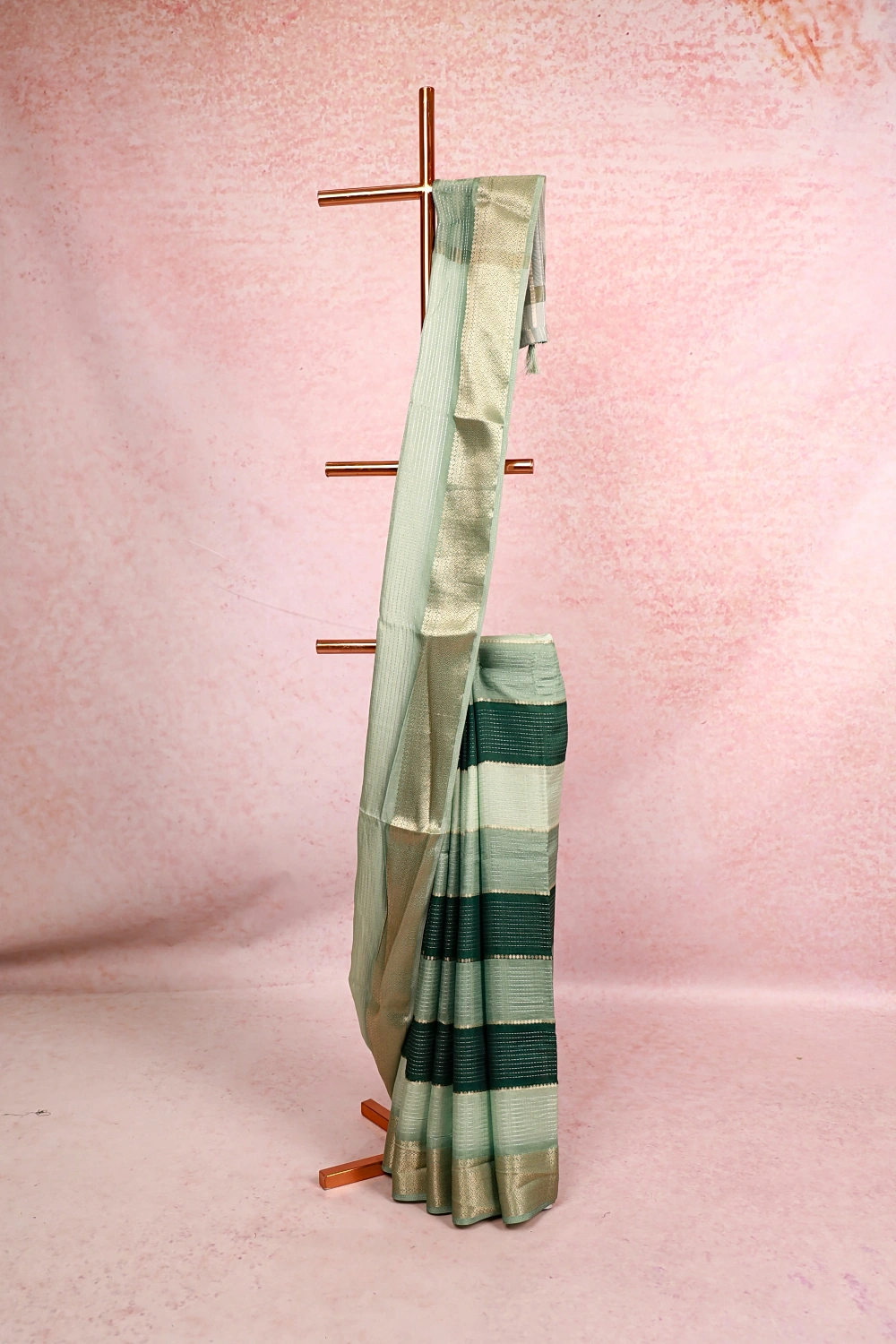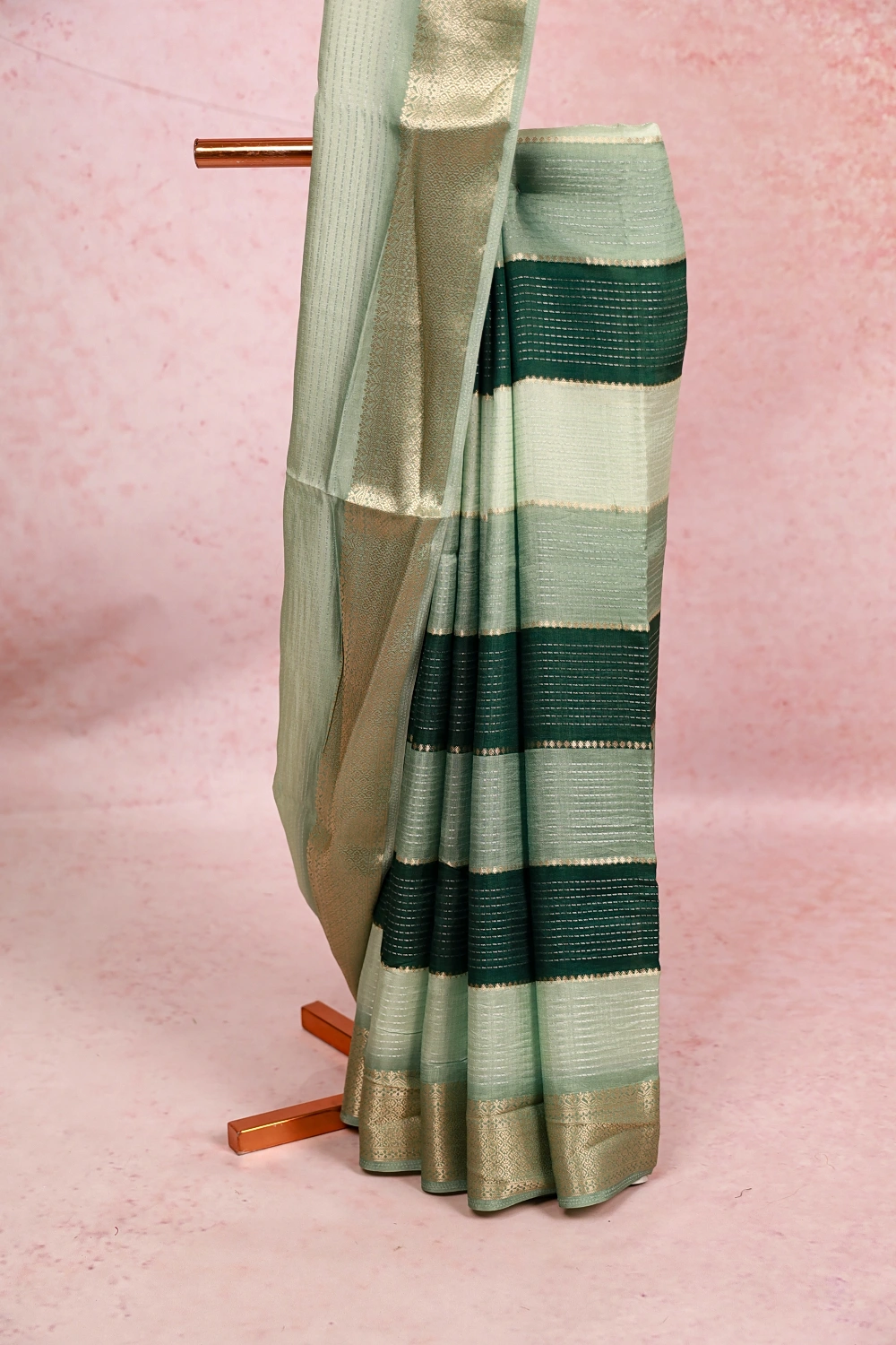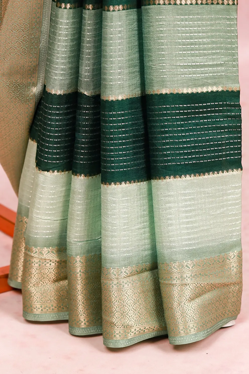 Multi Green Colour Semi Silk Zari Line Saree With Banarasi Border. Includes Unstitched Blouse