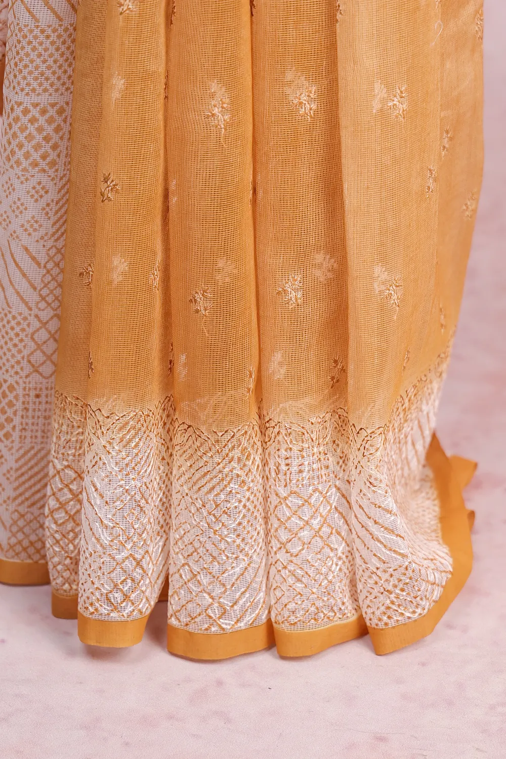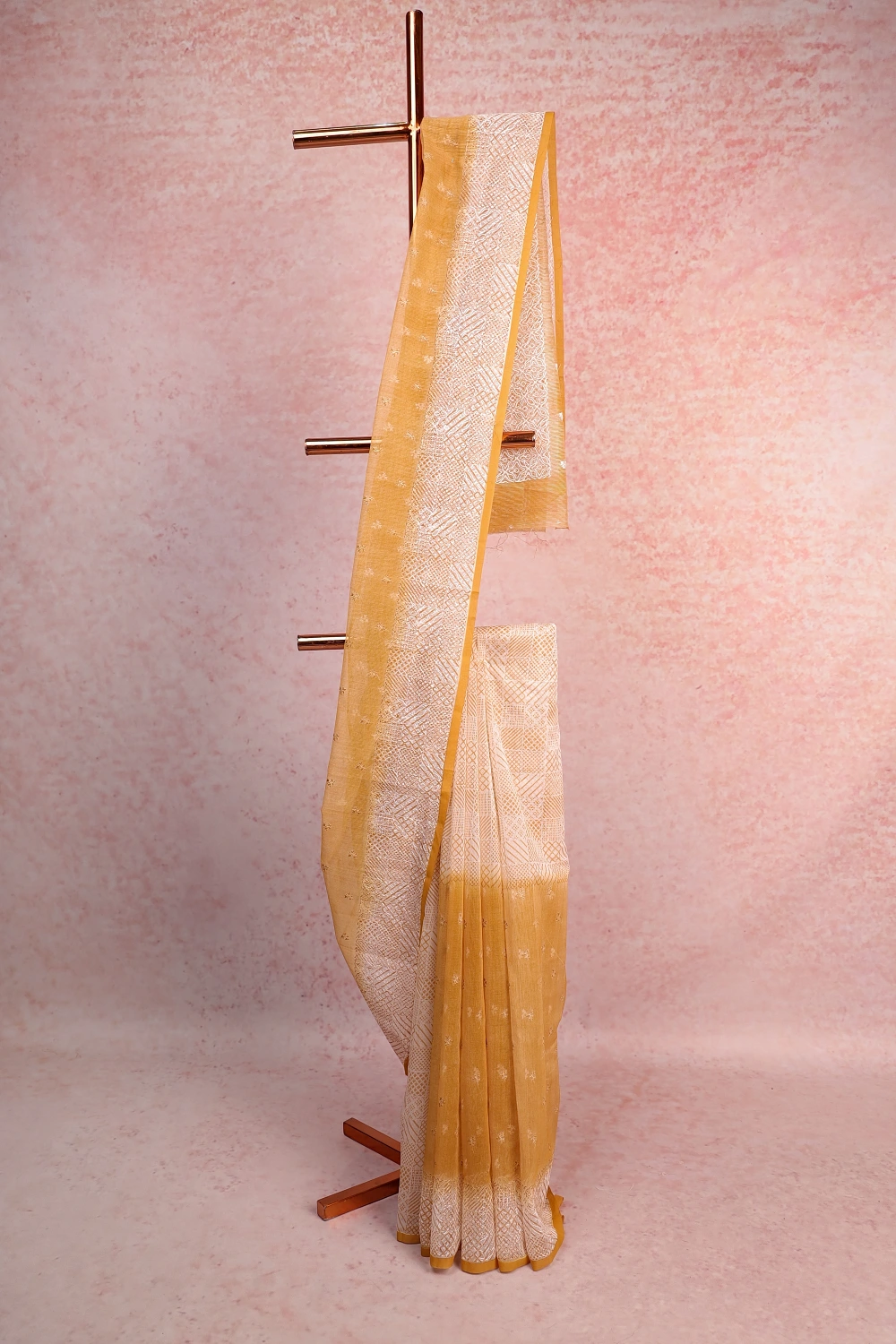 Mustard Kota Saree with Self Border. Includes Un stitched Blouse