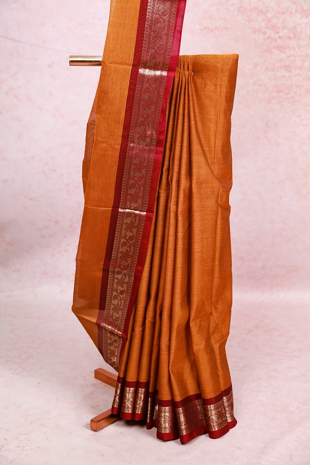 Mustard yellow Cotton Plain Saree With Zari Border. Includes Unstitched Blouse