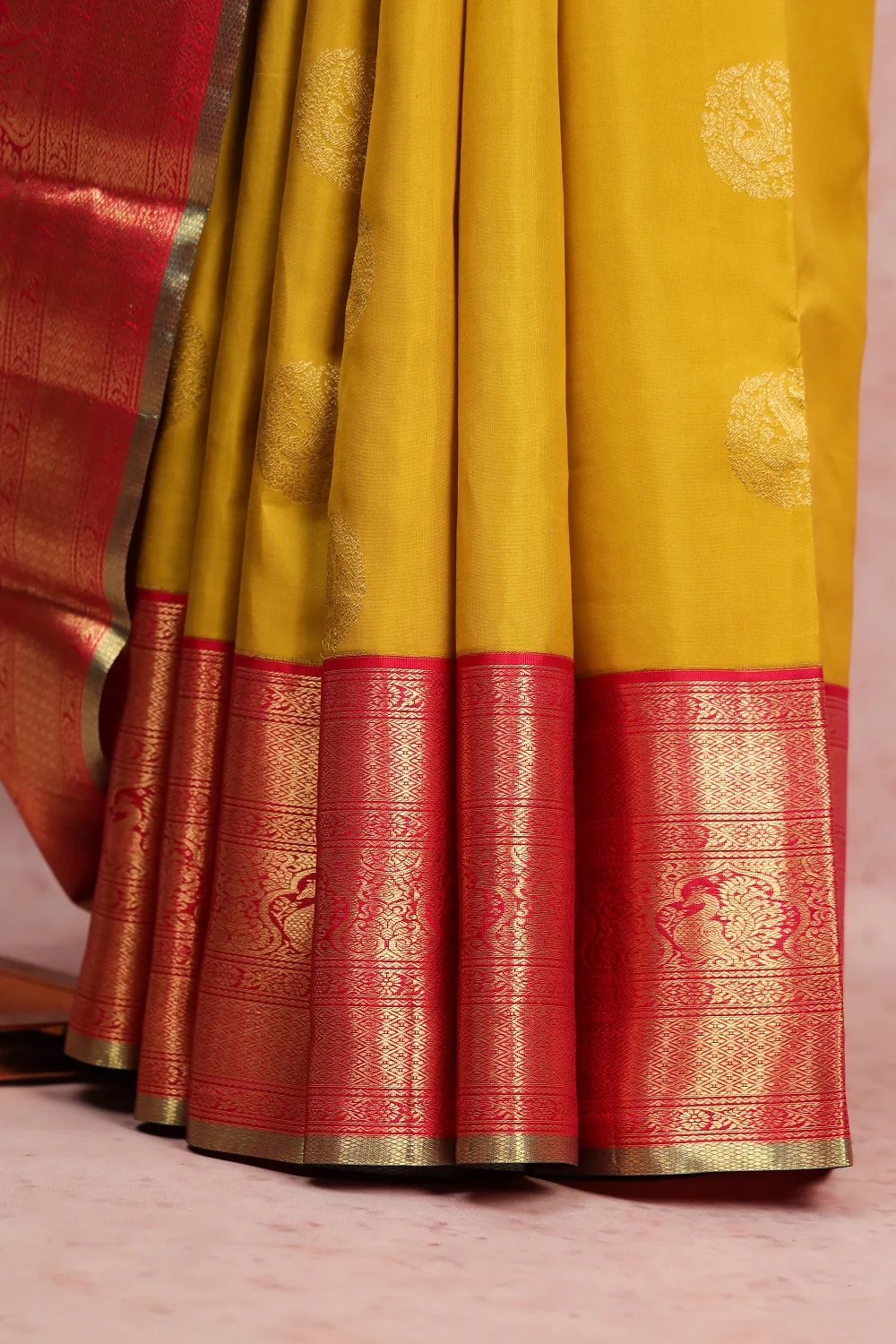 Mustard Yellow Kancheepuram Soft Silk Saree