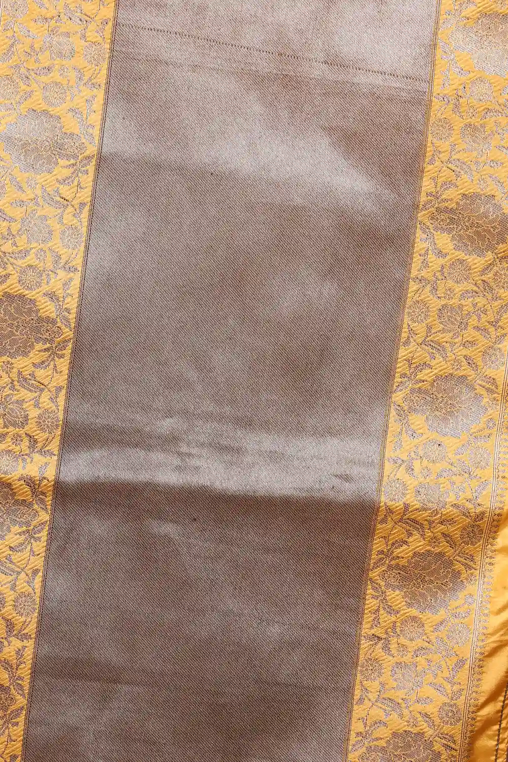 Mustard Yellow Semi Jute Banarasi Design Saree With Designer Border. Includes Unstitched Blouse