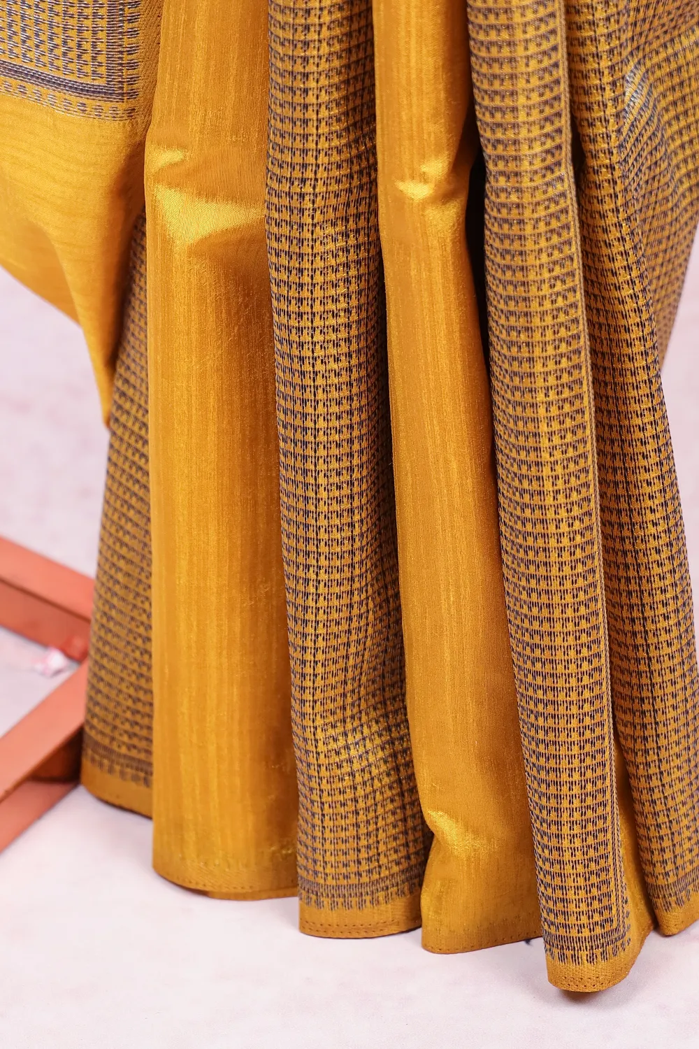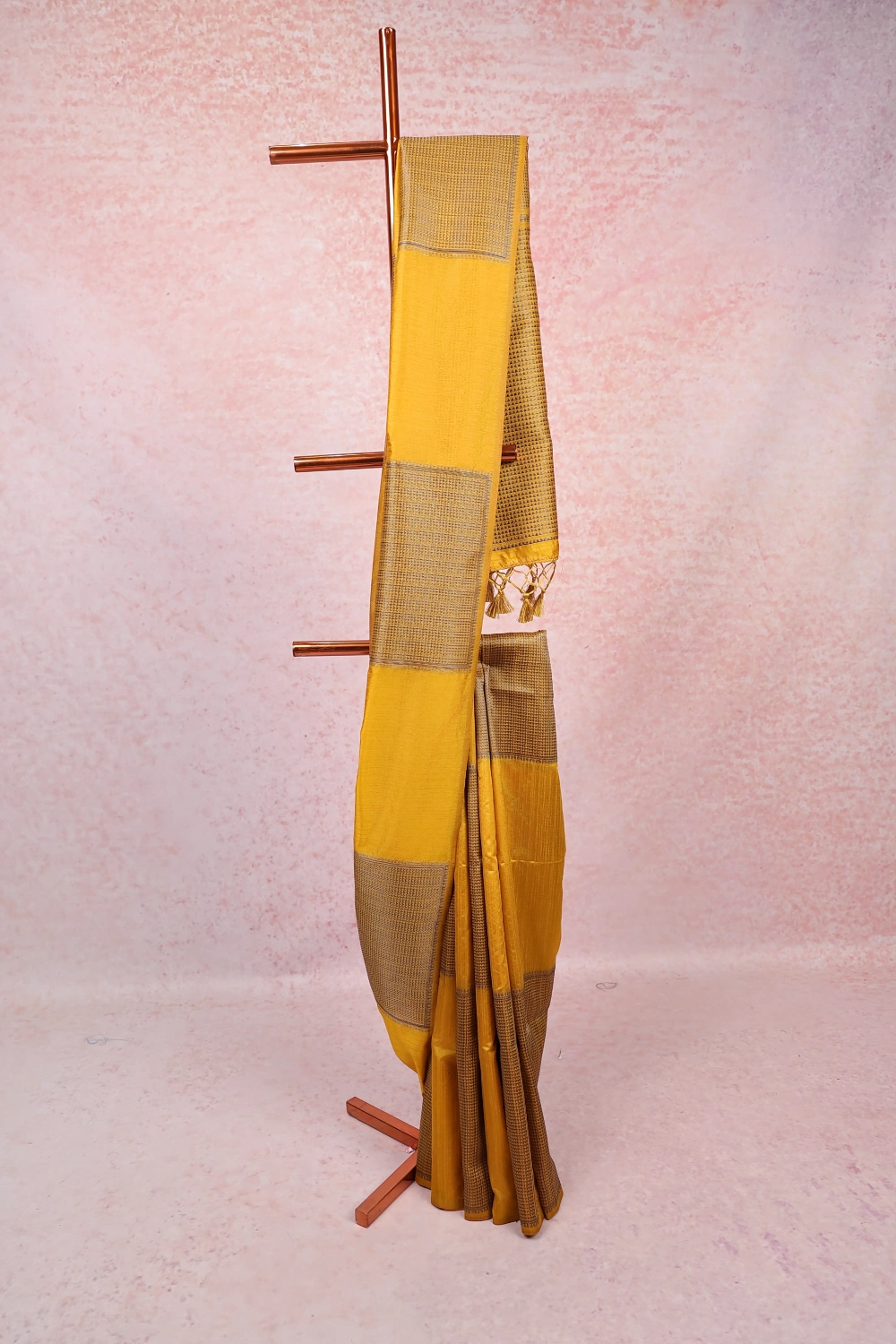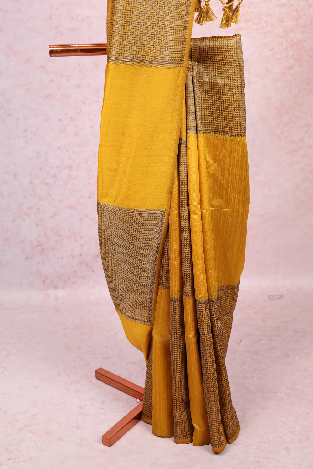 Mustard Yellow Semi Jute Box Design Saree with Designer Border. Includes Unstitched Blouse