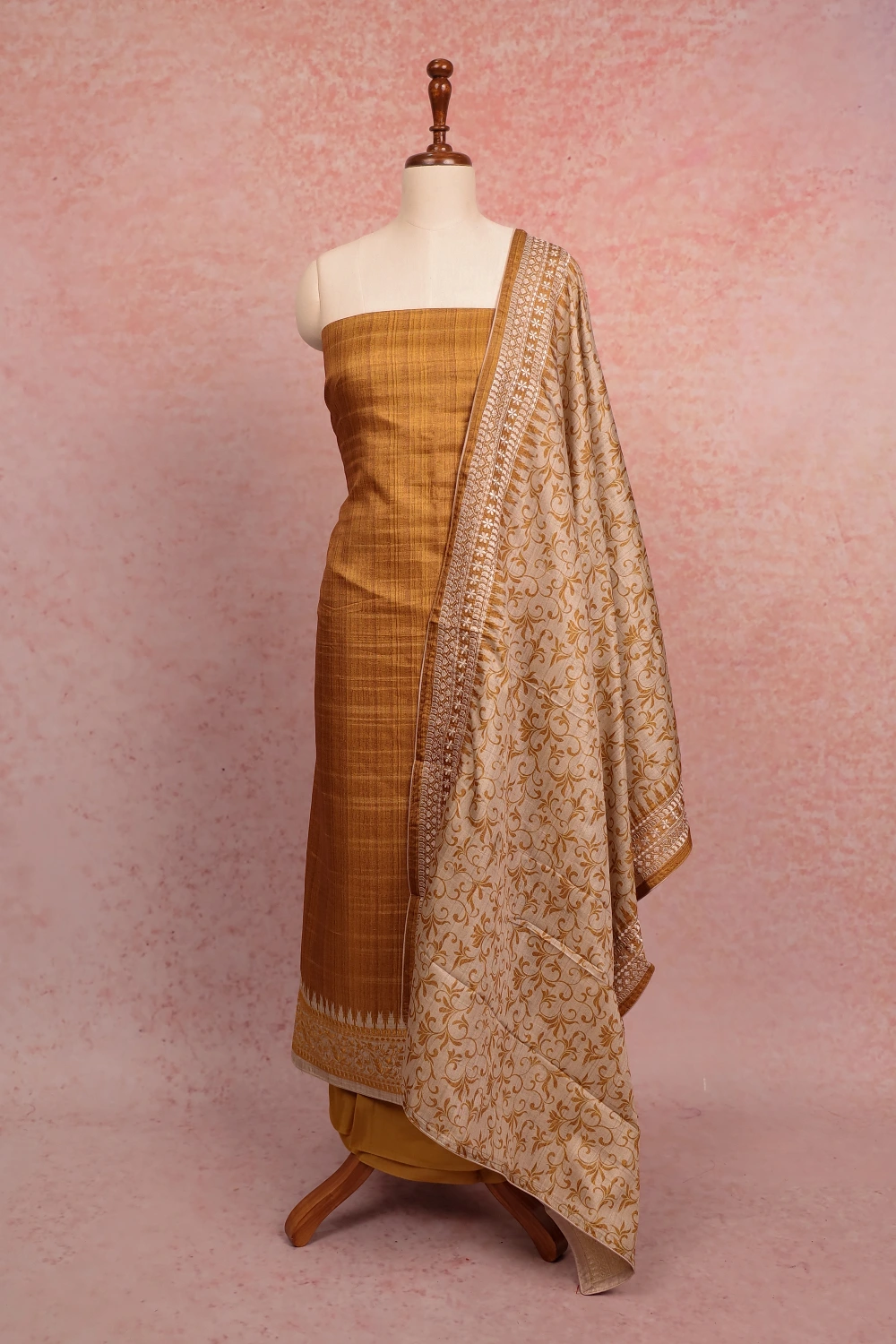 Mustard Yellow Semi Silk Plain Body Unstitched Churidar Material. Includes Dupatta.