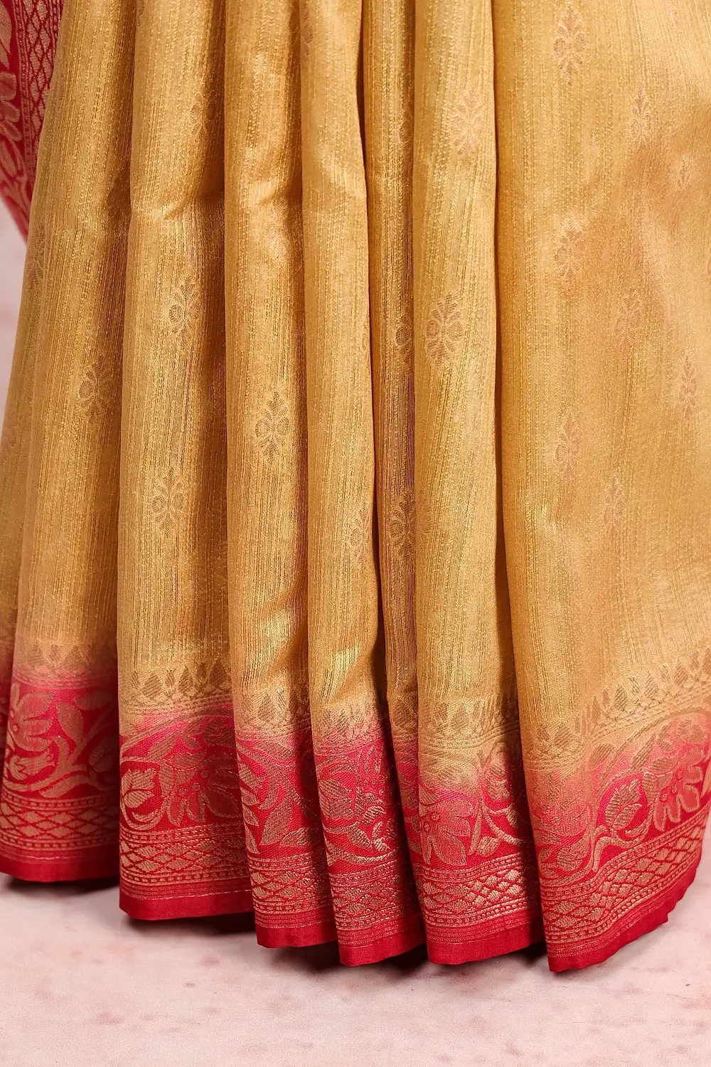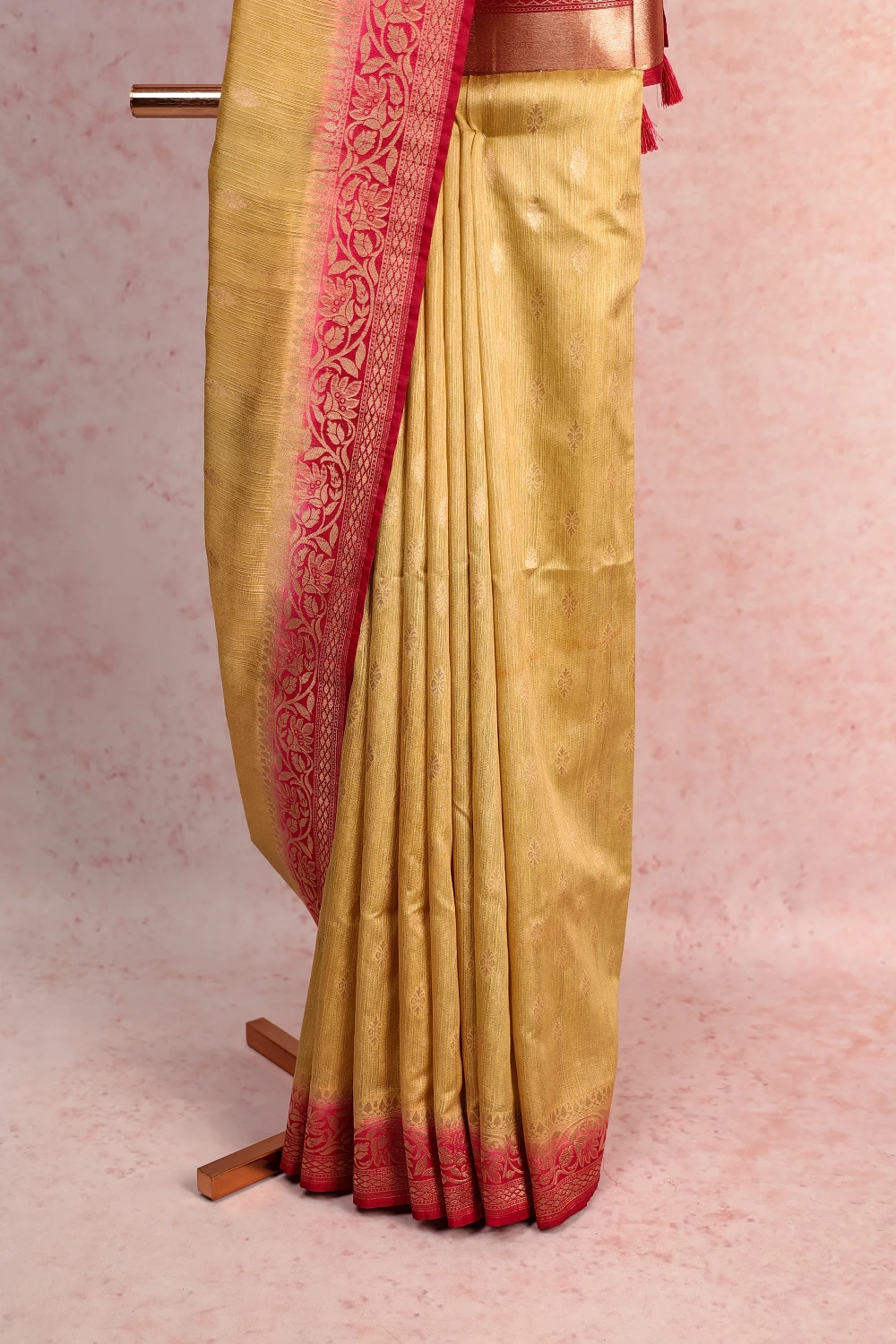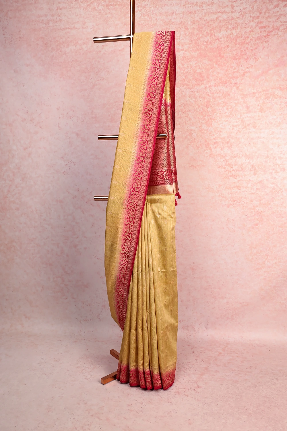 Mustard Yellow Semi Silk Butta Saree with Designer Border. Includes Un stitched Blouse