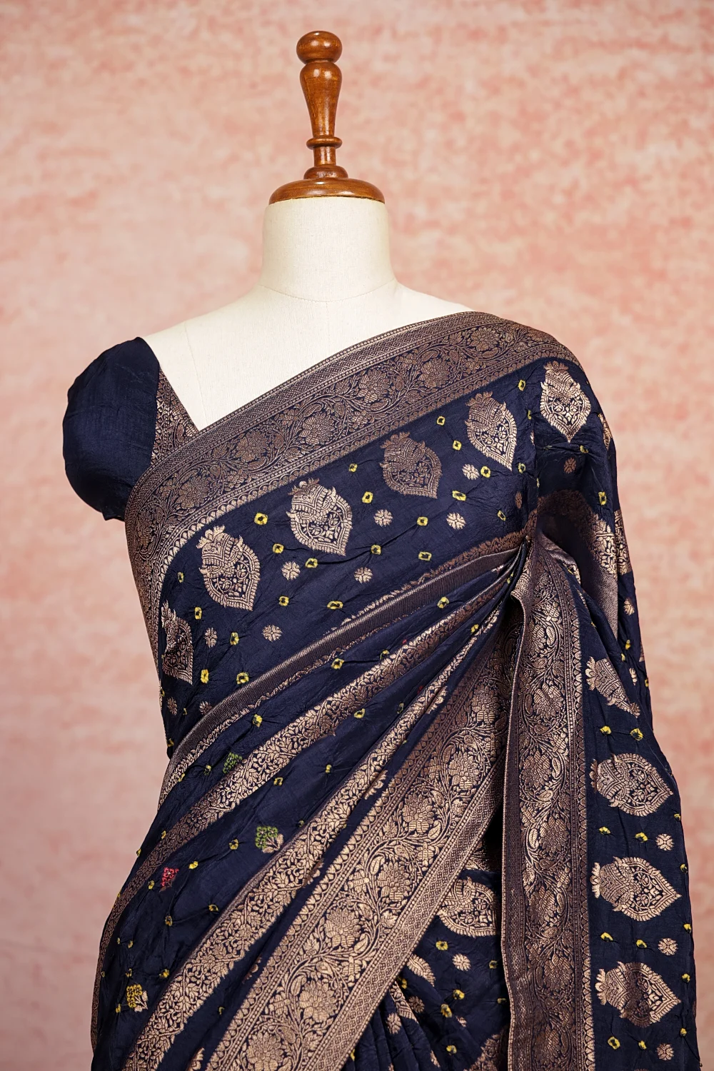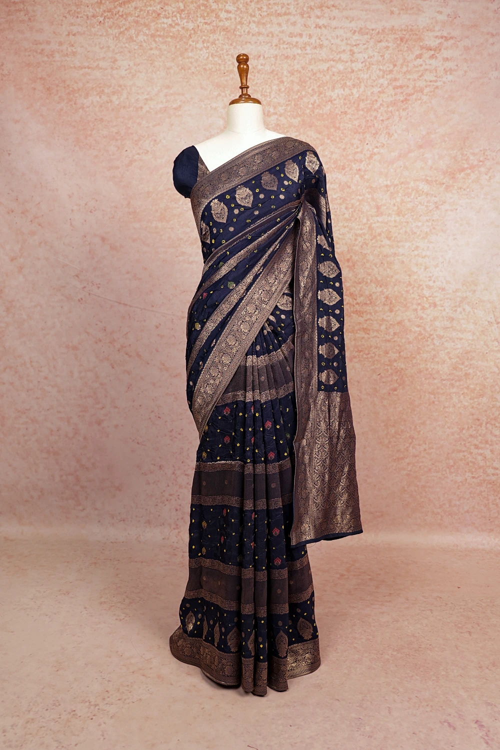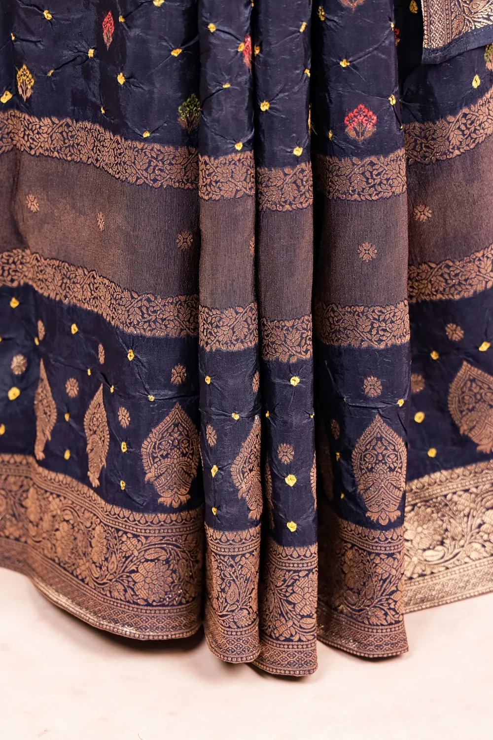 Navy Blue Bandhani Saree