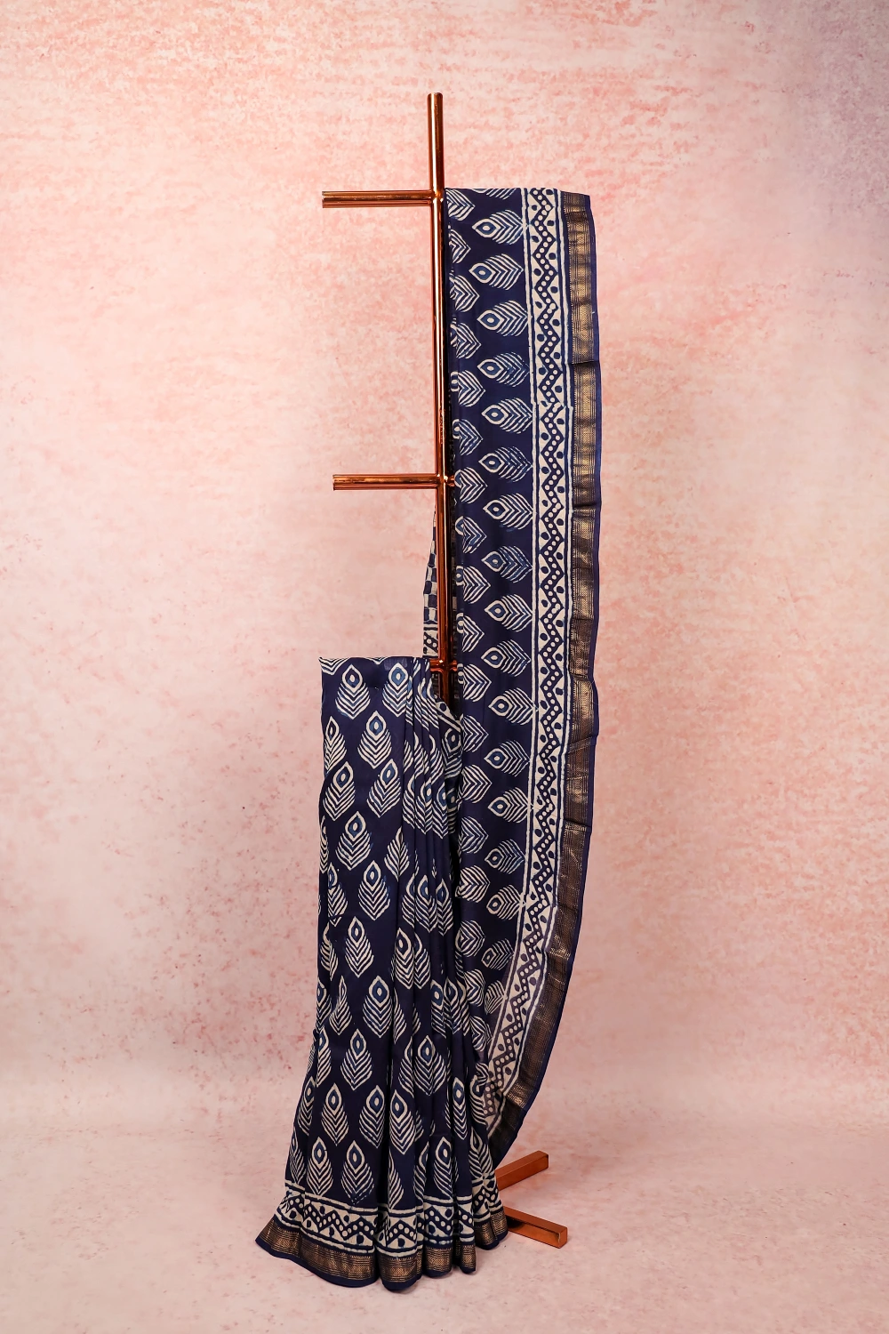 Navy Blue Chanderi Silk Saree