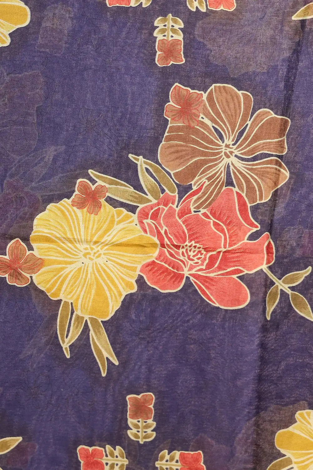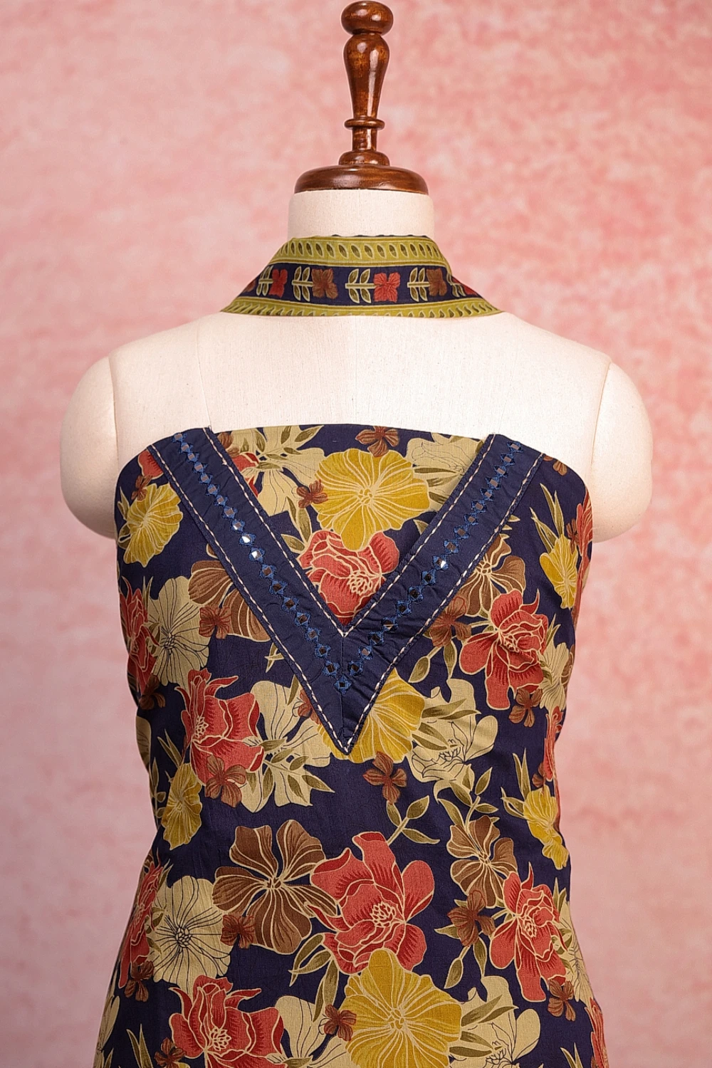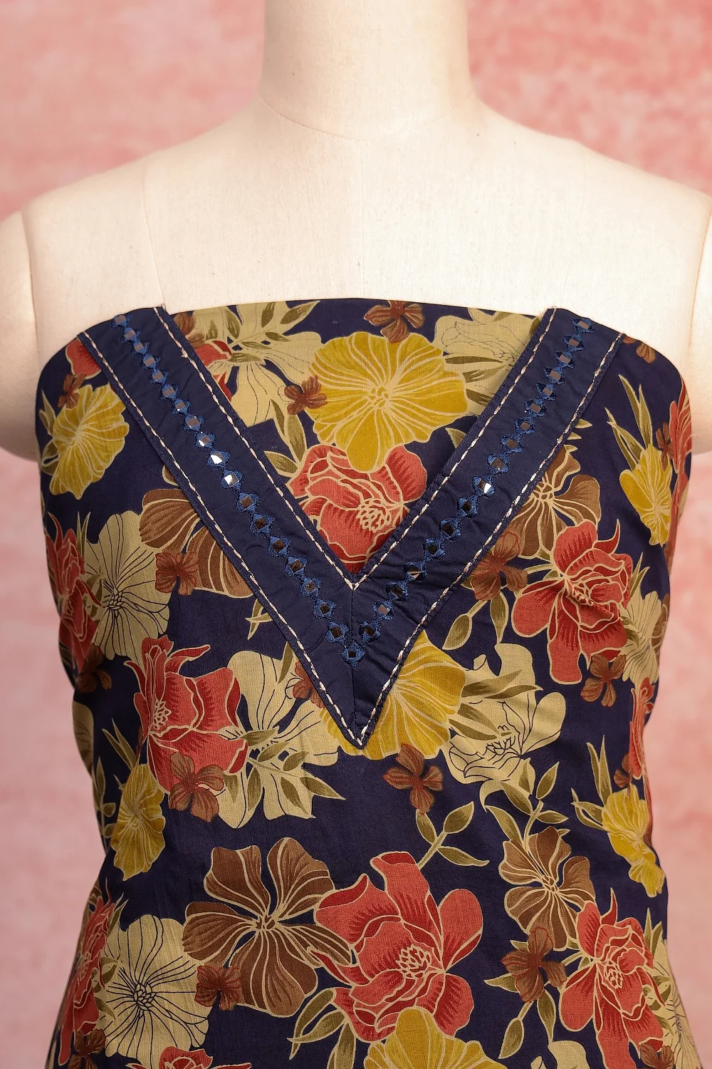 Navy Blue Cotton Floral Printed Unstitched Churidhar Material