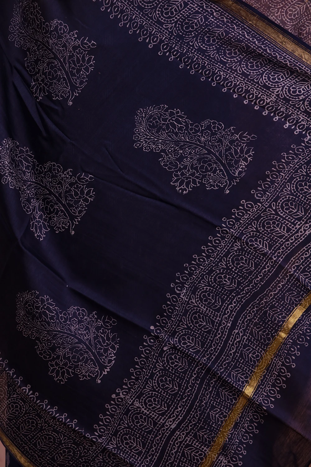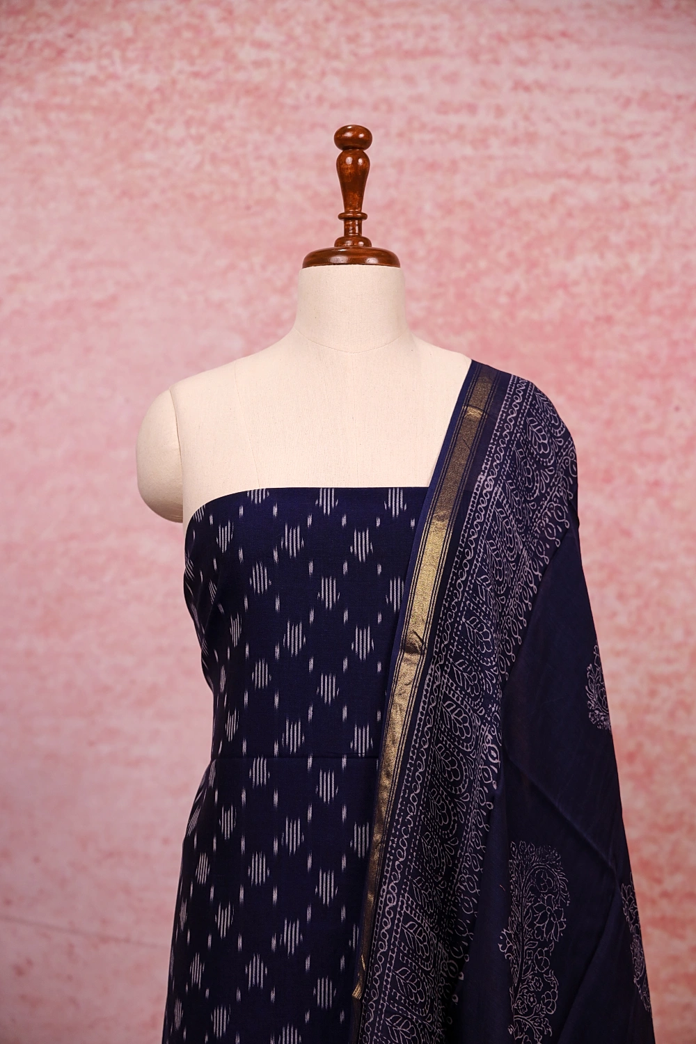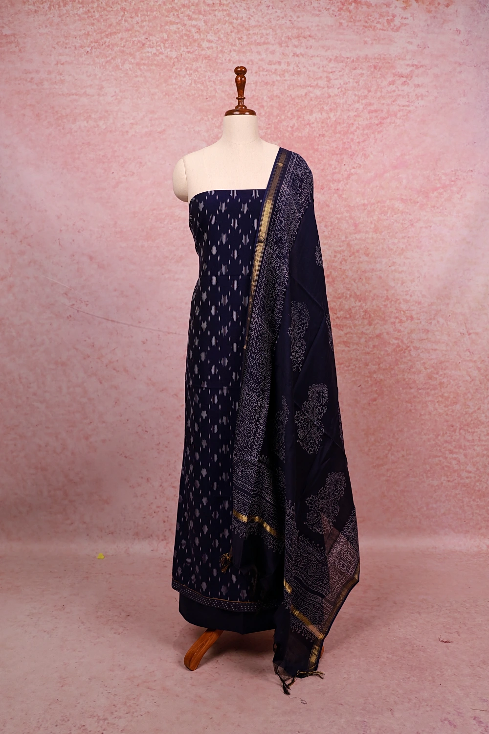 Navy Blue Cotton Printed Unstitched Churidar Material. Includes Dupatta.