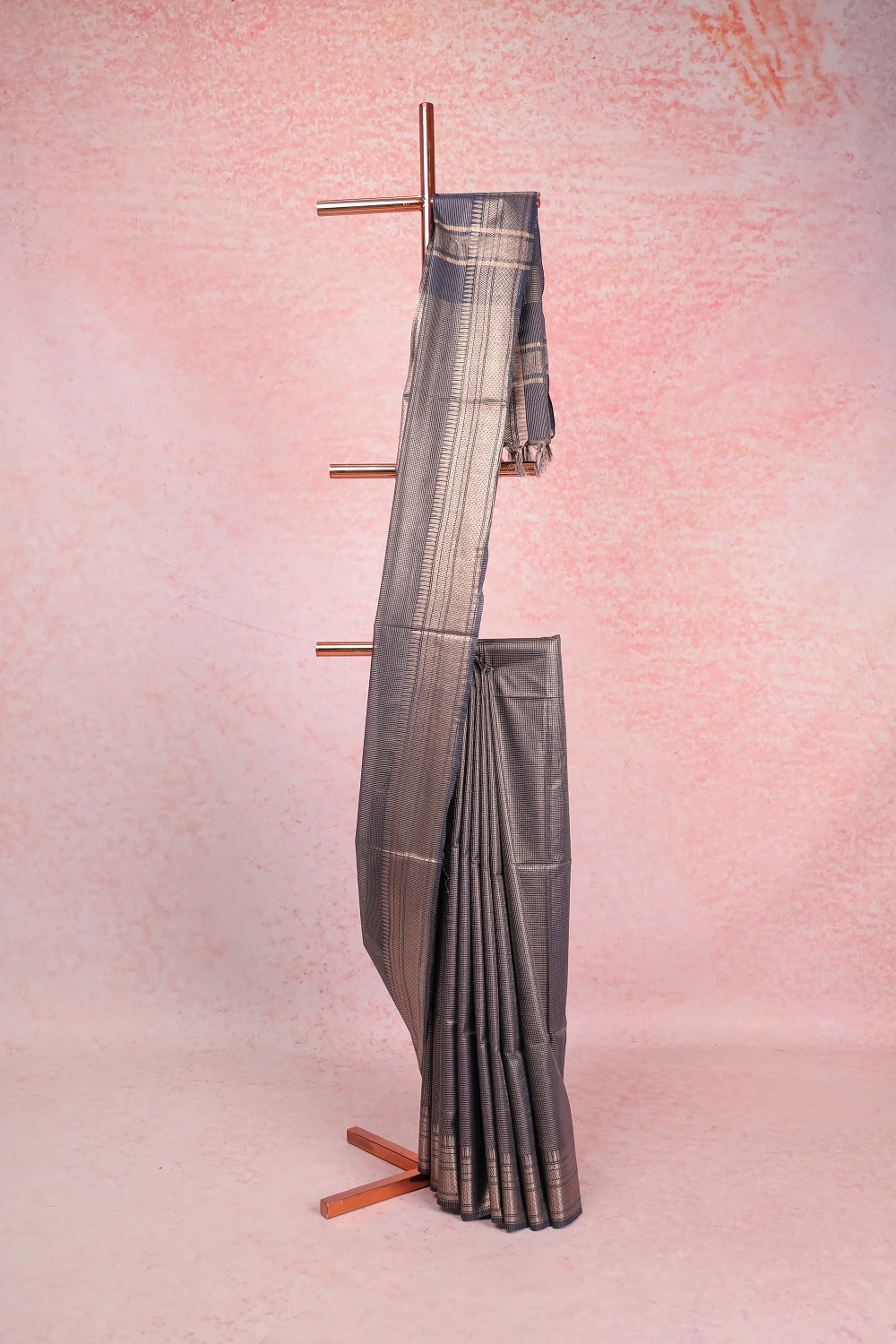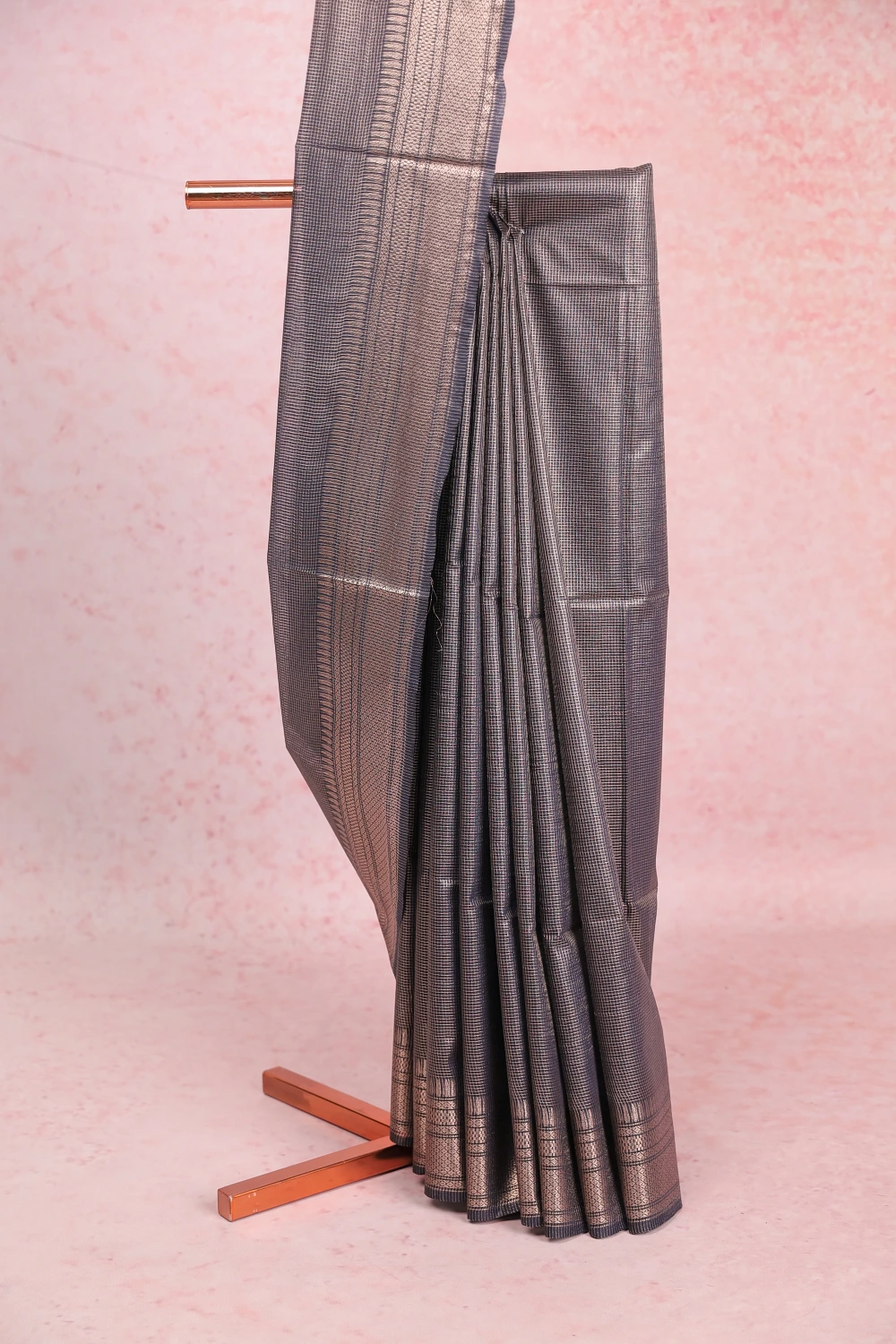Navy Blue Cotton Silk Small Check Design Saree with Zari Border. Includes Unstitched Blouse