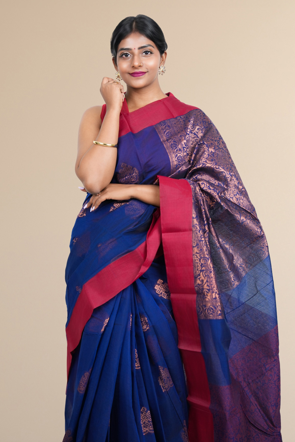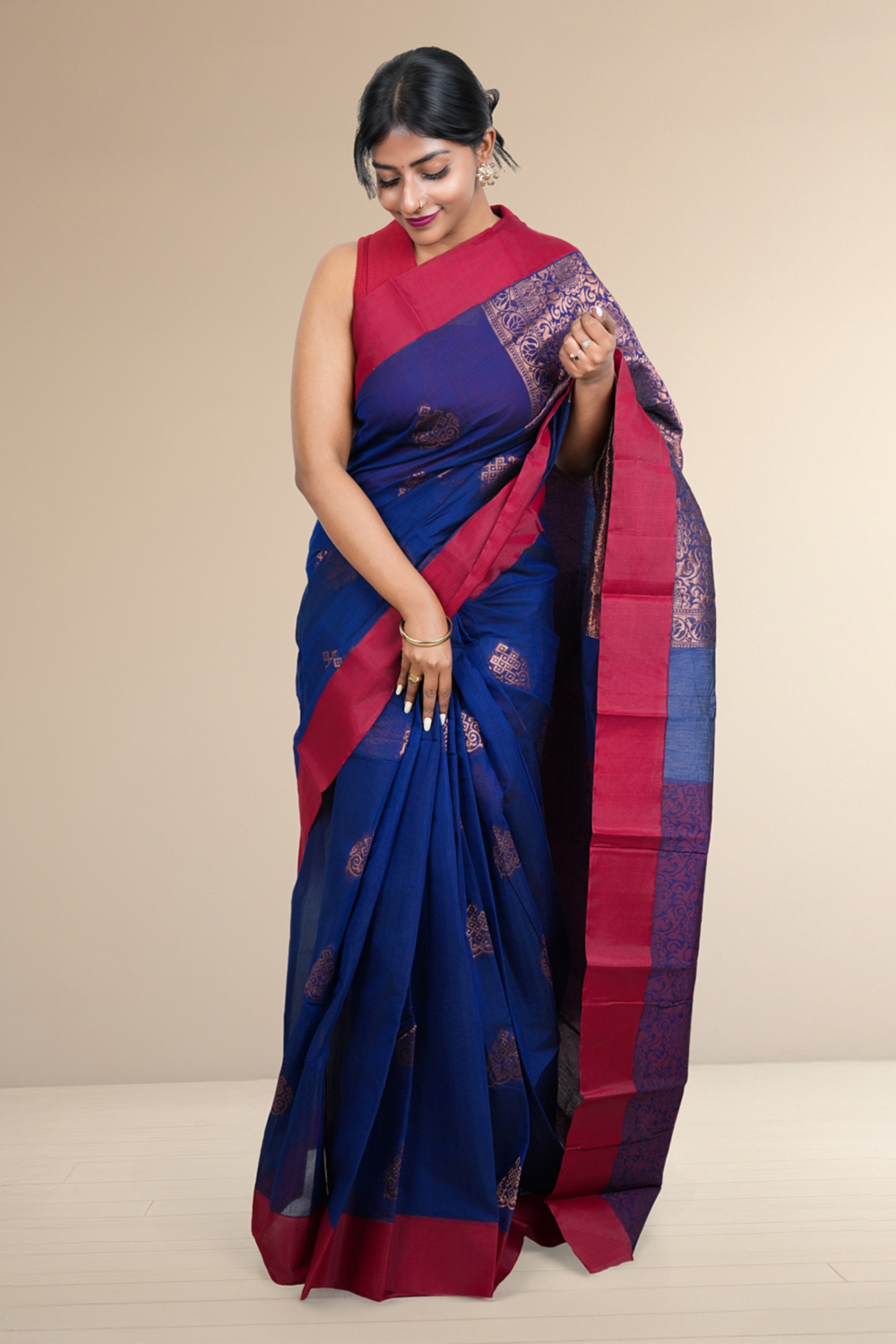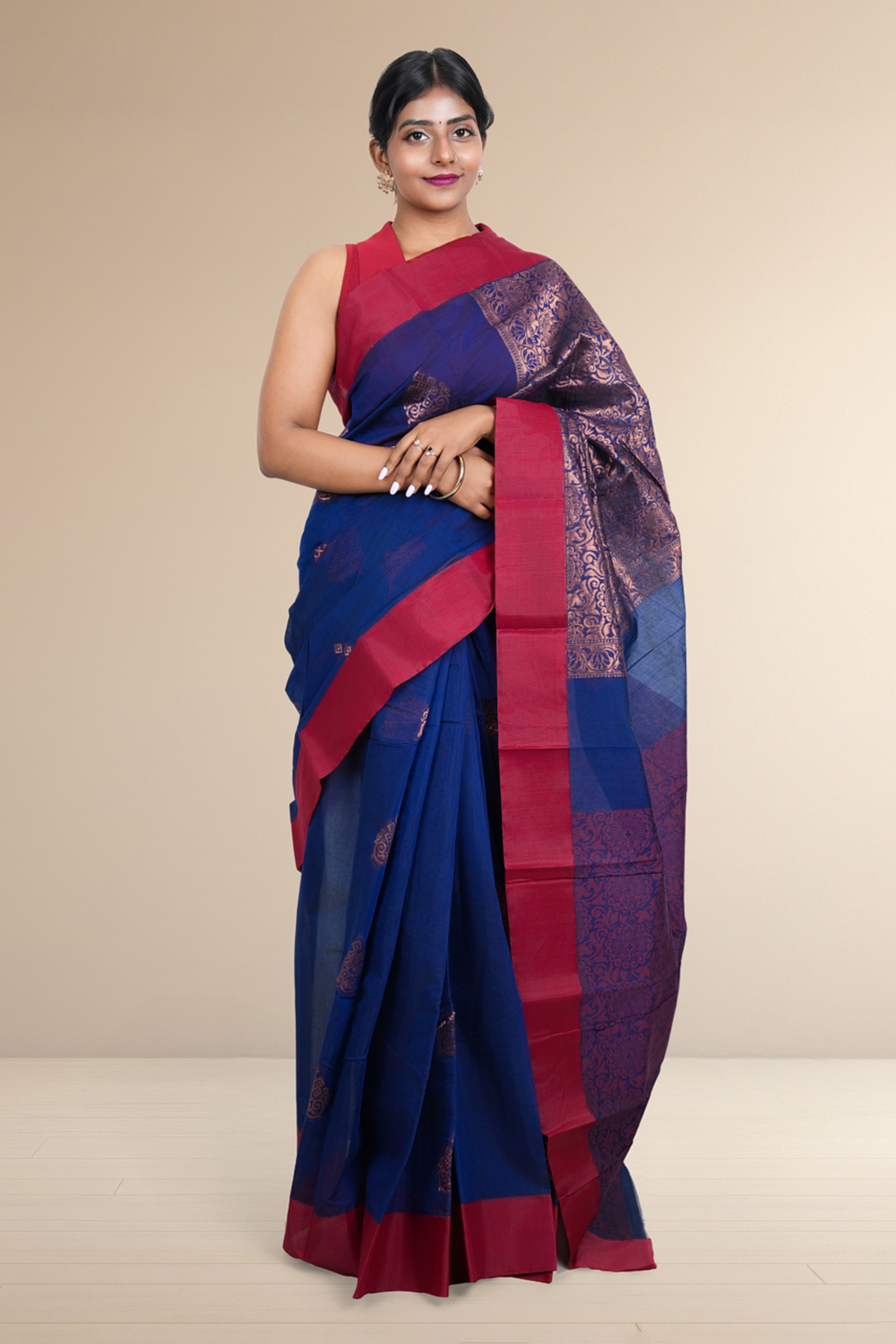 Navy Blue Cotton Silk Saree