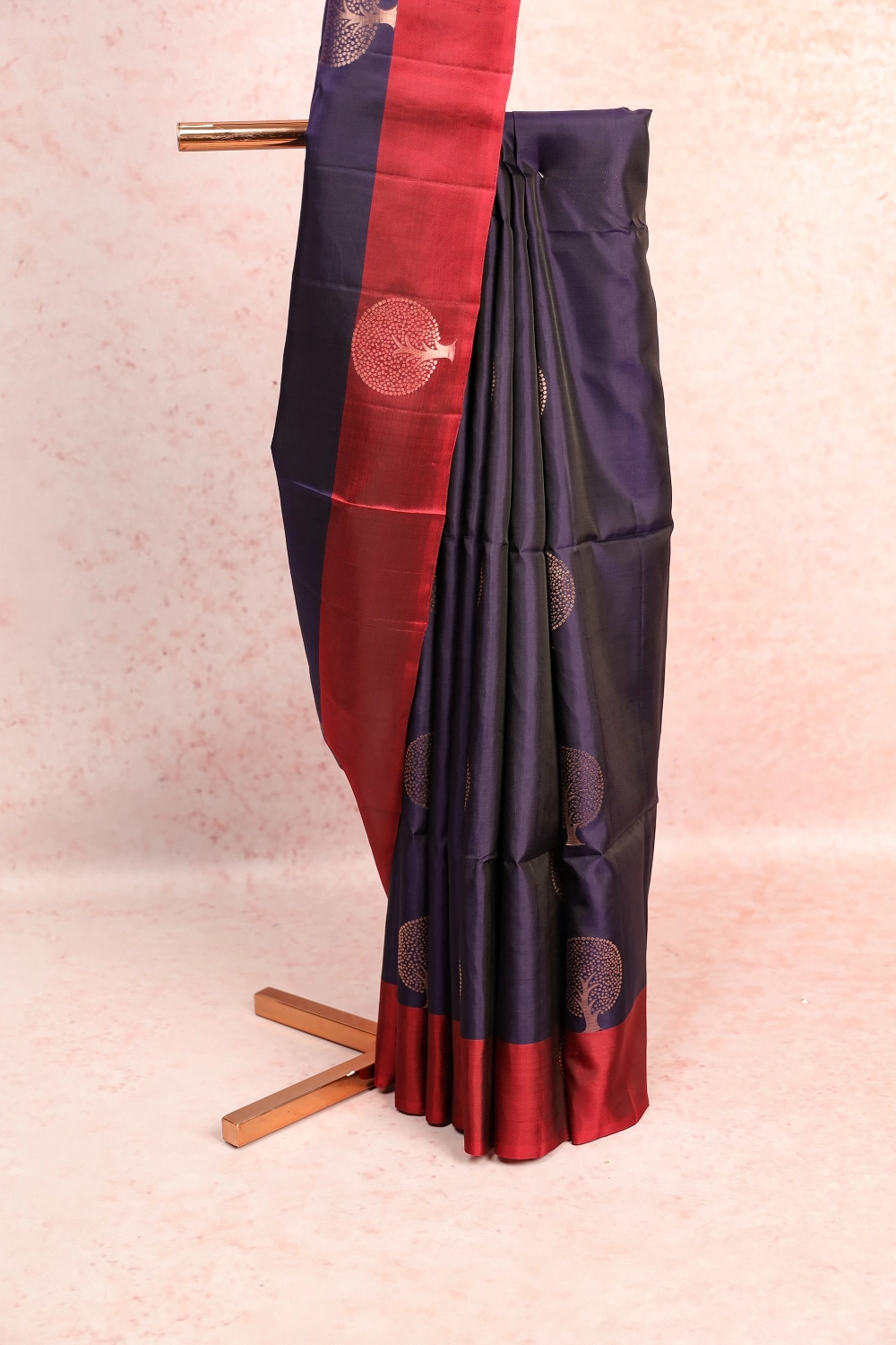 Navy Blue Kanchi Soft Silk Designer Butta Saree with Plain Border. Includes Un stitched Blouse