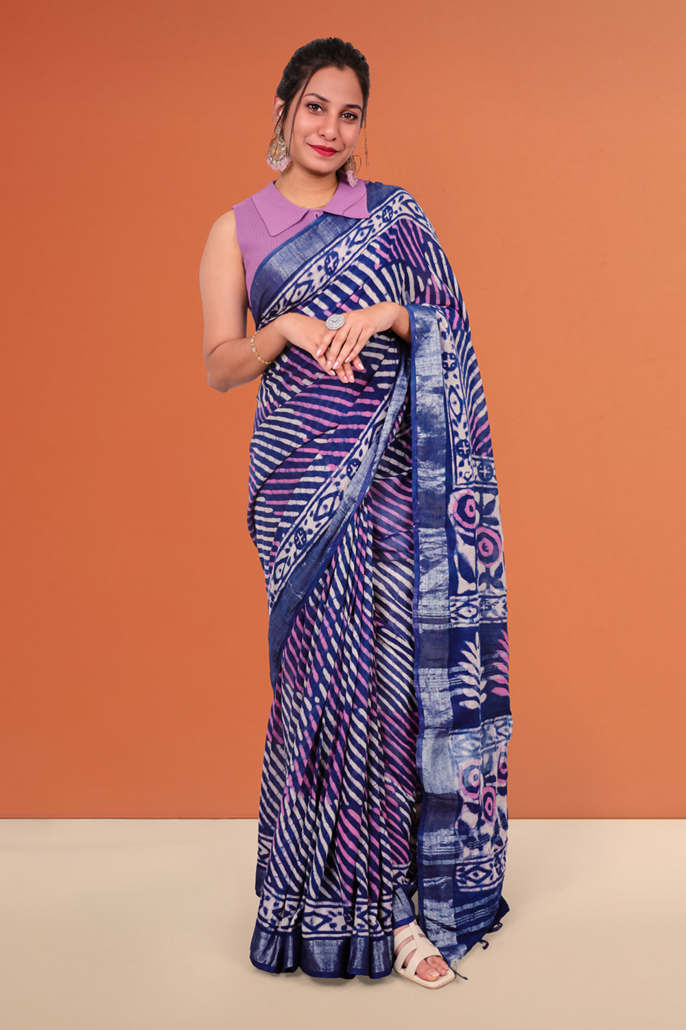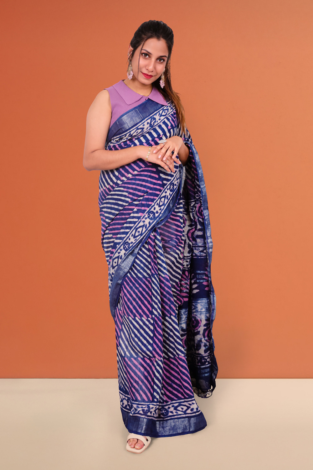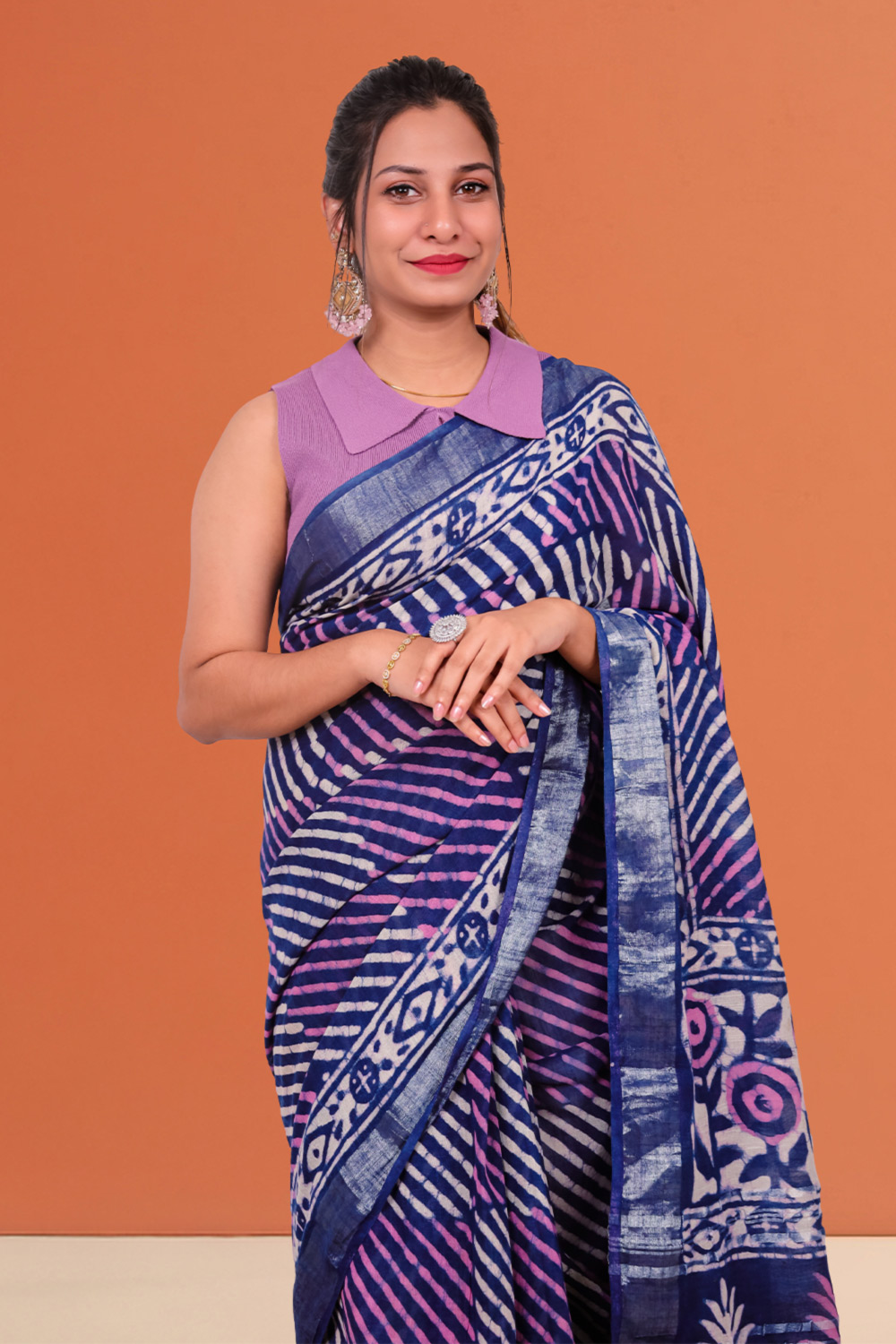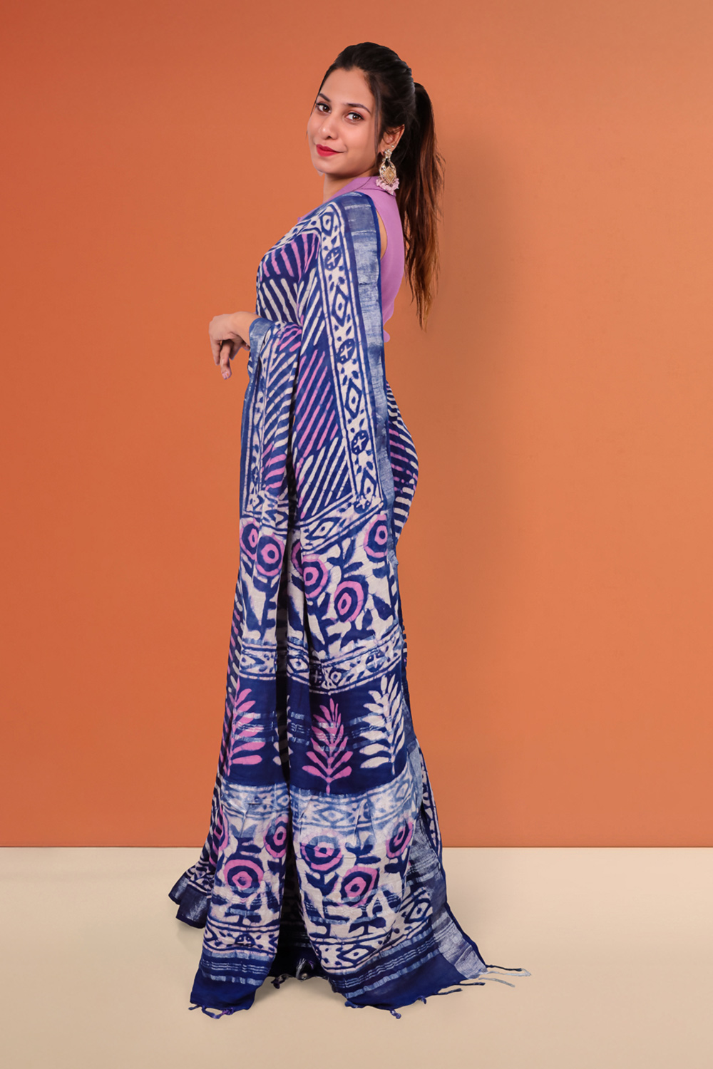 Navy Blue Linen Cotton Saree