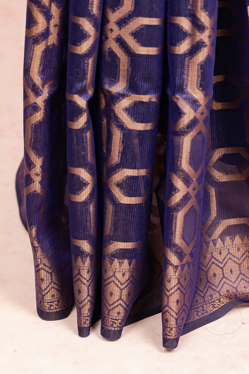 Navy Blue Net Kota Brocade Saree With Brocade Border. Includes Unstitched Blouse