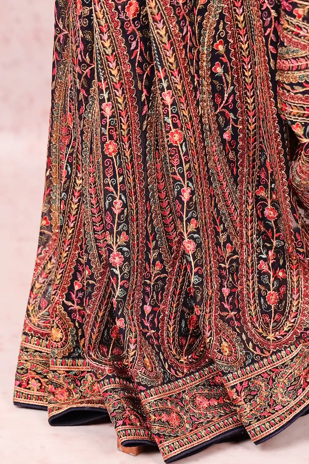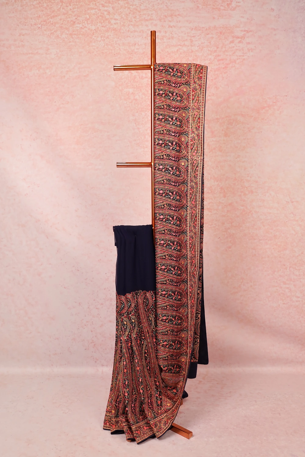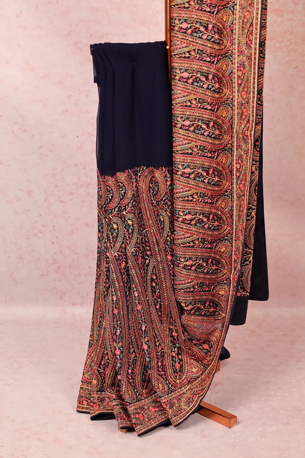 Navy Blue Pure Shiffon Saree with Unstiched Blouse Piece