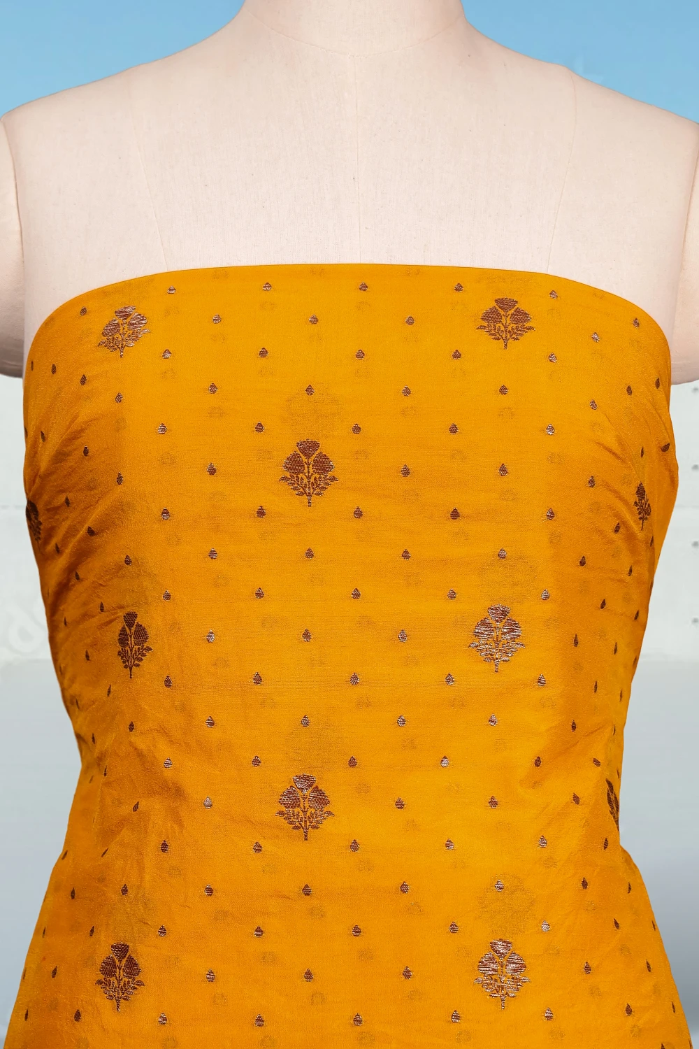Mustard Yellow Silk Banarasi Design Unstitched Churidhar Material