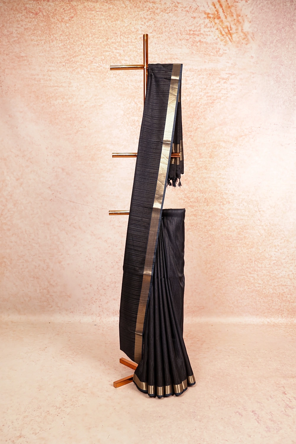 Navy Blue Semi Tussar Butta Saree With Designer Border. Includes Unstitched Blouse