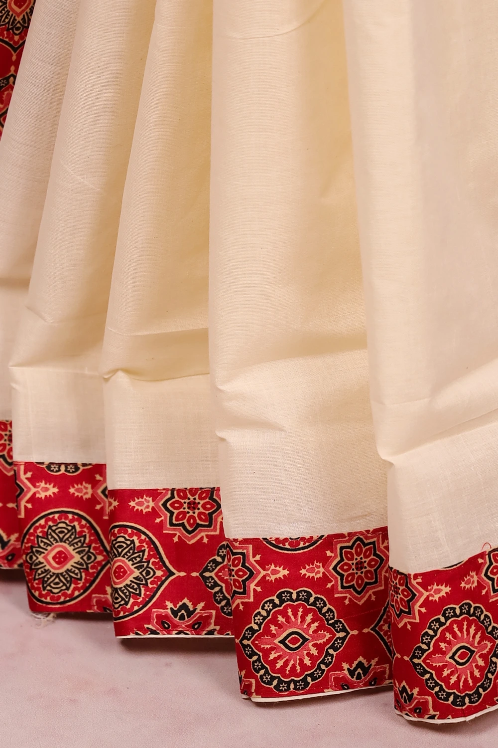 Off White Cotton Kerala Saree