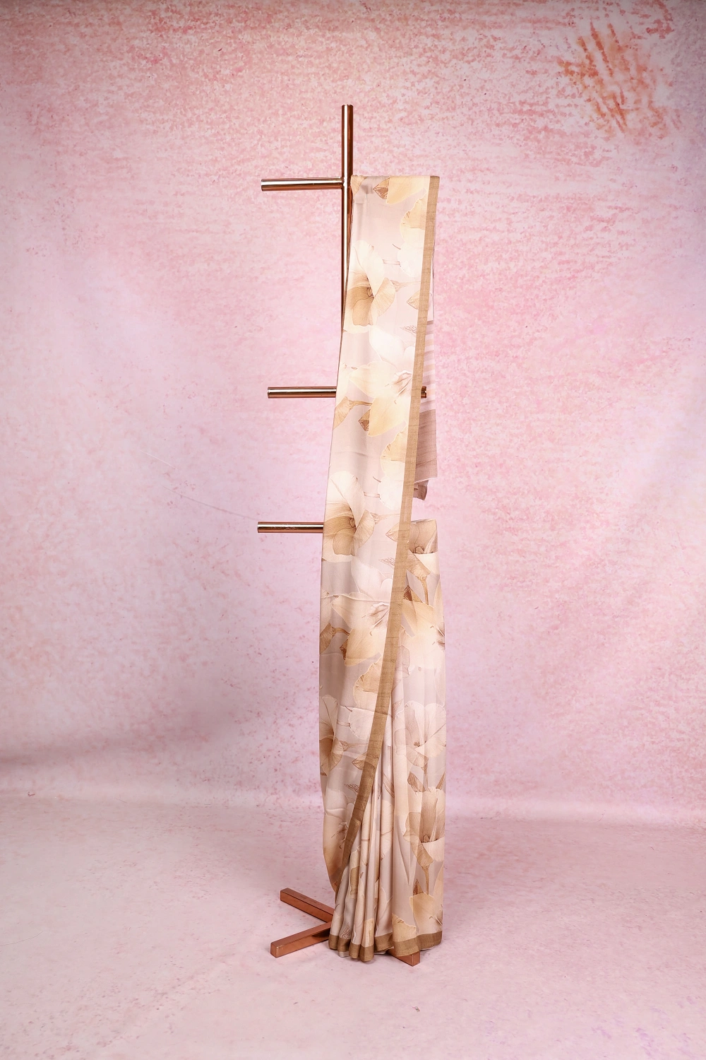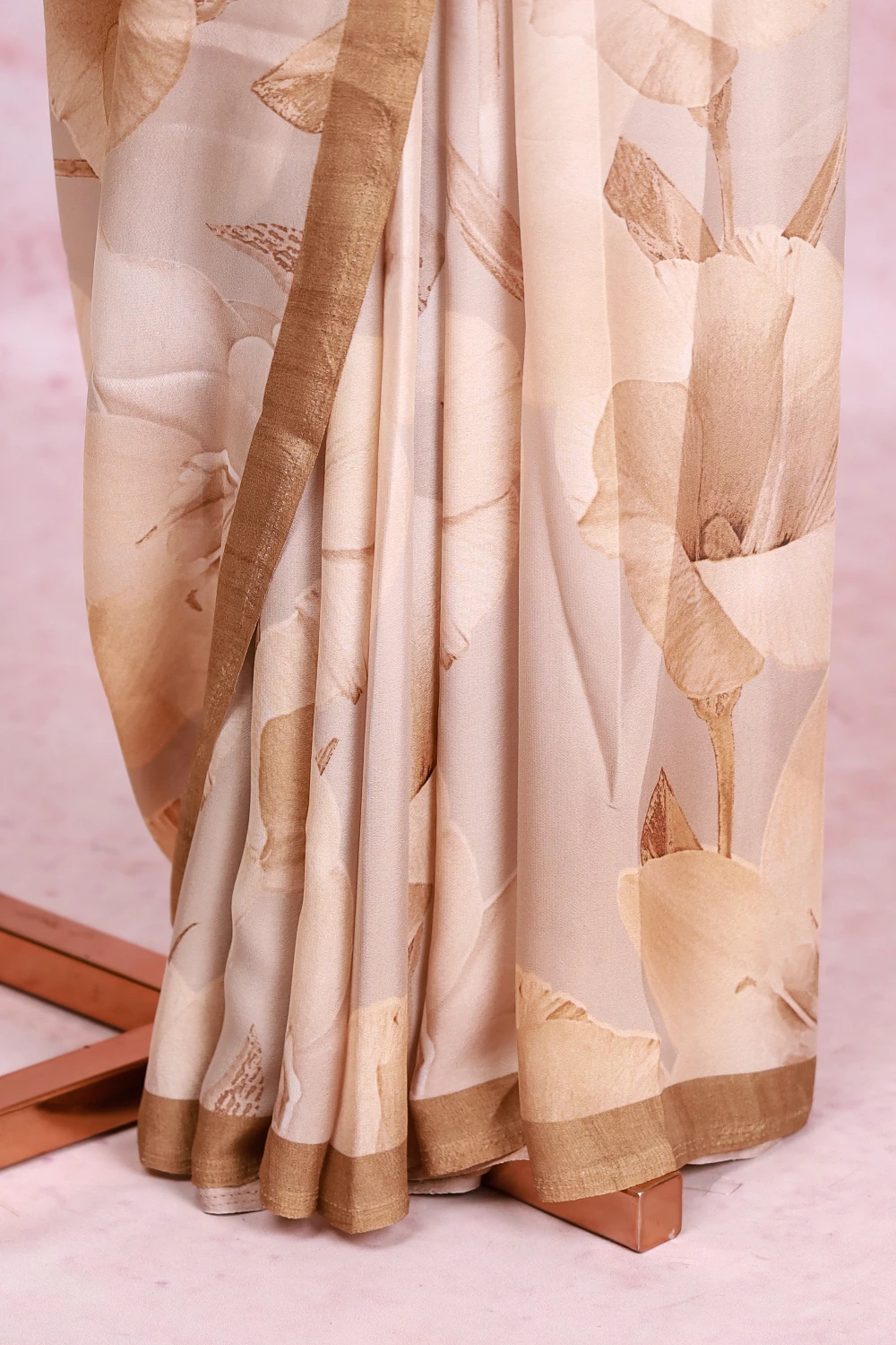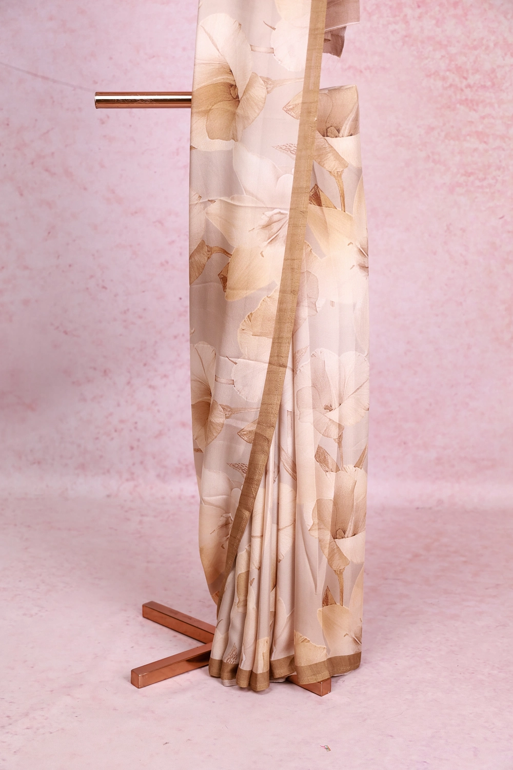 Off White Crepe Georgette Floral Design Saree With Small Border. Includes Un Stitched Blouse