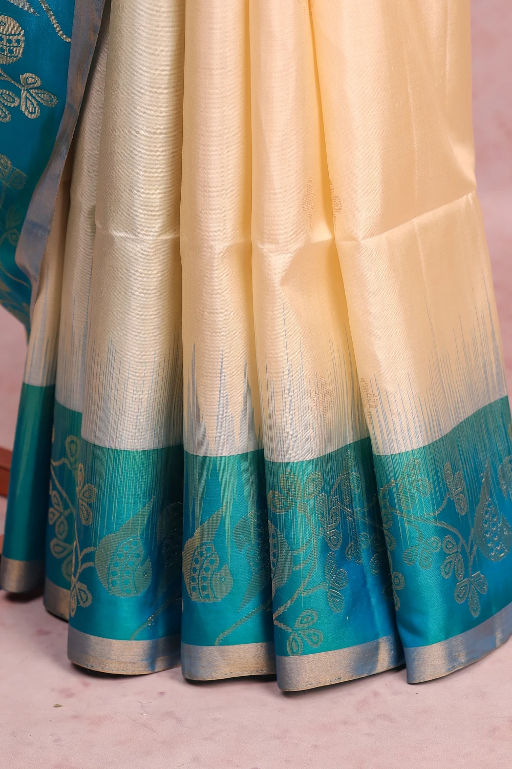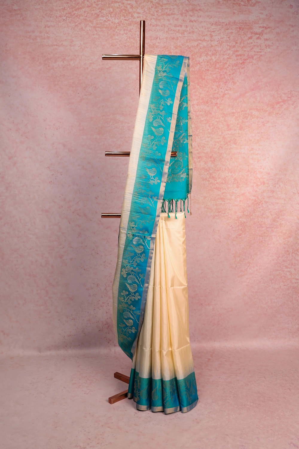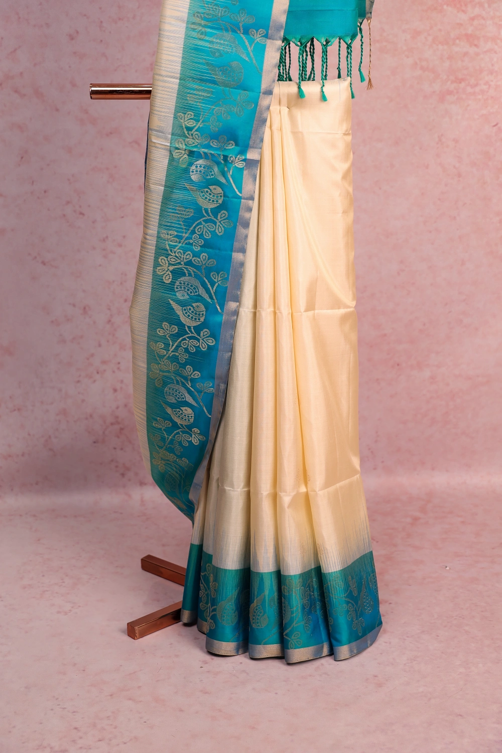 Off White Kanchi Soft Silk Butta Saree with Designer Border. Includes Unstitched Blouse