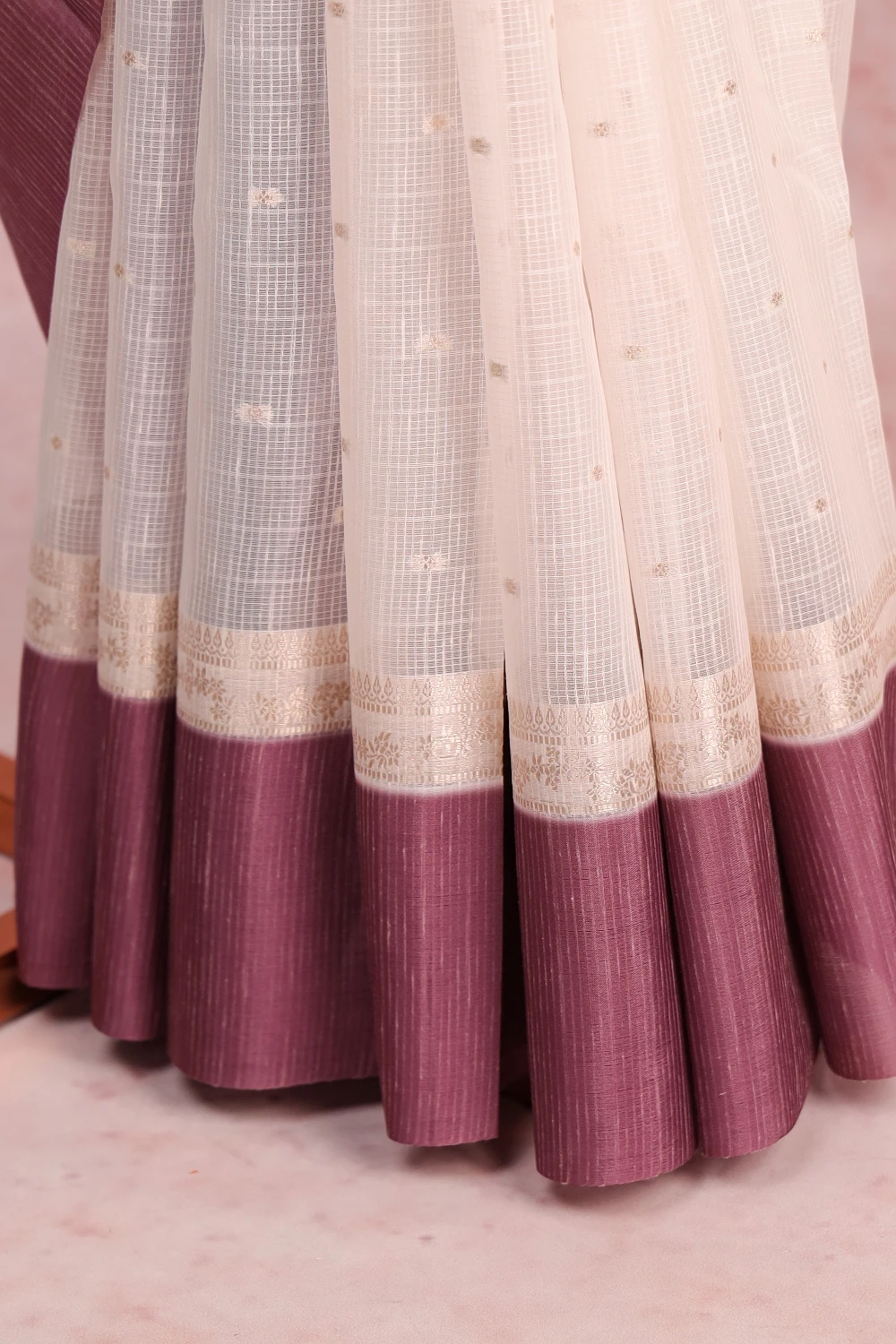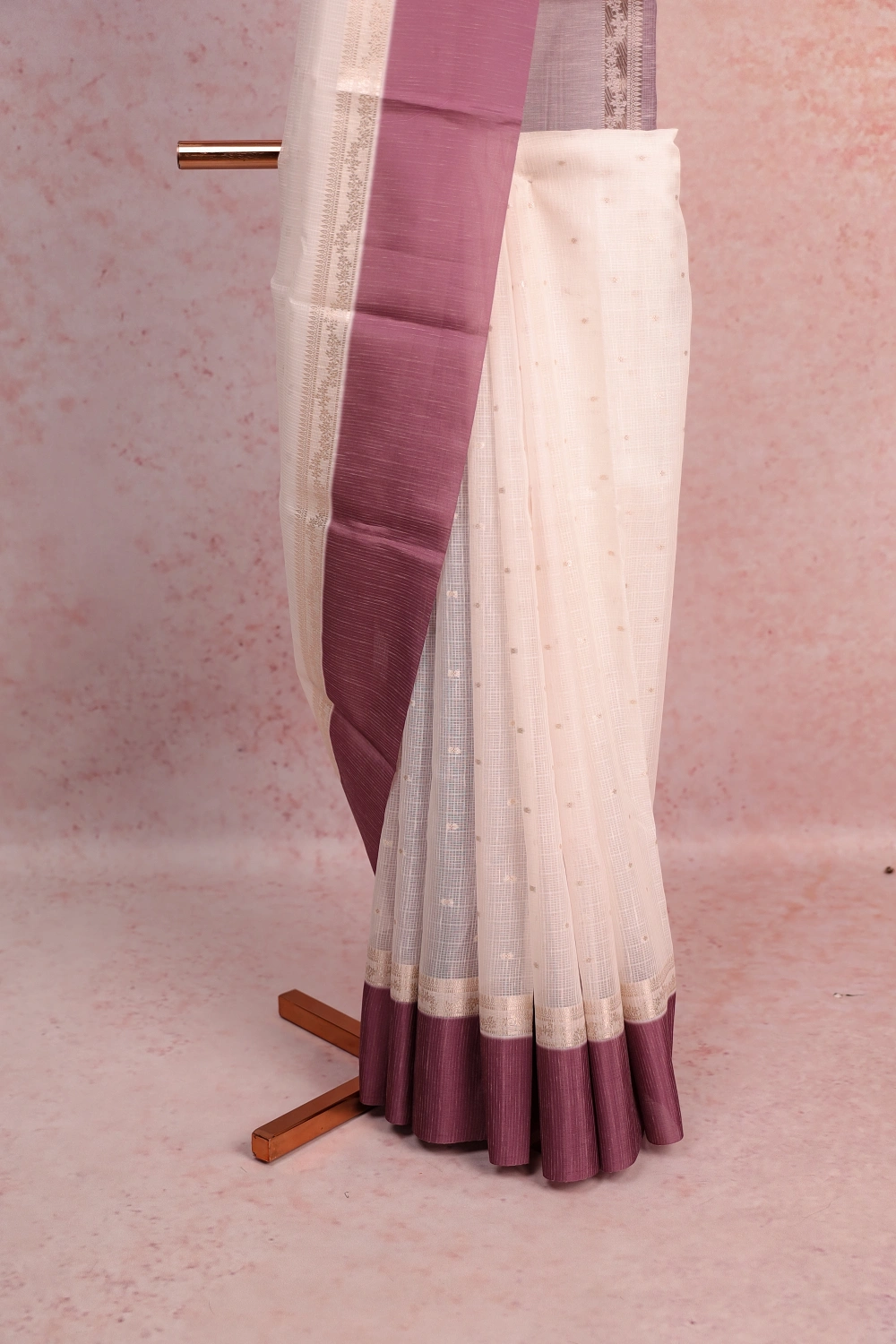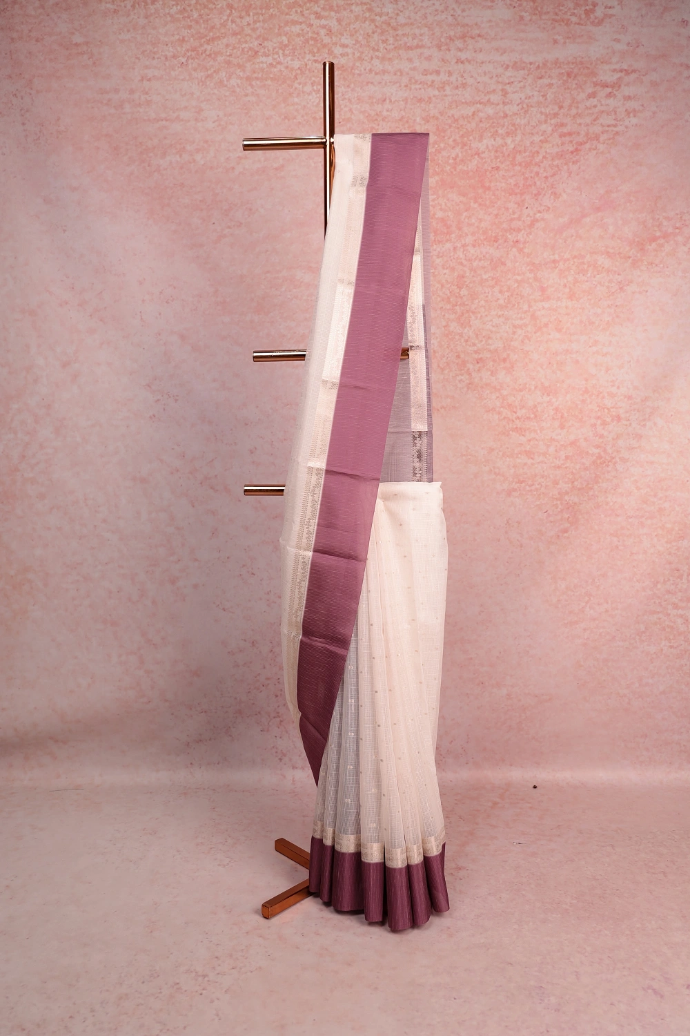 Off White Maheswari Silk Butta Saree With Plain Border. Includes Un Stitched Blouse