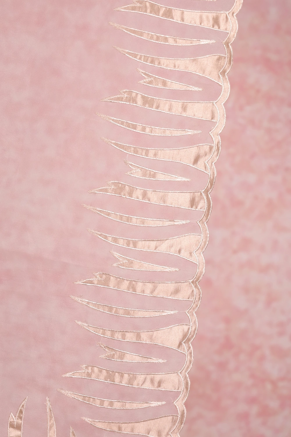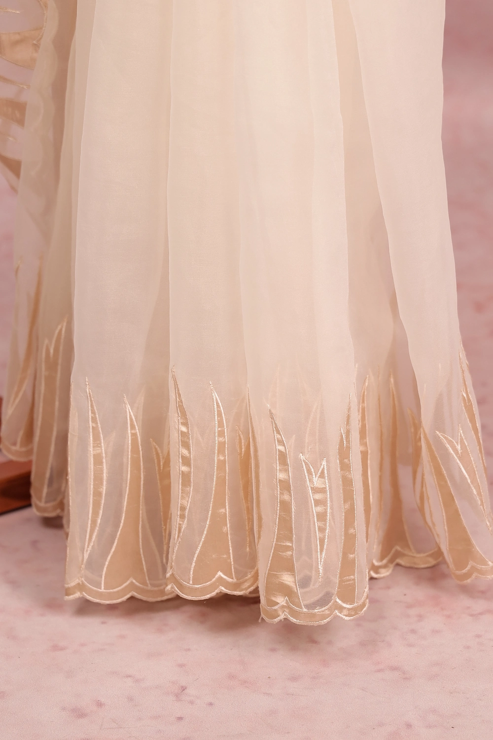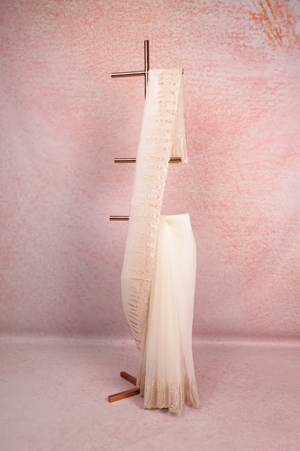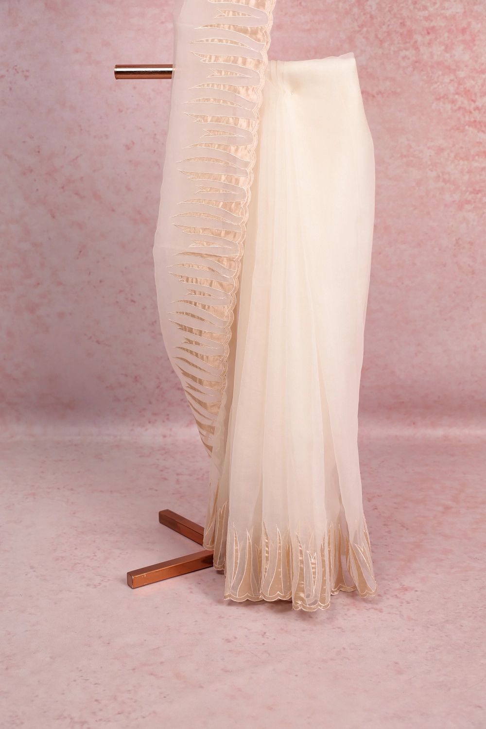 Off White Organza Plain Saree with Scallop Border. Includes Unstitched Blouse