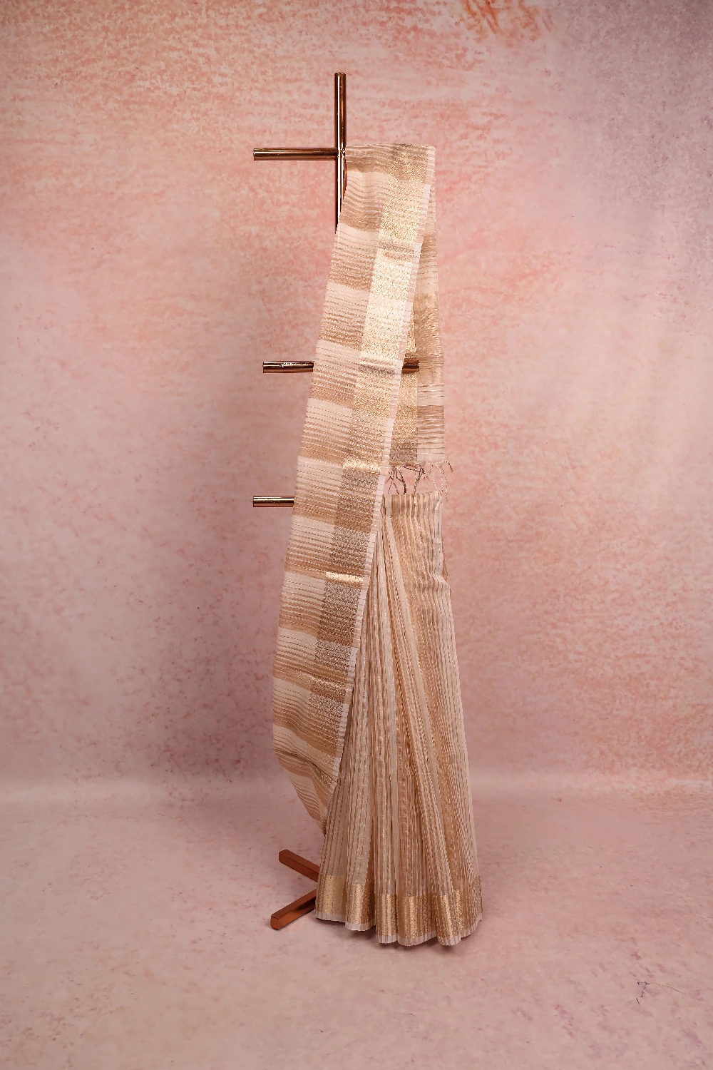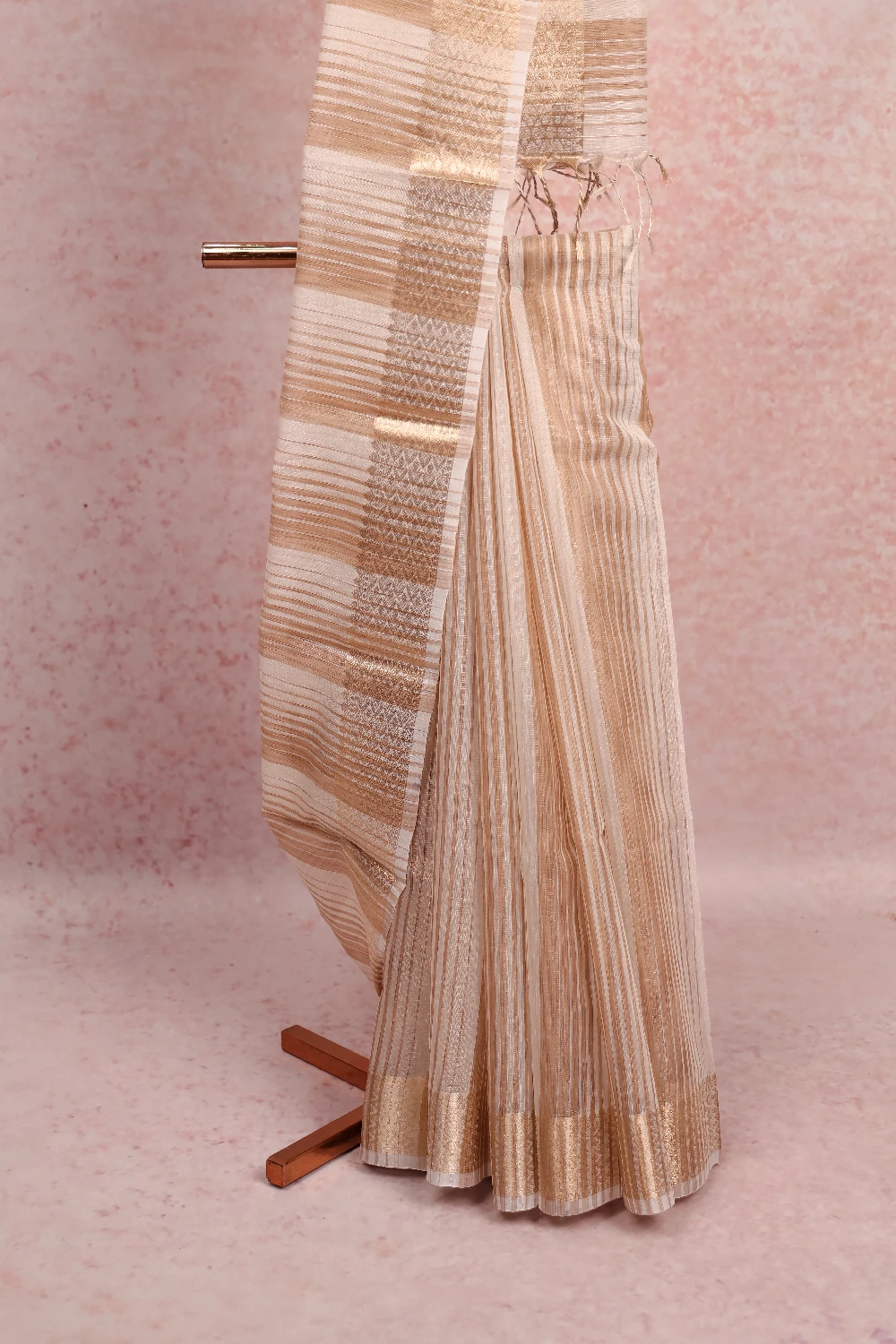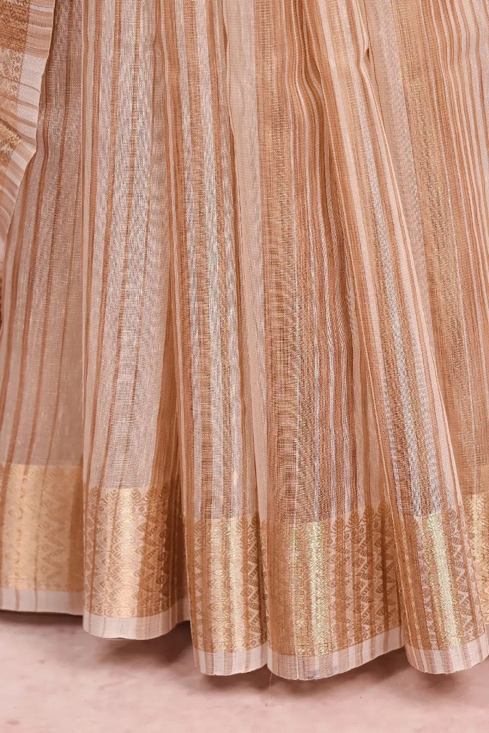 Off White Semi Tissue Lines Saree with Designer Border. Includes Un stitched Blouse