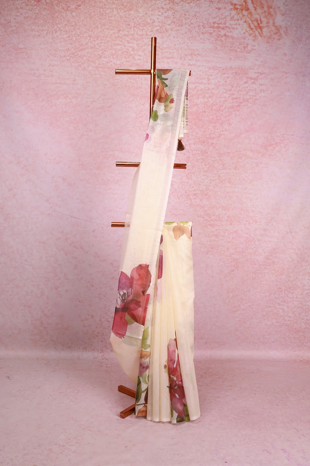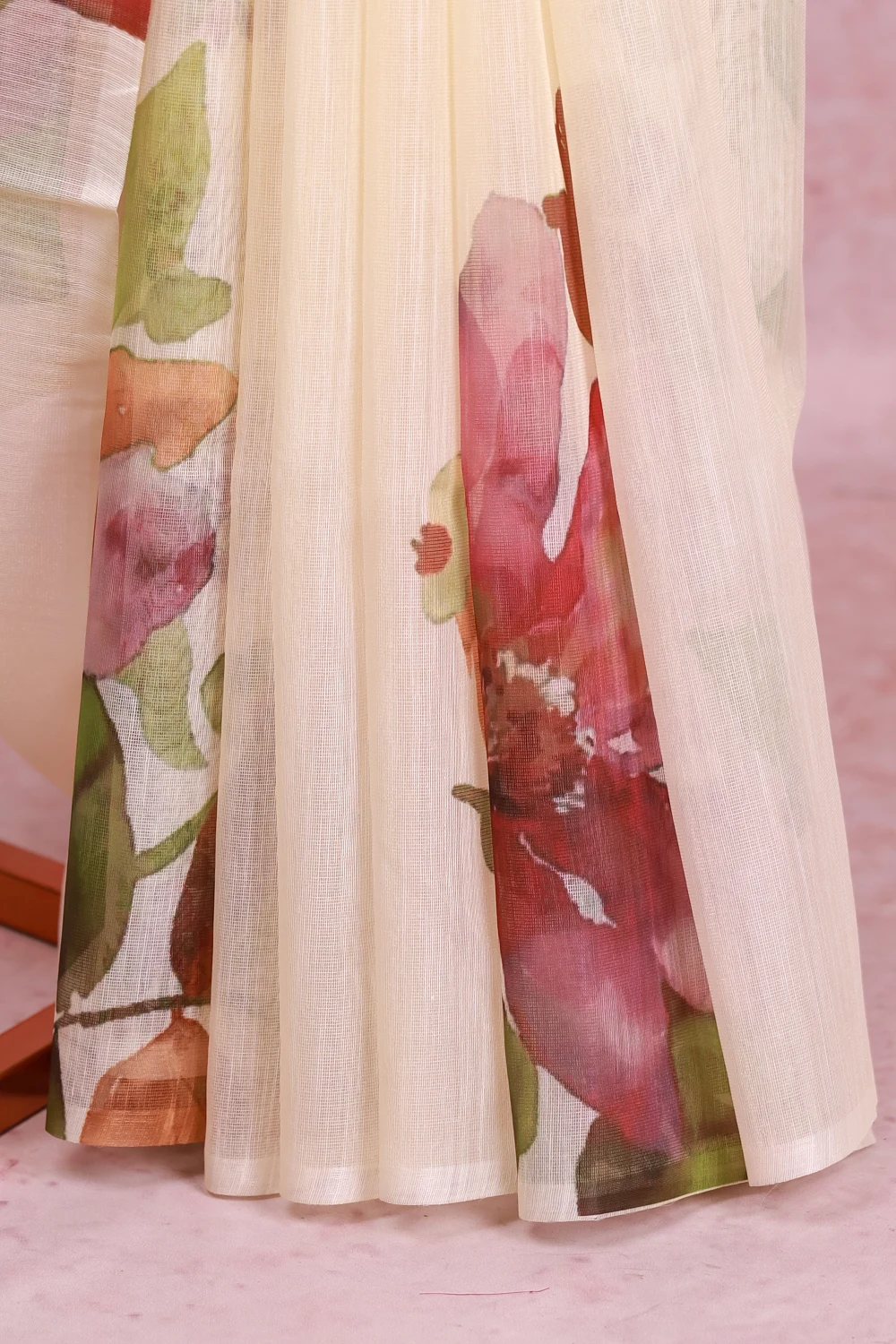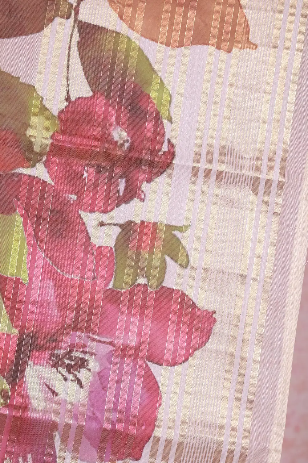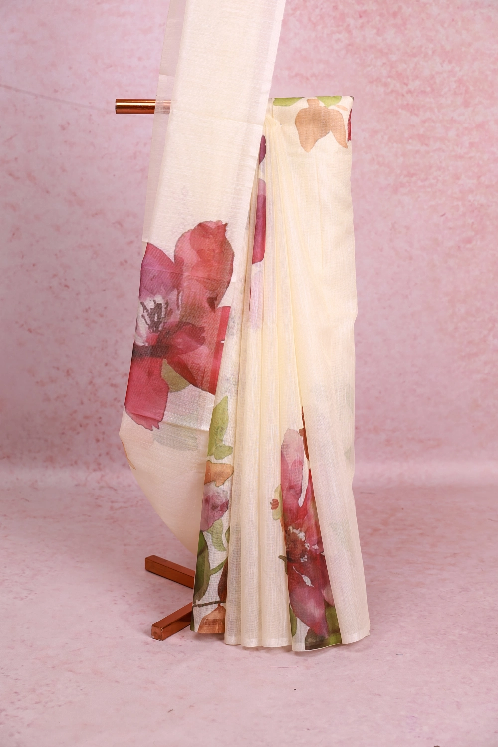 Off White Tissue Organza Floral Design Saree without Border. Includes Unstitched Blouse