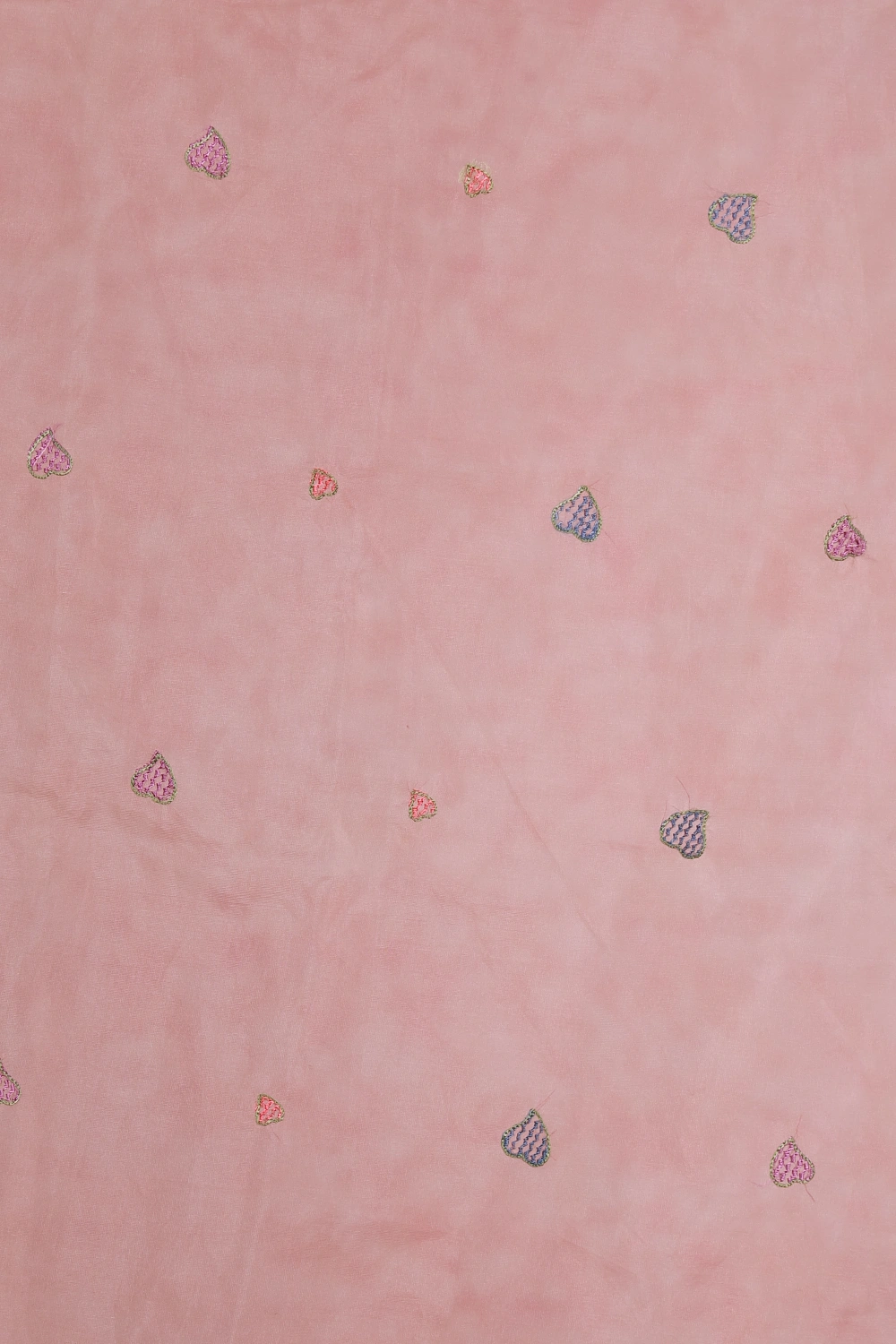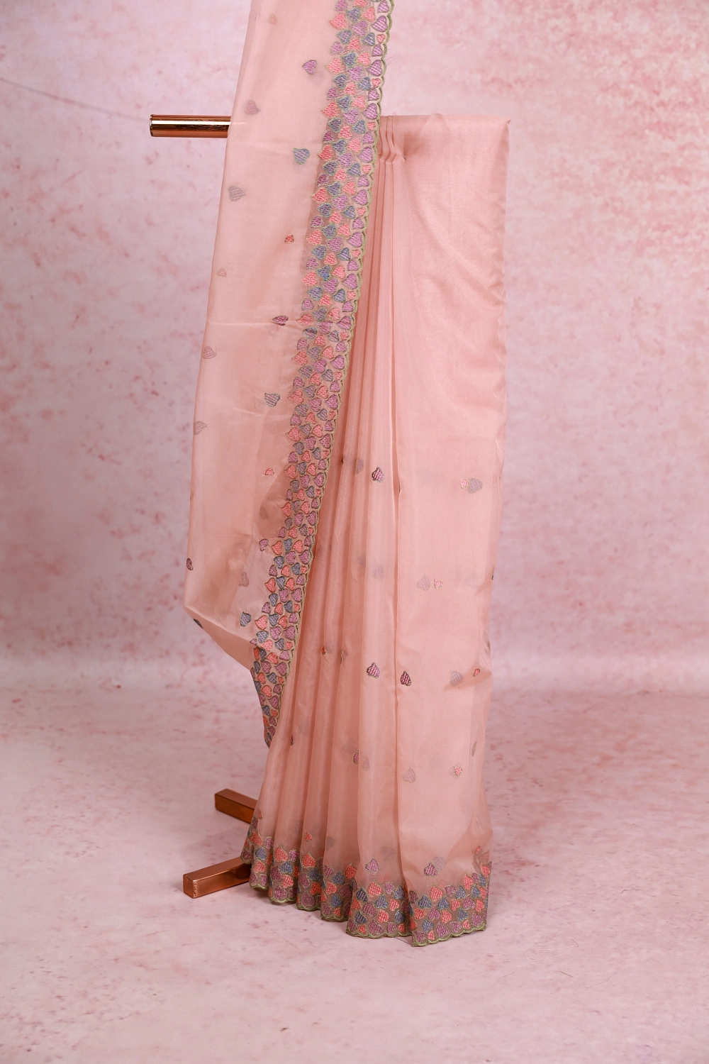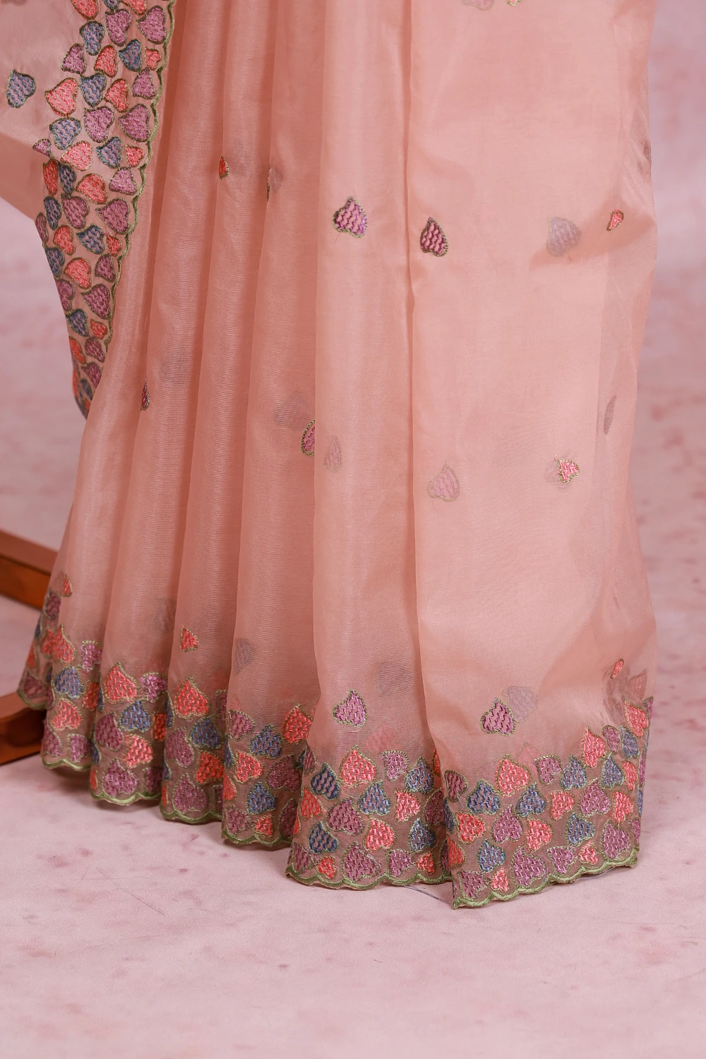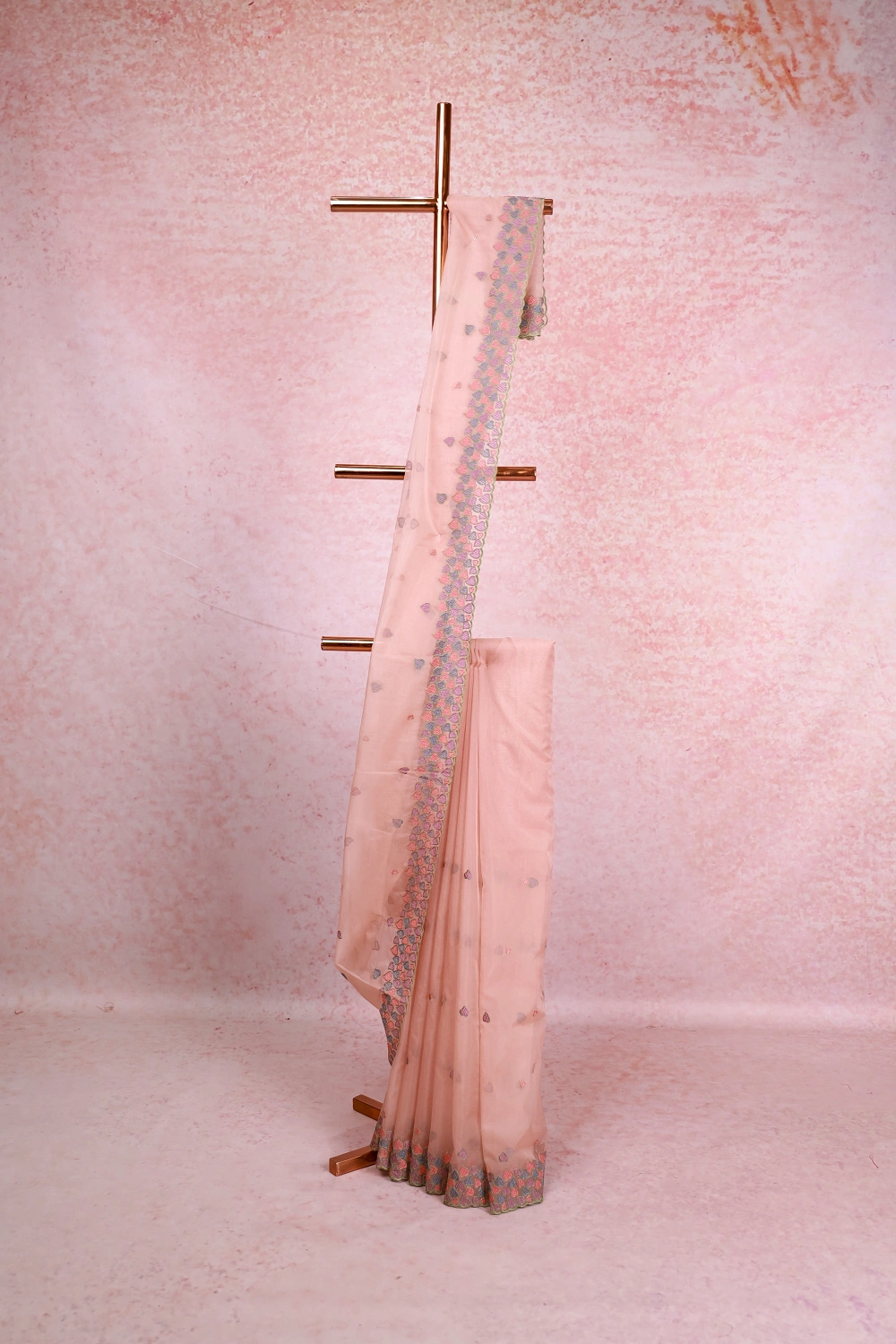 Onion Color Organza Butta Saree With Scalp Border. Includes Un Stitched Blouse