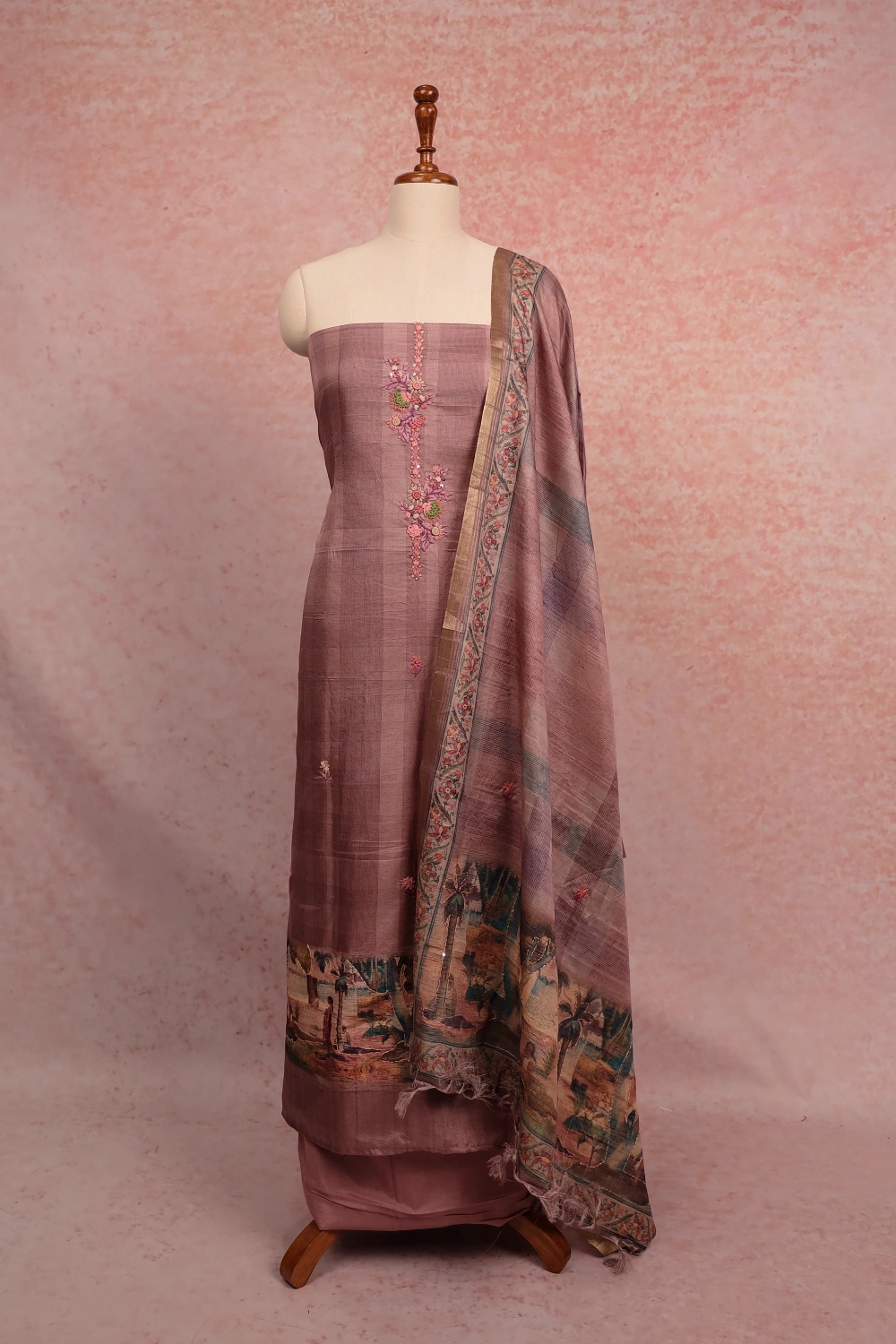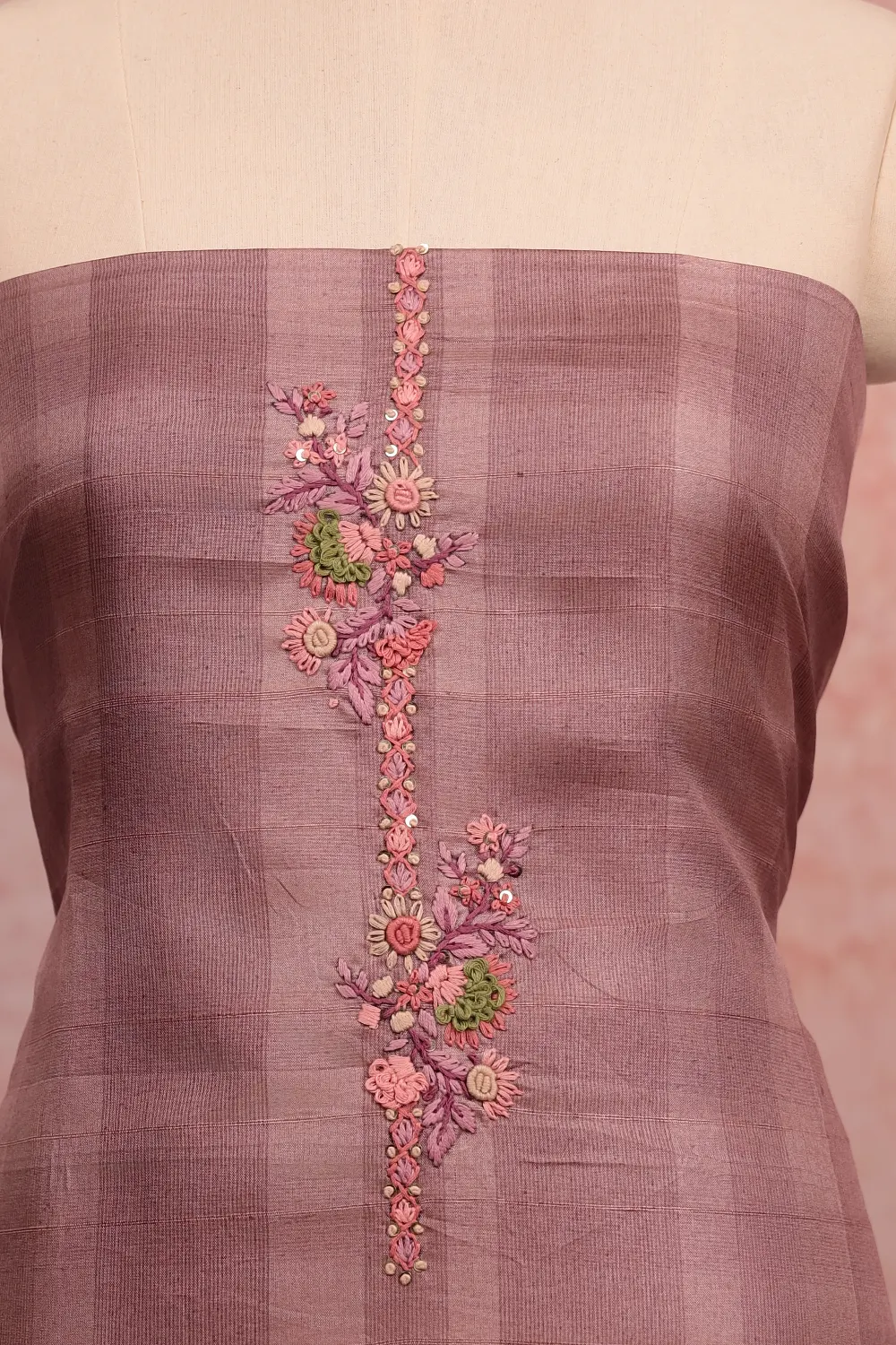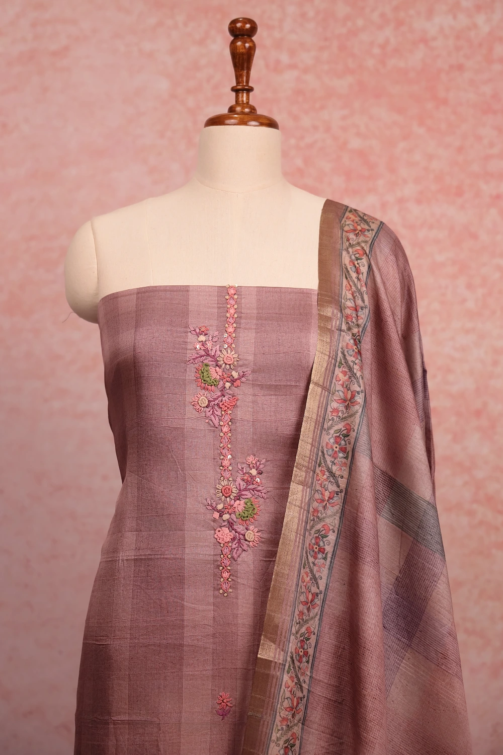 Onion Pink Chanderi Embroidery Unstitched Churidar Material. Includes Dupatta.
