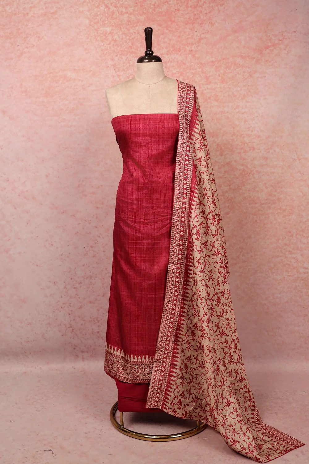 Onion Pink Chanderi Silk Plain Body Unstitched Churidar Material. Includes Dupatta.