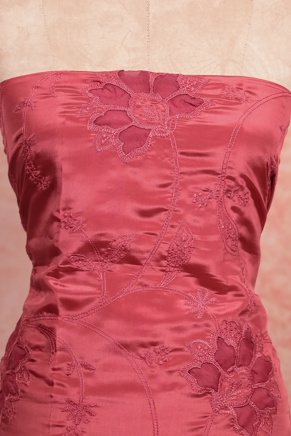 Onion Pink Crepe Applic Work Unstitched Churidhar Material