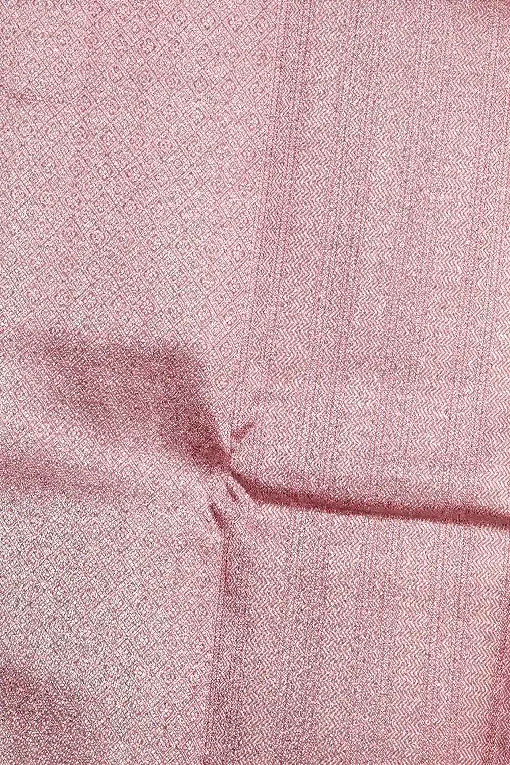 Onion Pink Kancheepuram Silk Brocade Saree with Silver Border. Includes Unstitched Blouse