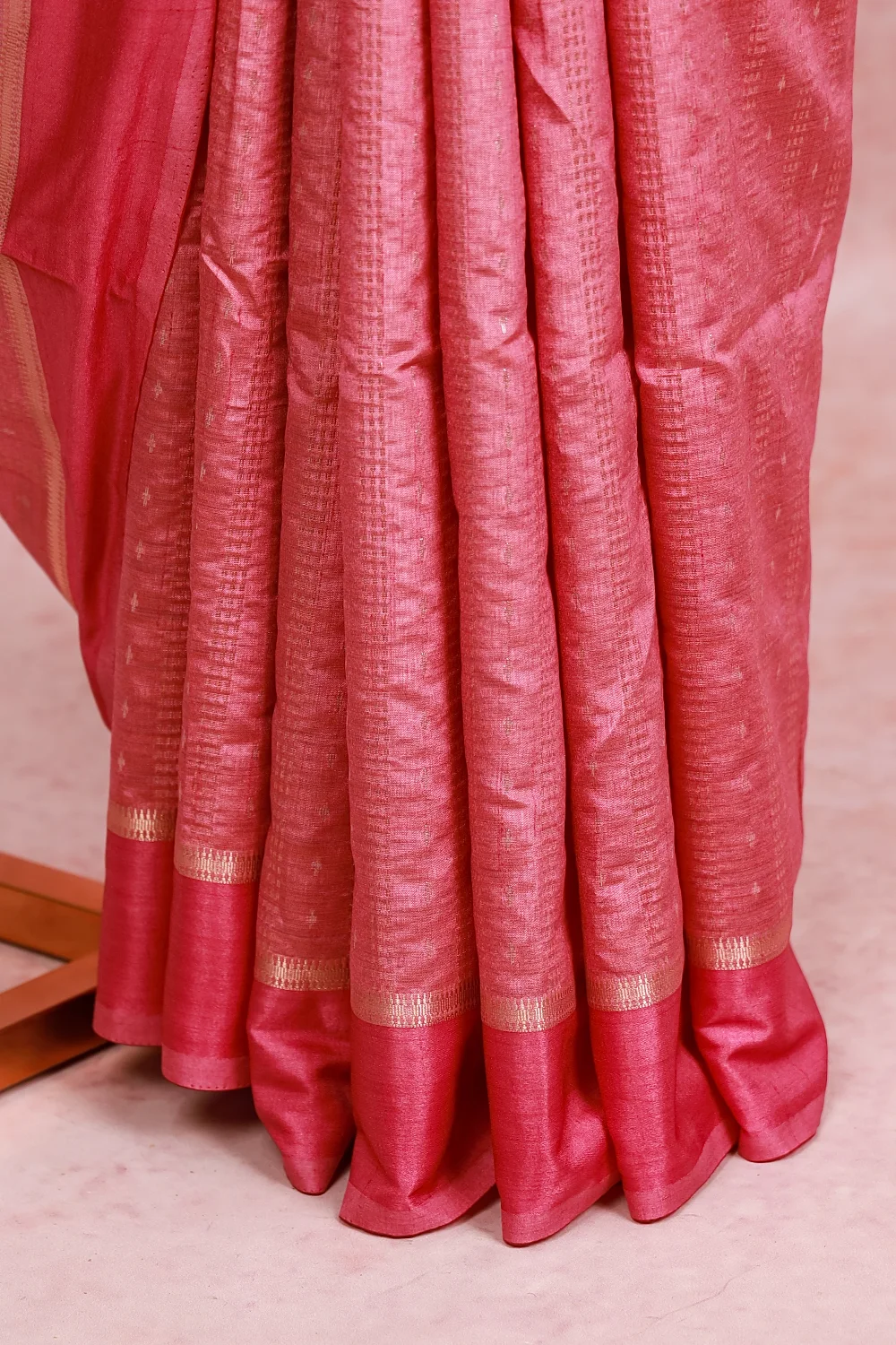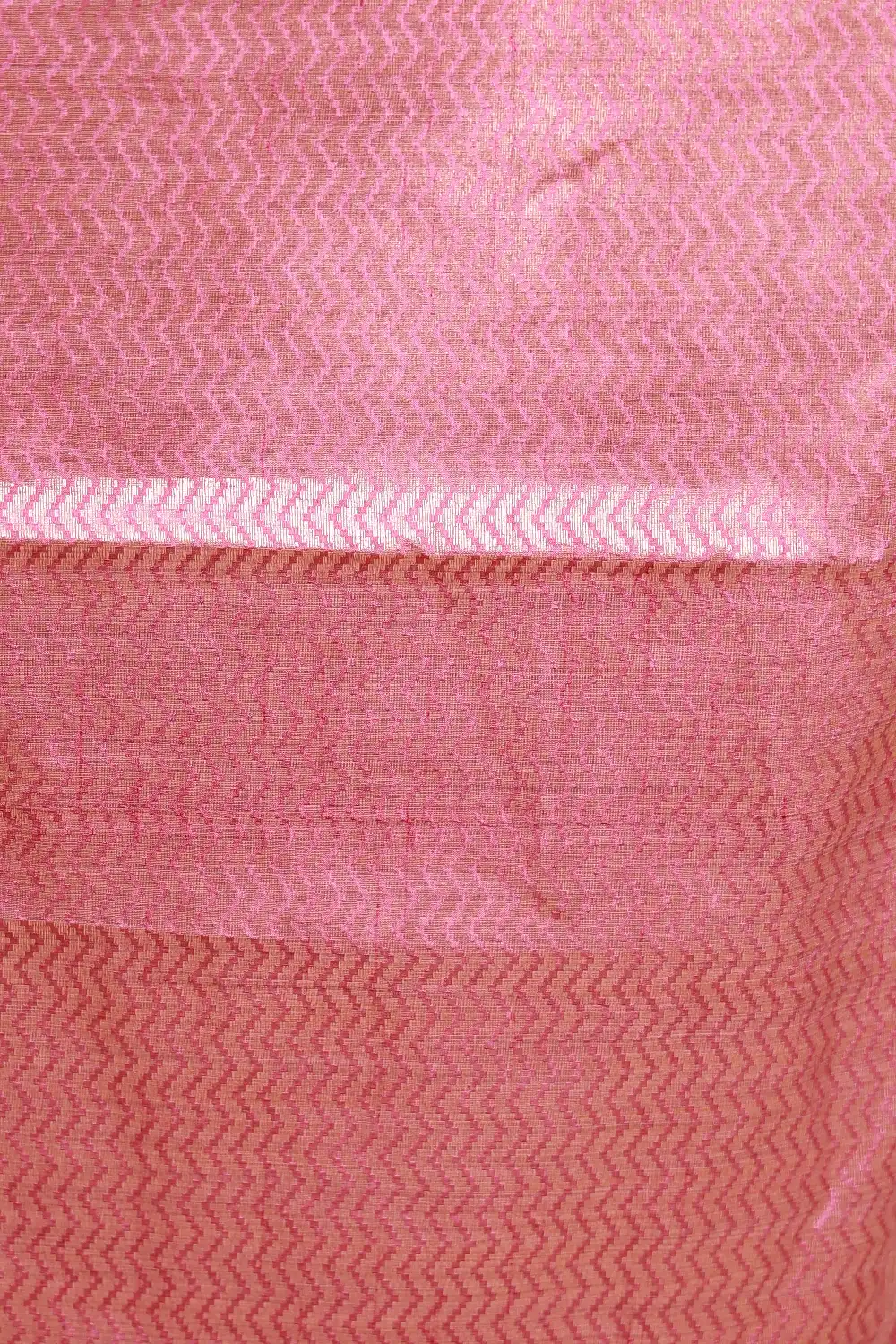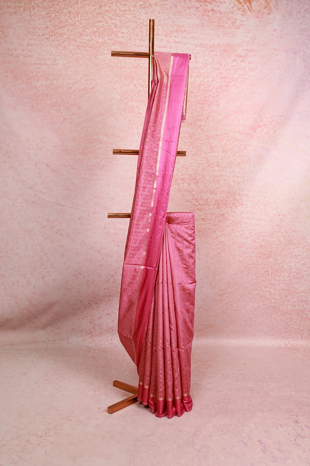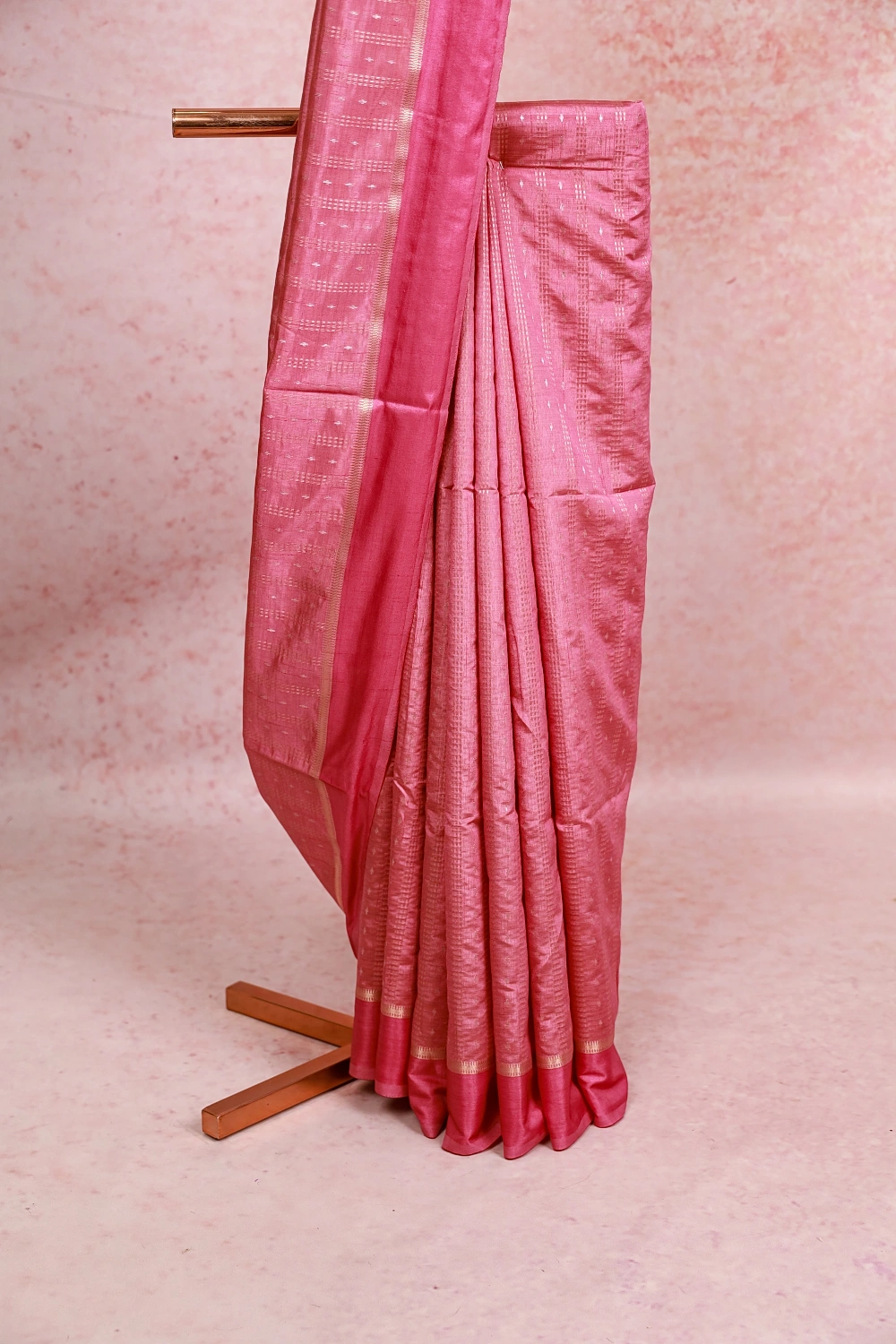 Onion Pink Semi Banarasi Stripes Saree With Plain Border. Includes Unstitched Blouse