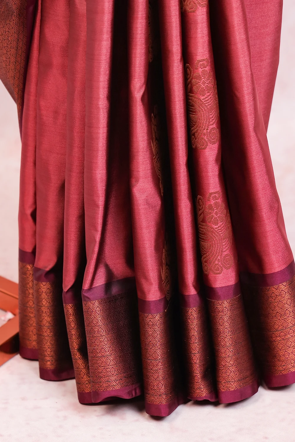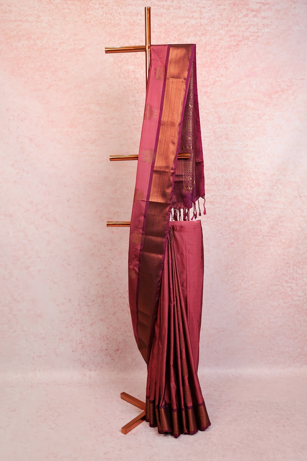Onion Pink Semi Kancheepuram Silk Designer Butta Saree with Designer Border. Includes Unstitched Blouse
