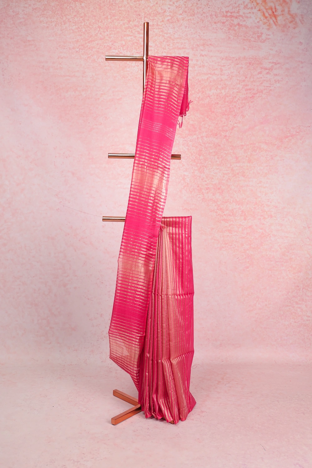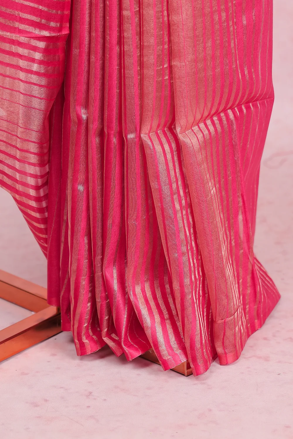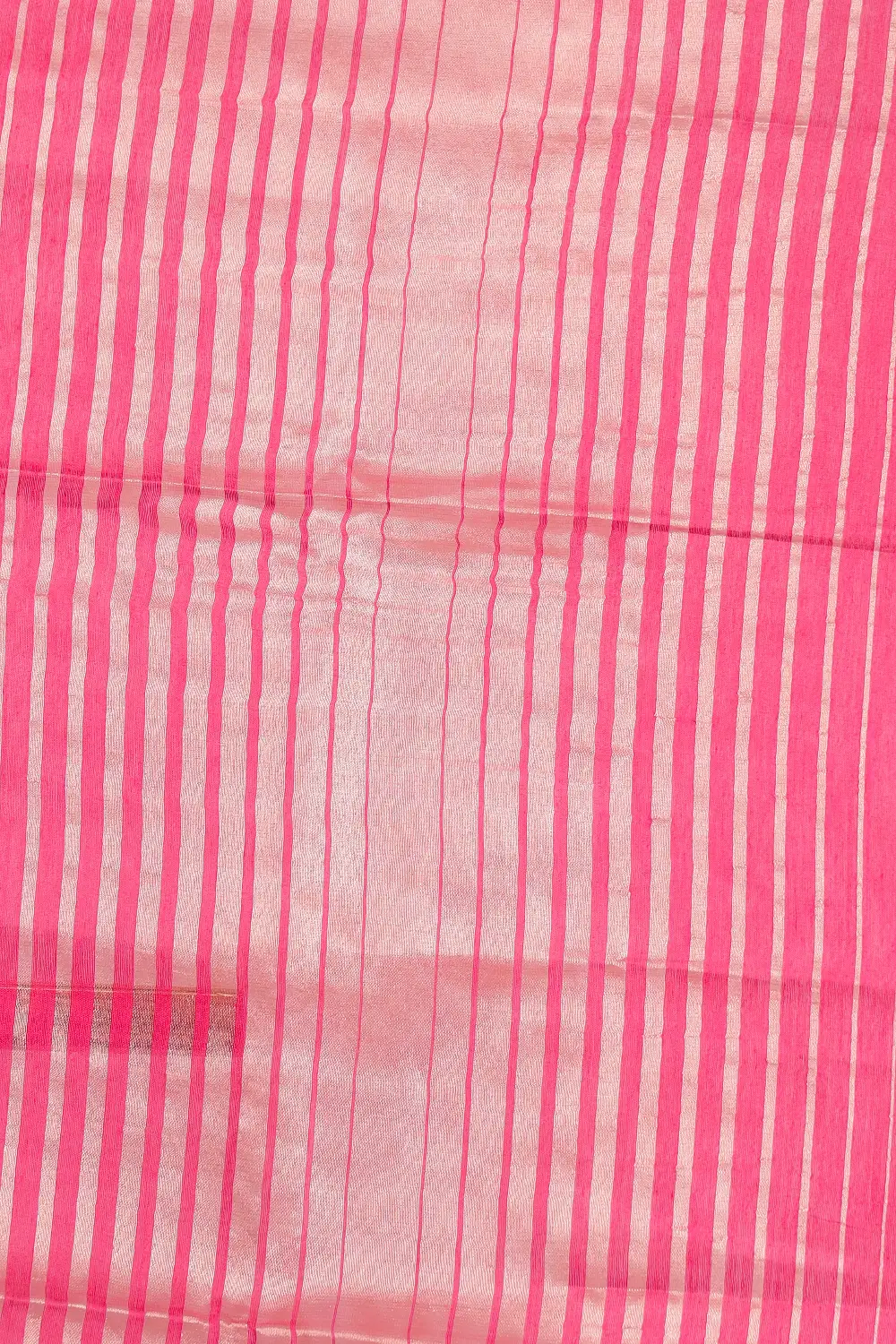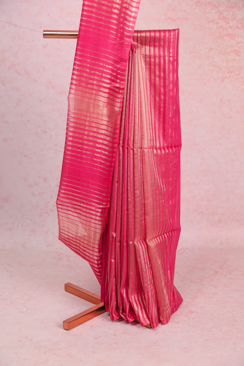Onion Pink Semi Tussar Lines Saree without Border. Includes Unstitched Blouse