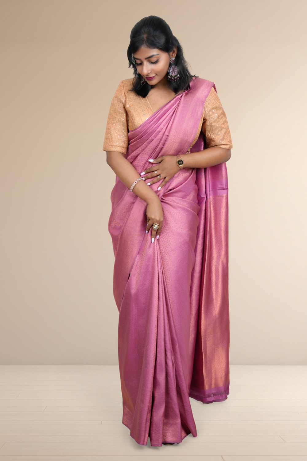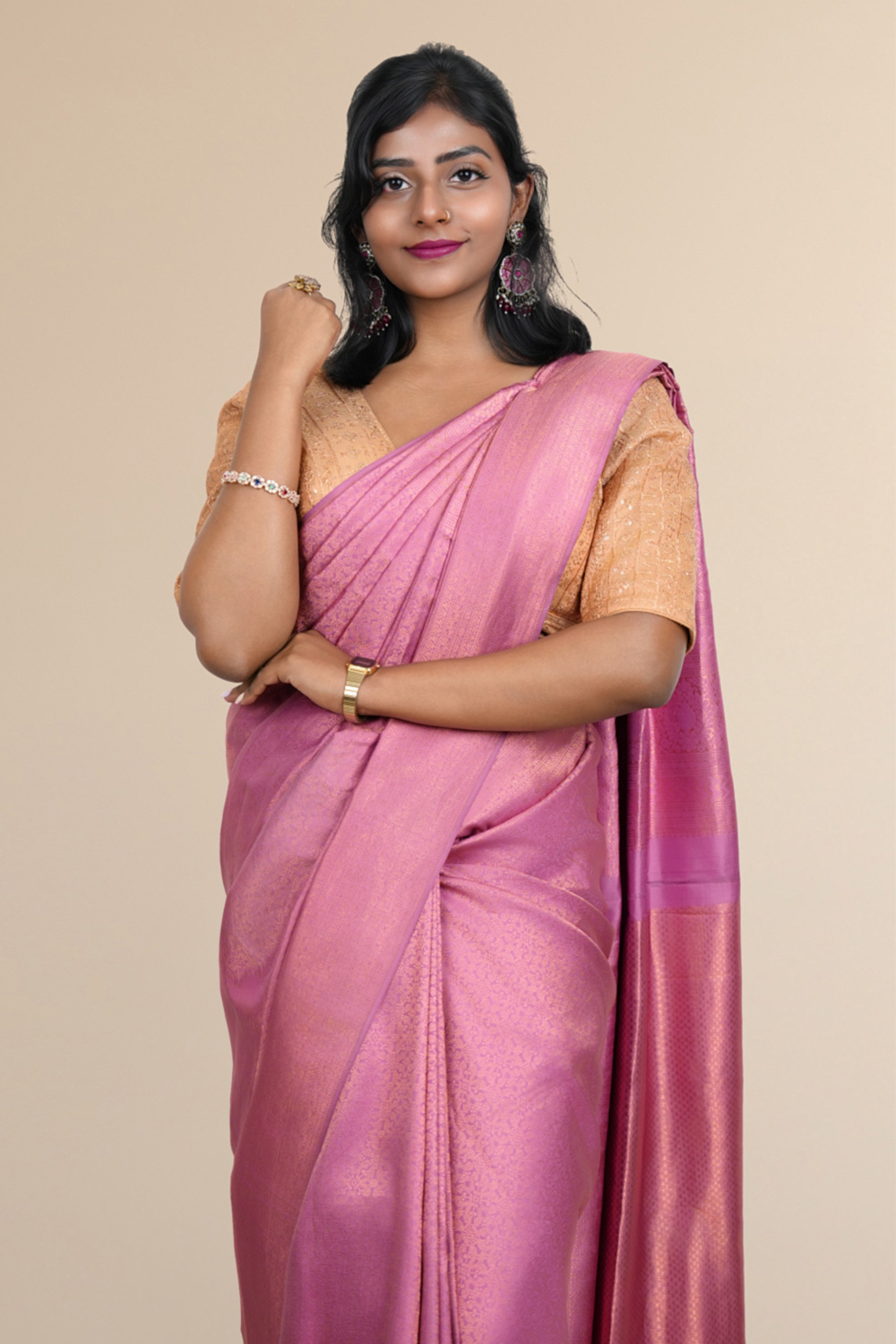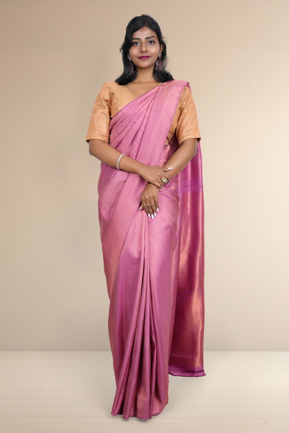 Onion Pink Silk Kancheepuram Saree