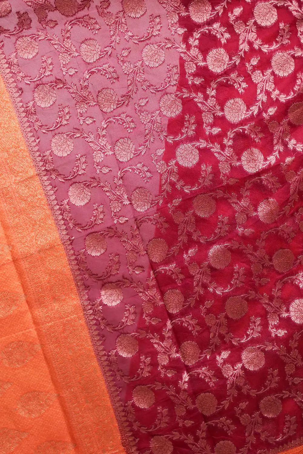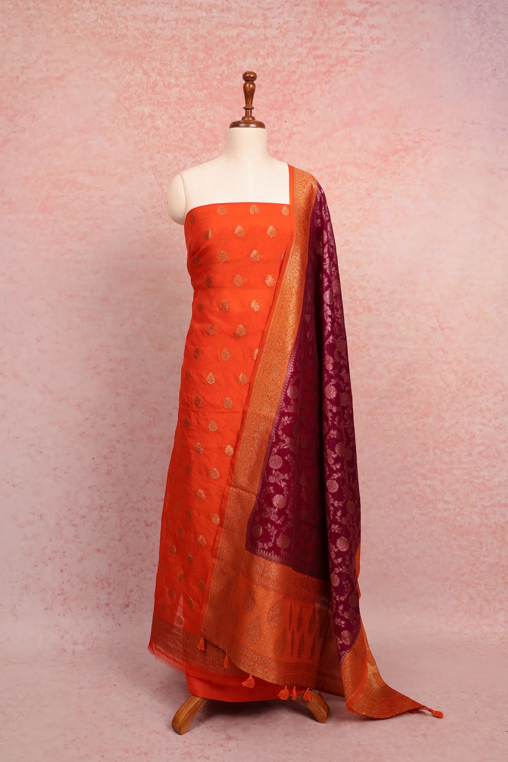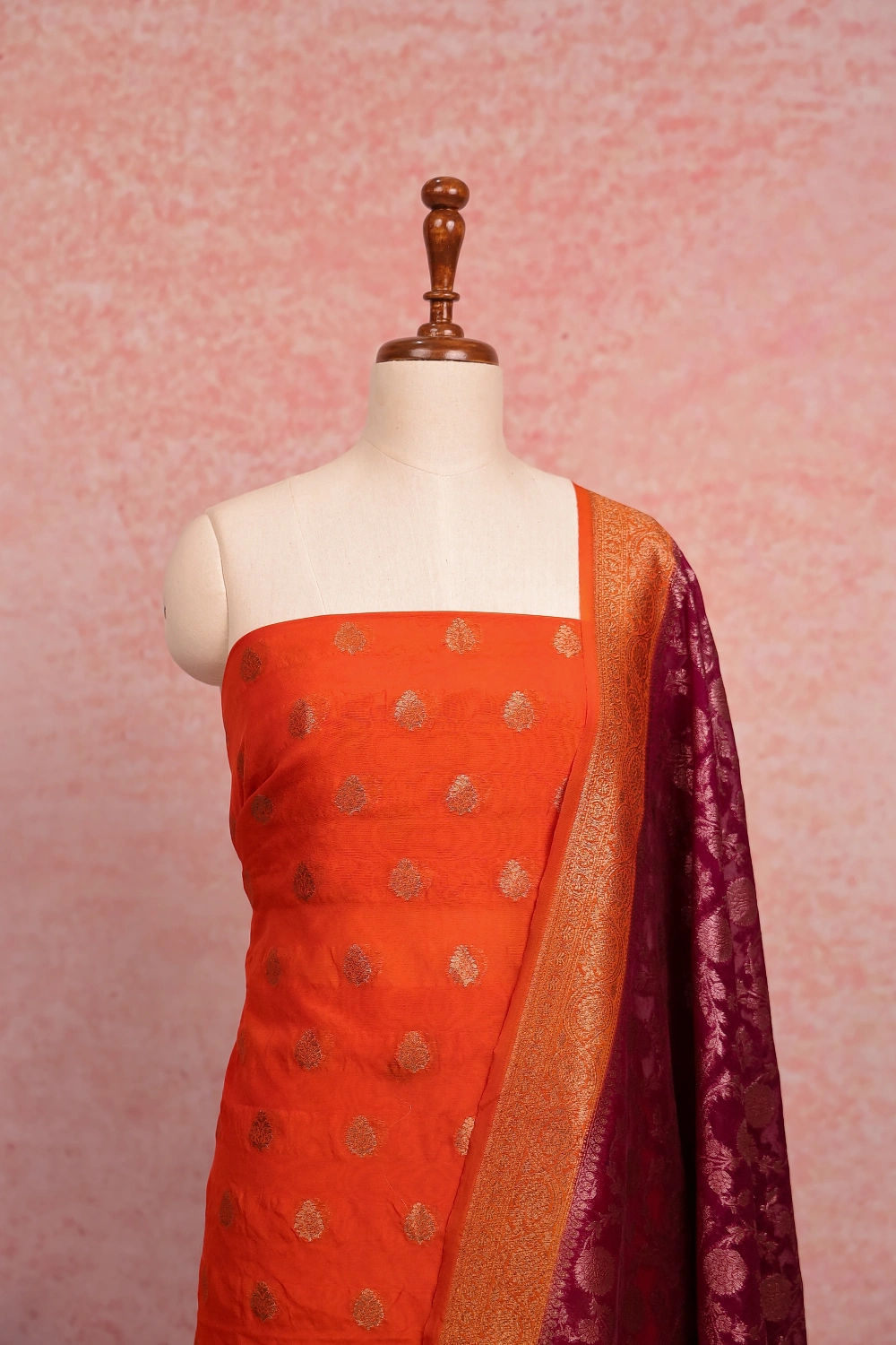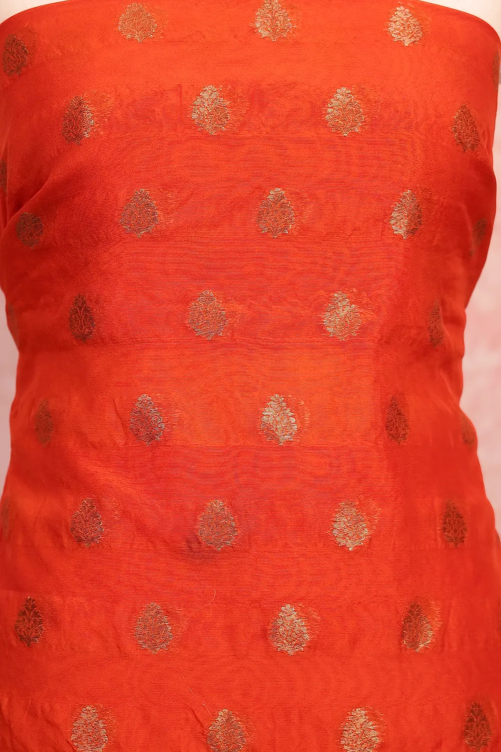 Orange Banarasi Butta Unstitched Churidar Material. Includes Dupatta.