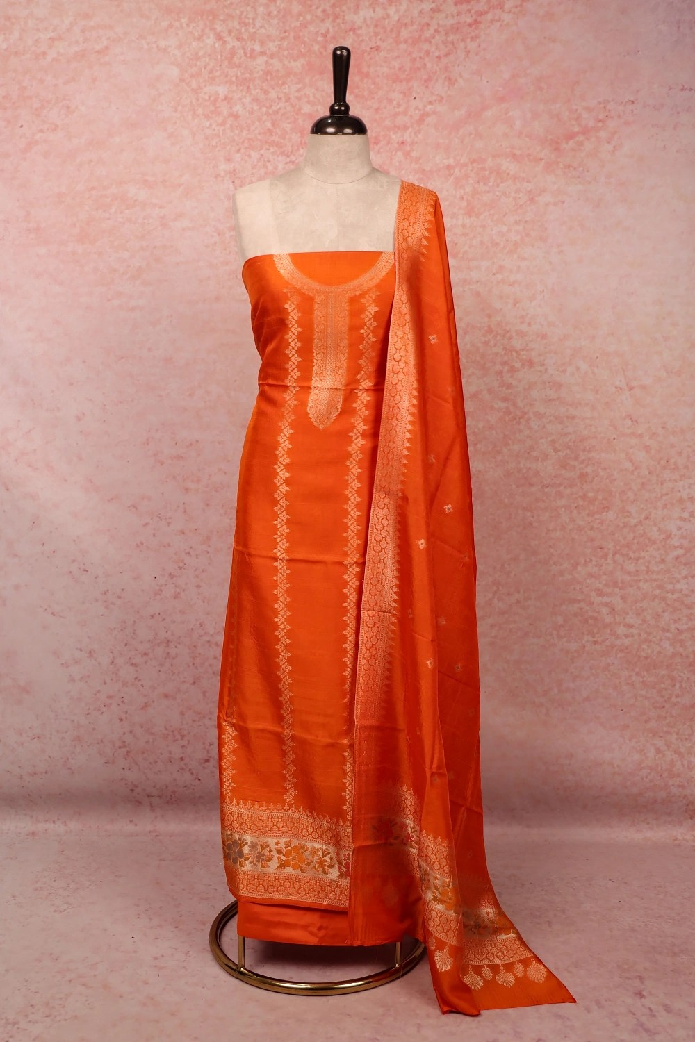 Orange Chanderi Silk Stripes Unstitched Churidhar Material