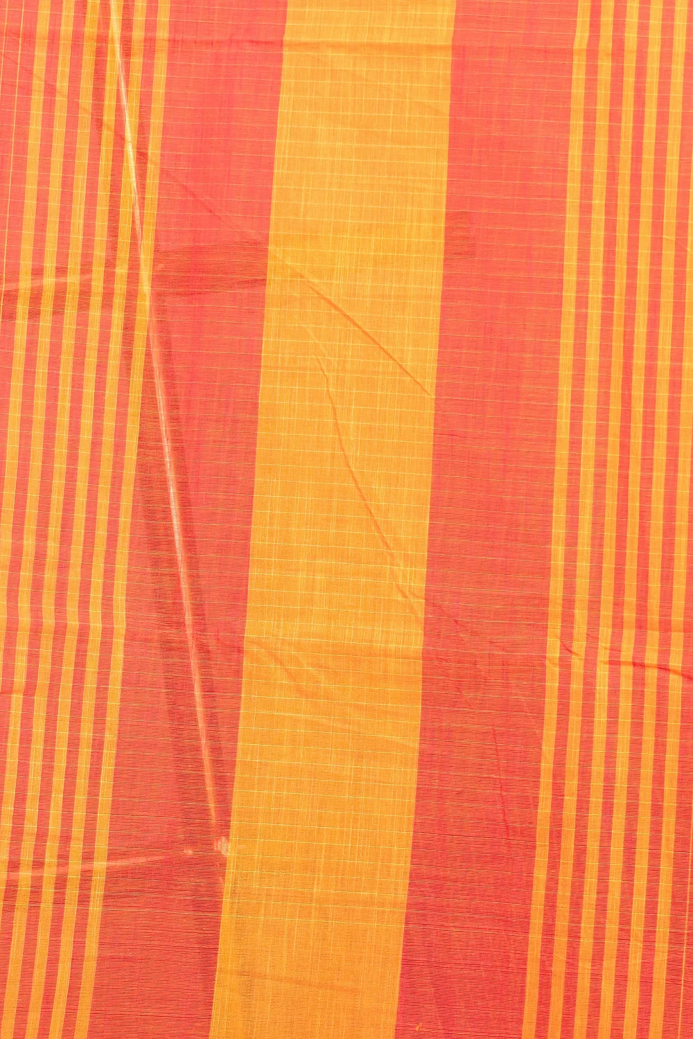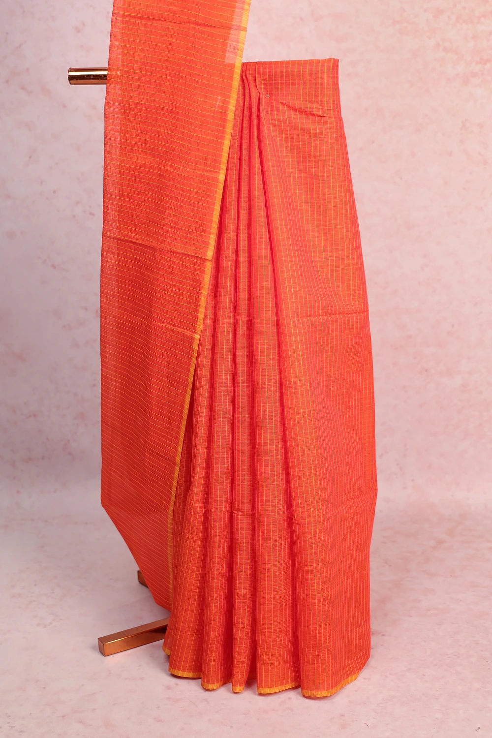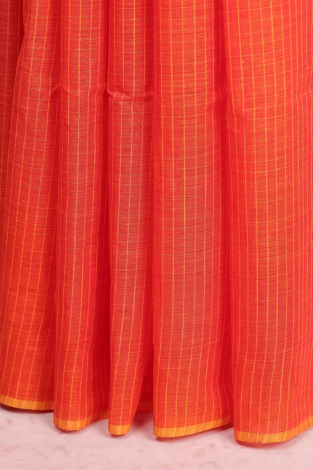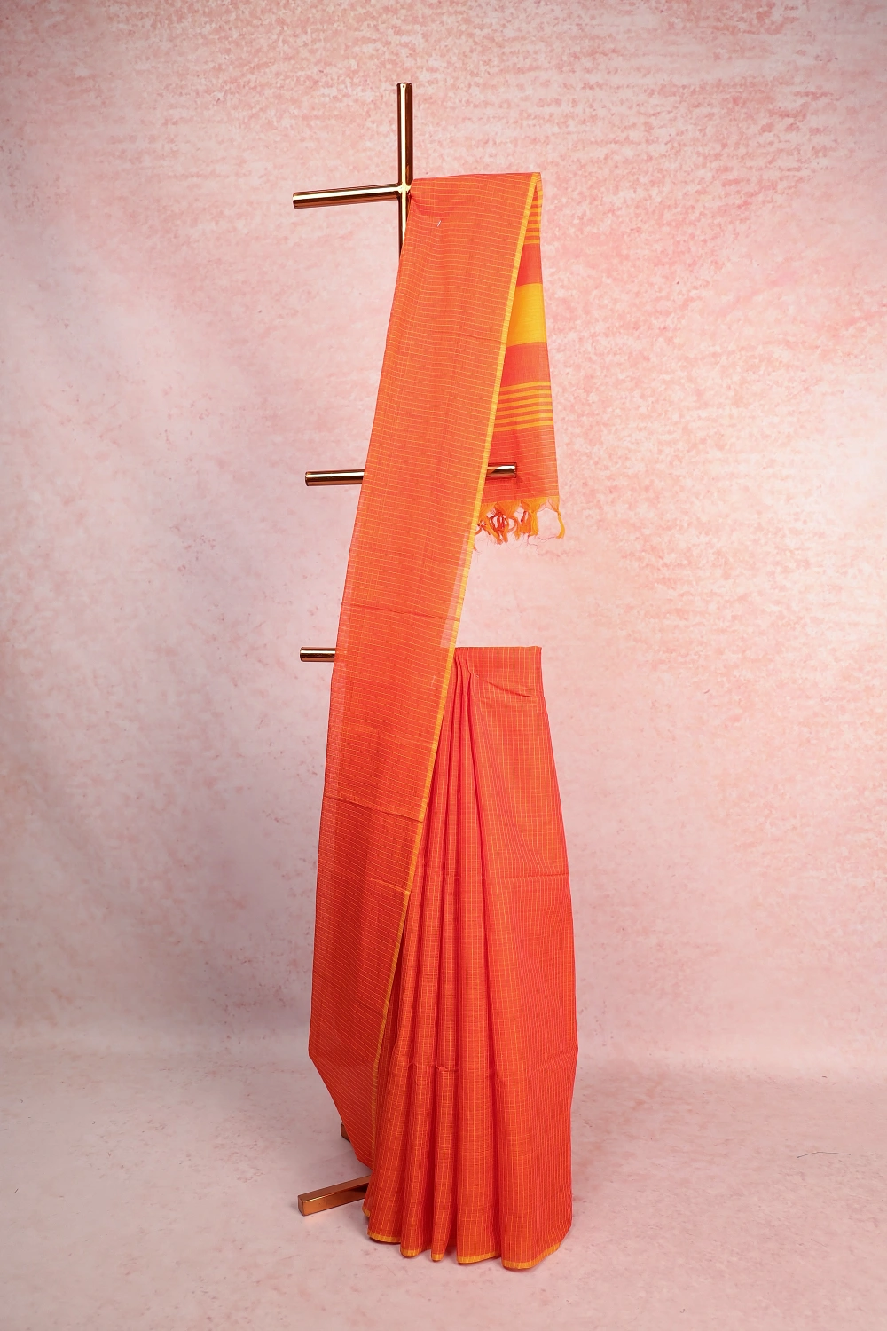 Orange Cotton Checks Saree with Without Border. Includes Unstitched Material