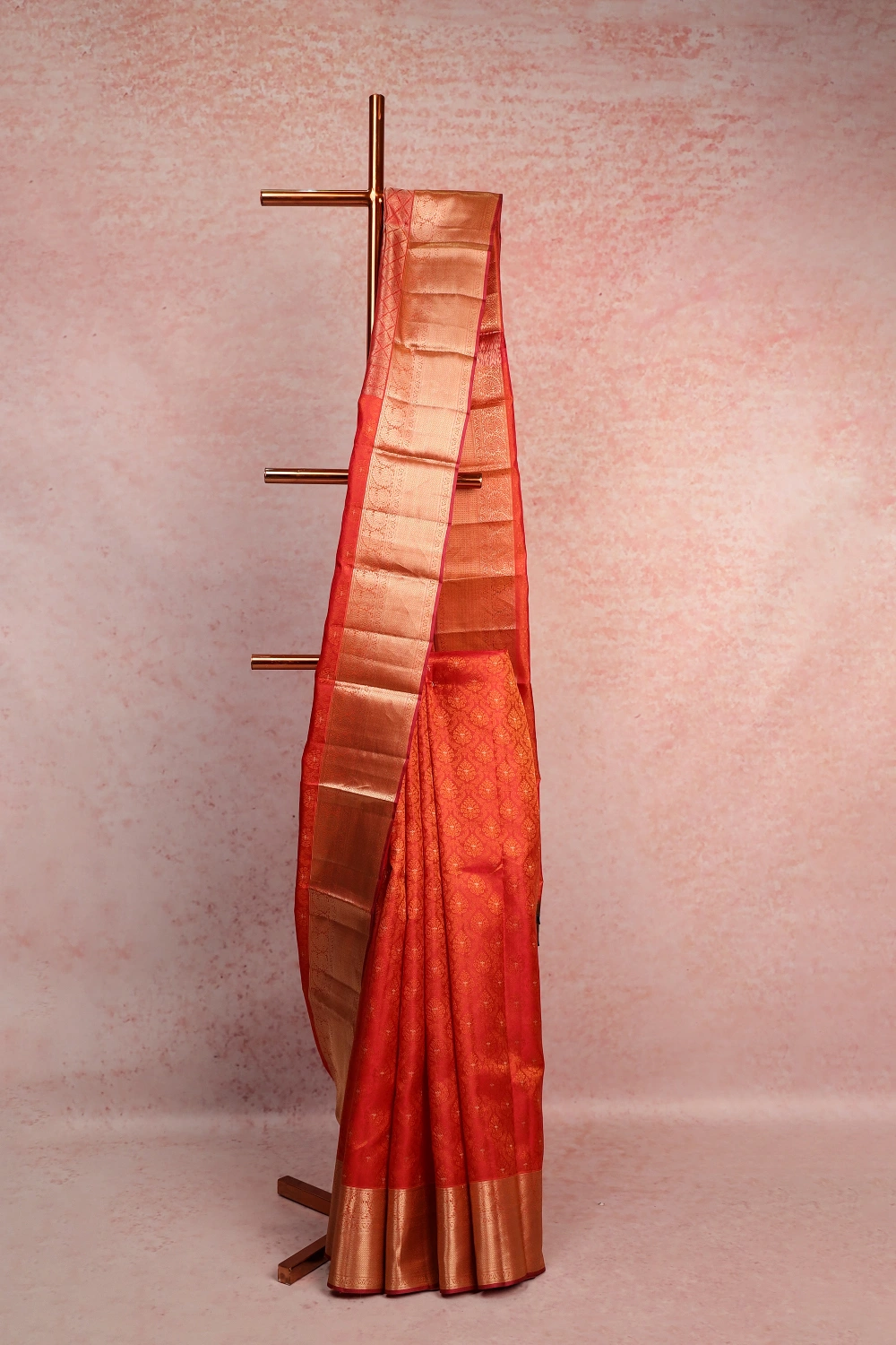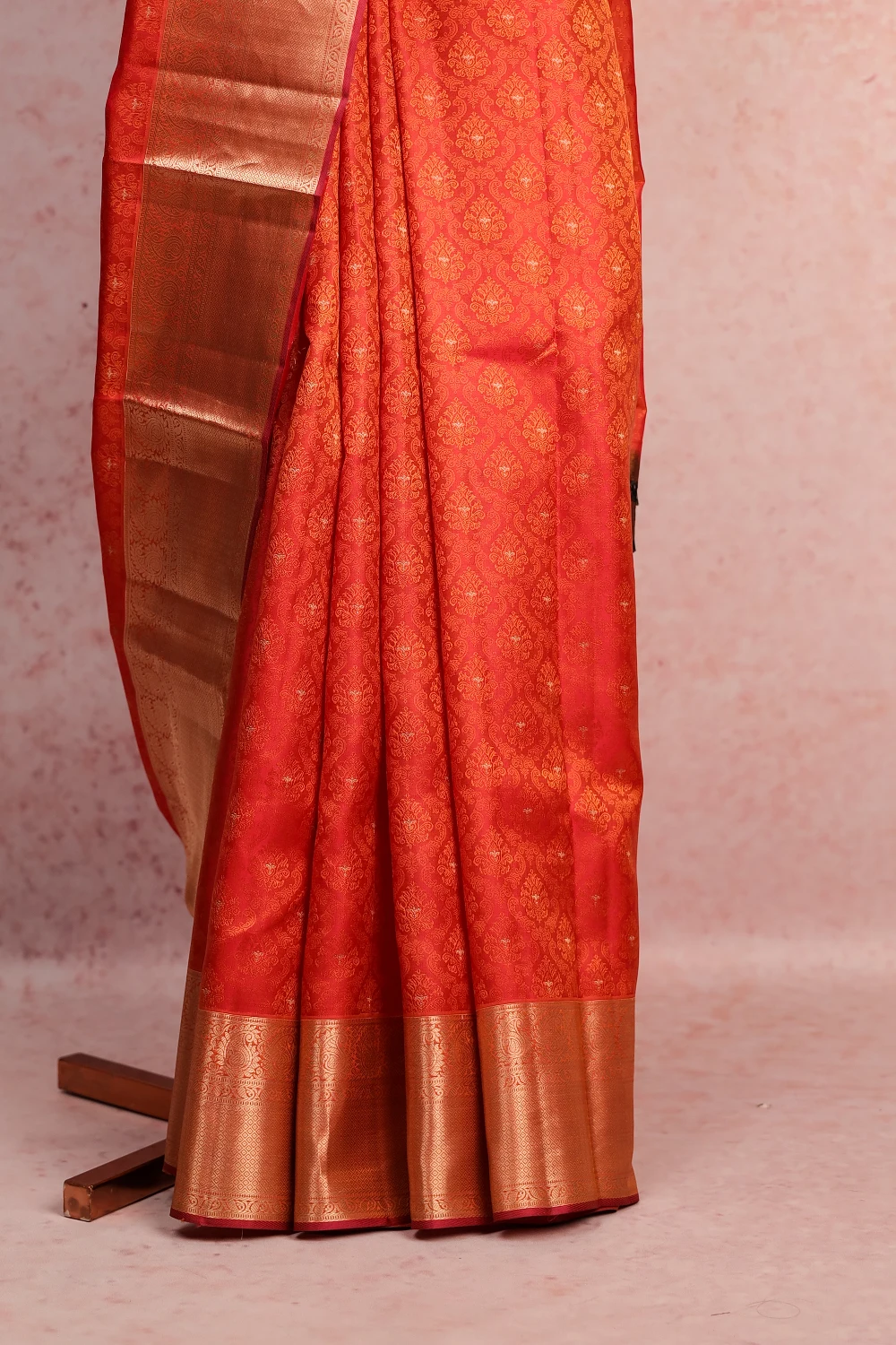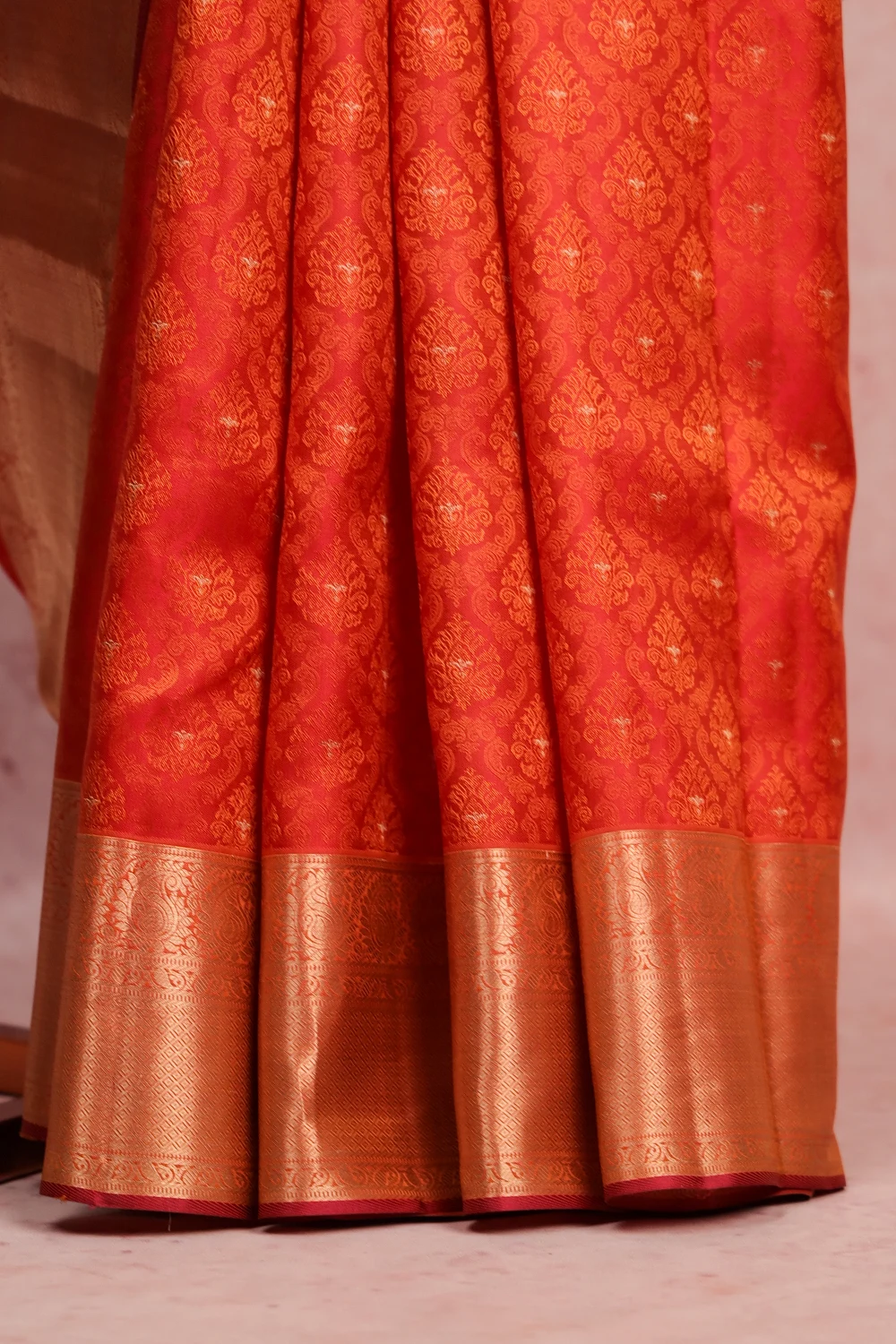 Orange Kancheepuram Soft Silk Self Design Saree with Designer Border. Includes Unstitched Blouse