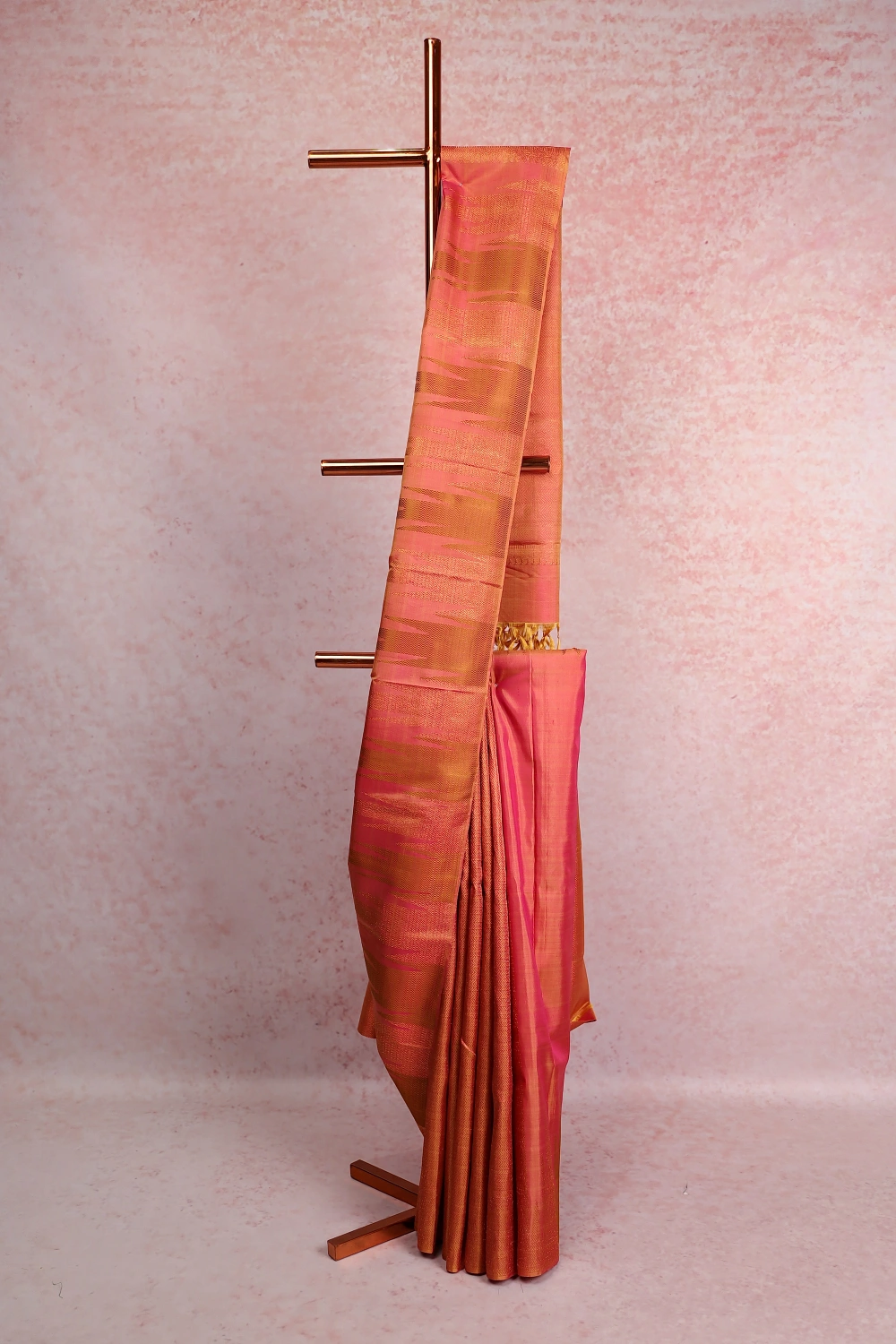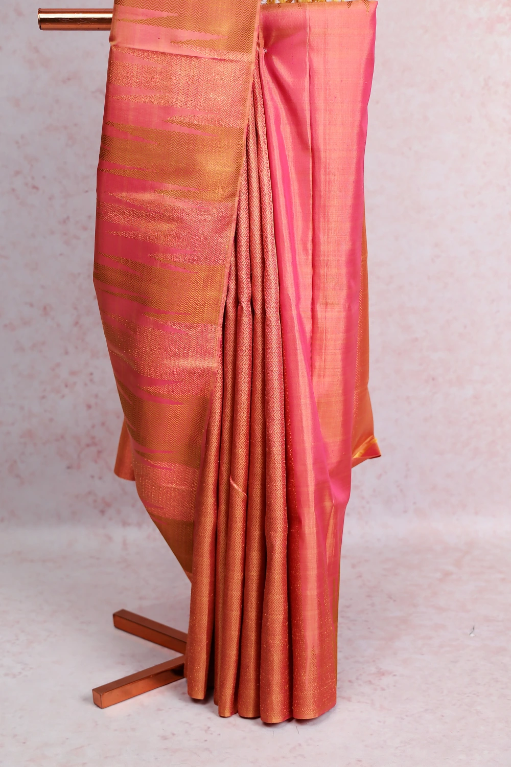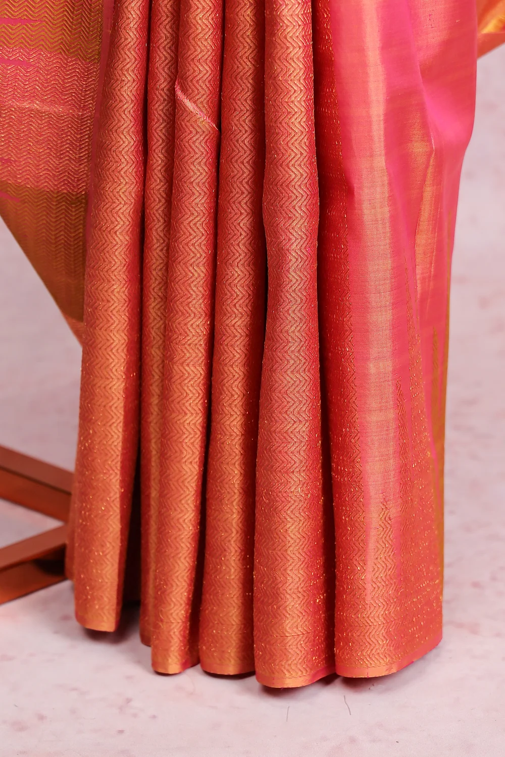 Orange Pink Kancheepuram Silk Saree