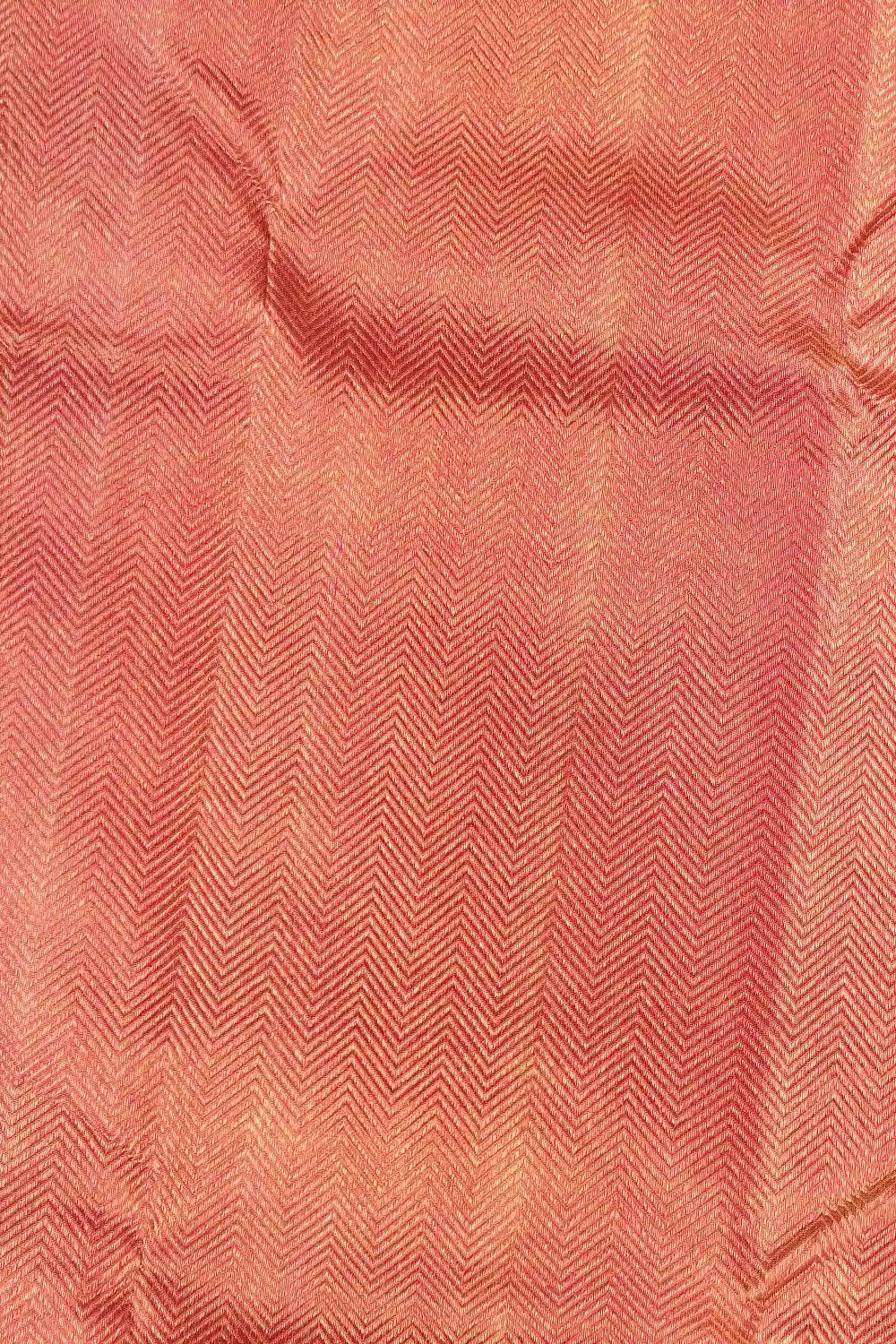 Orange Pink Kancheepuram Silk Plain Body Saree With Temple Border. Includes Un Stitched Blouse