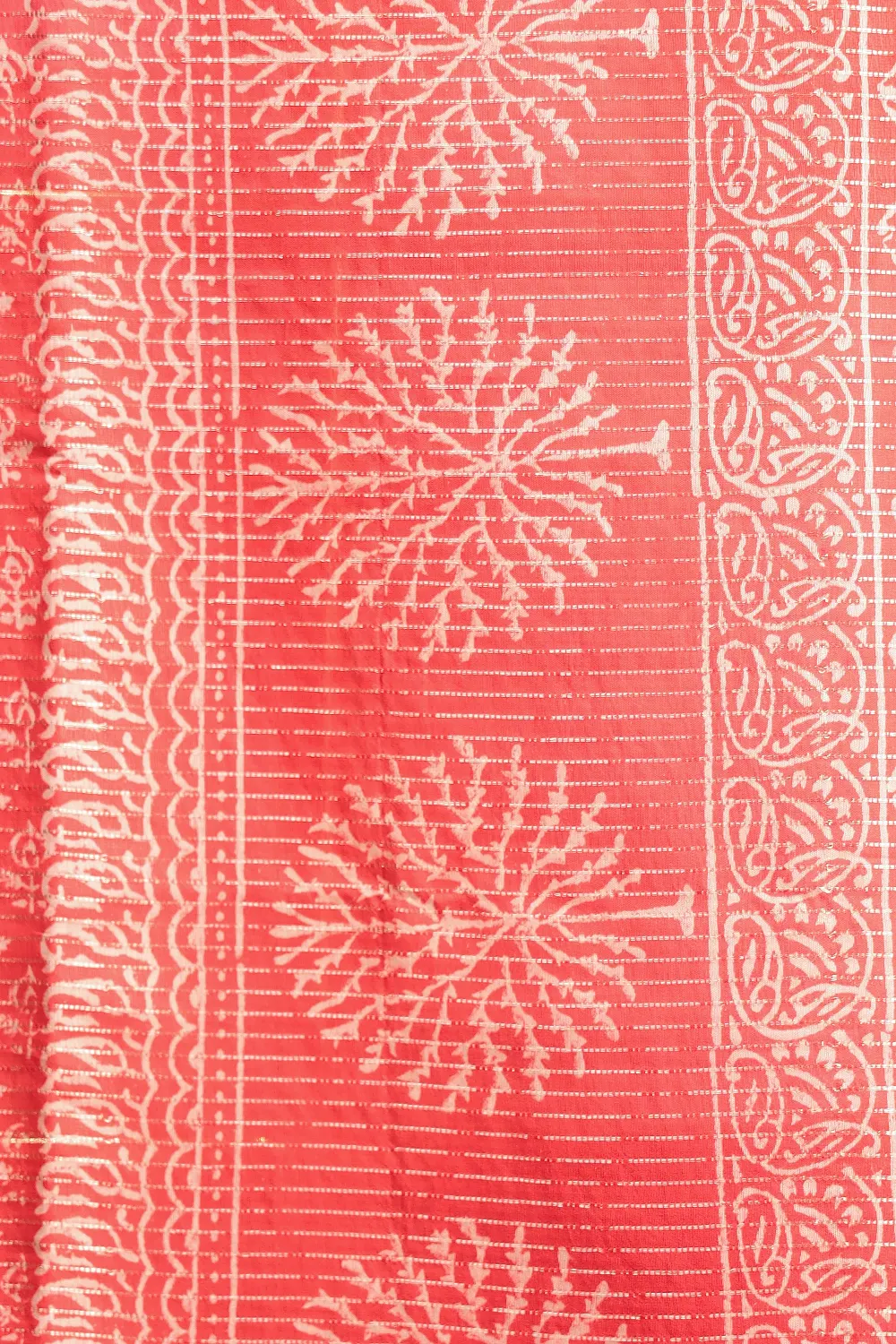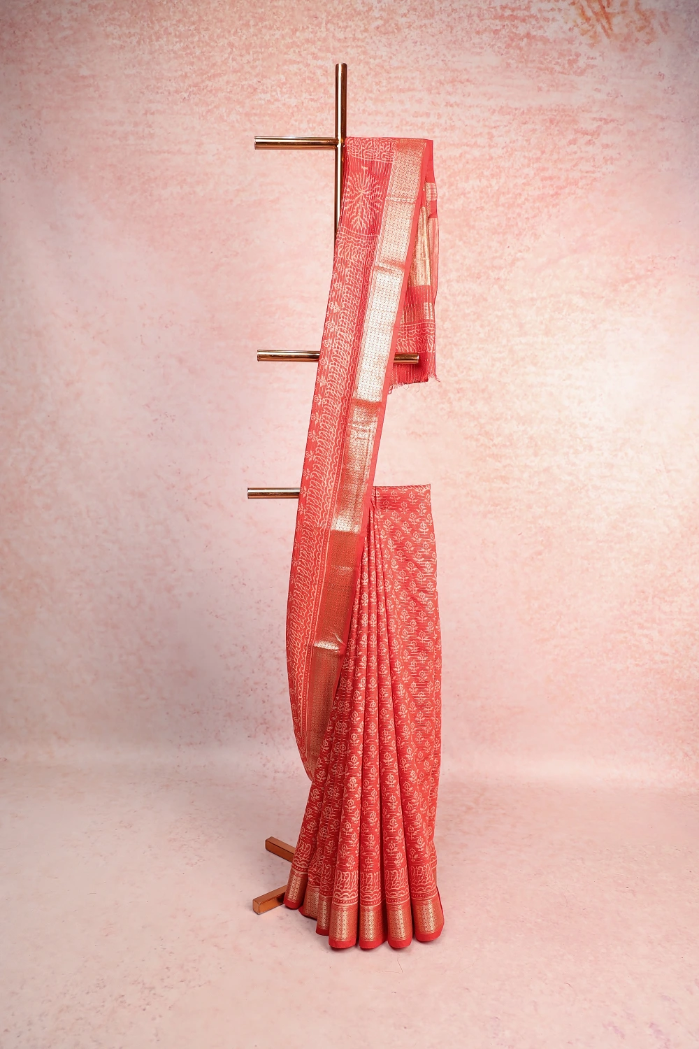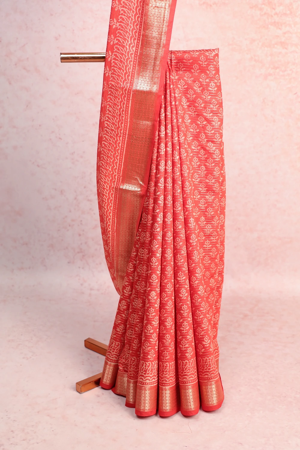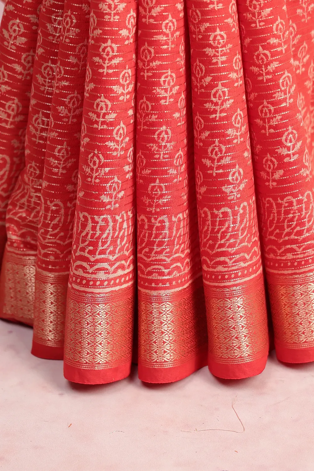 Orange Semi Silk Printed Saree with Designer Border. Includes Unstitched Blouse