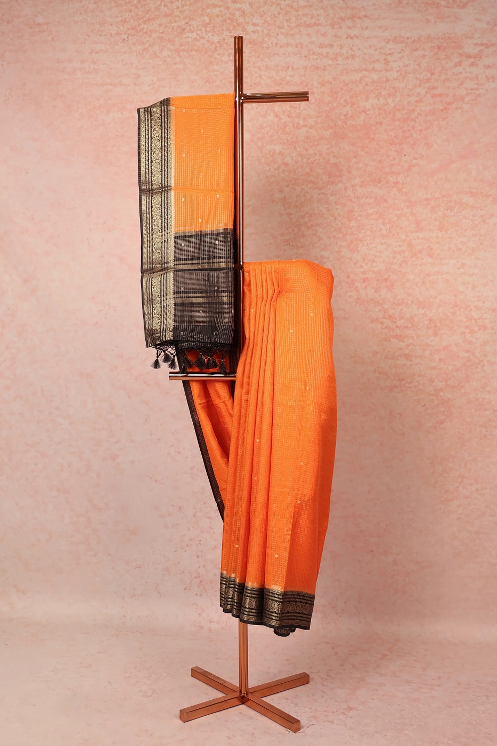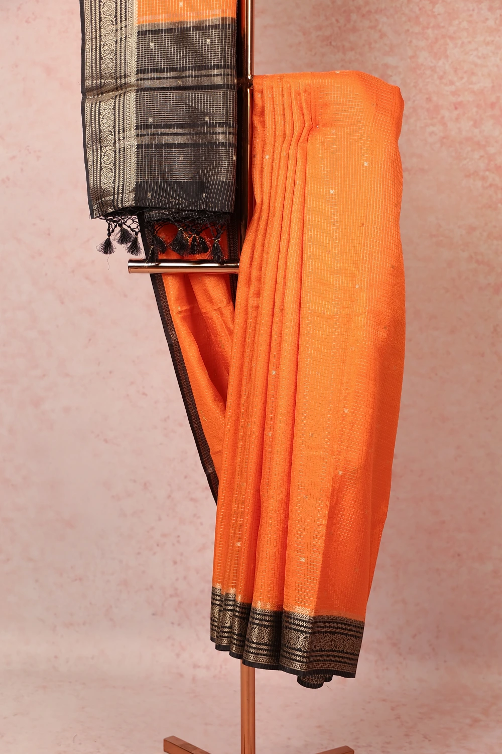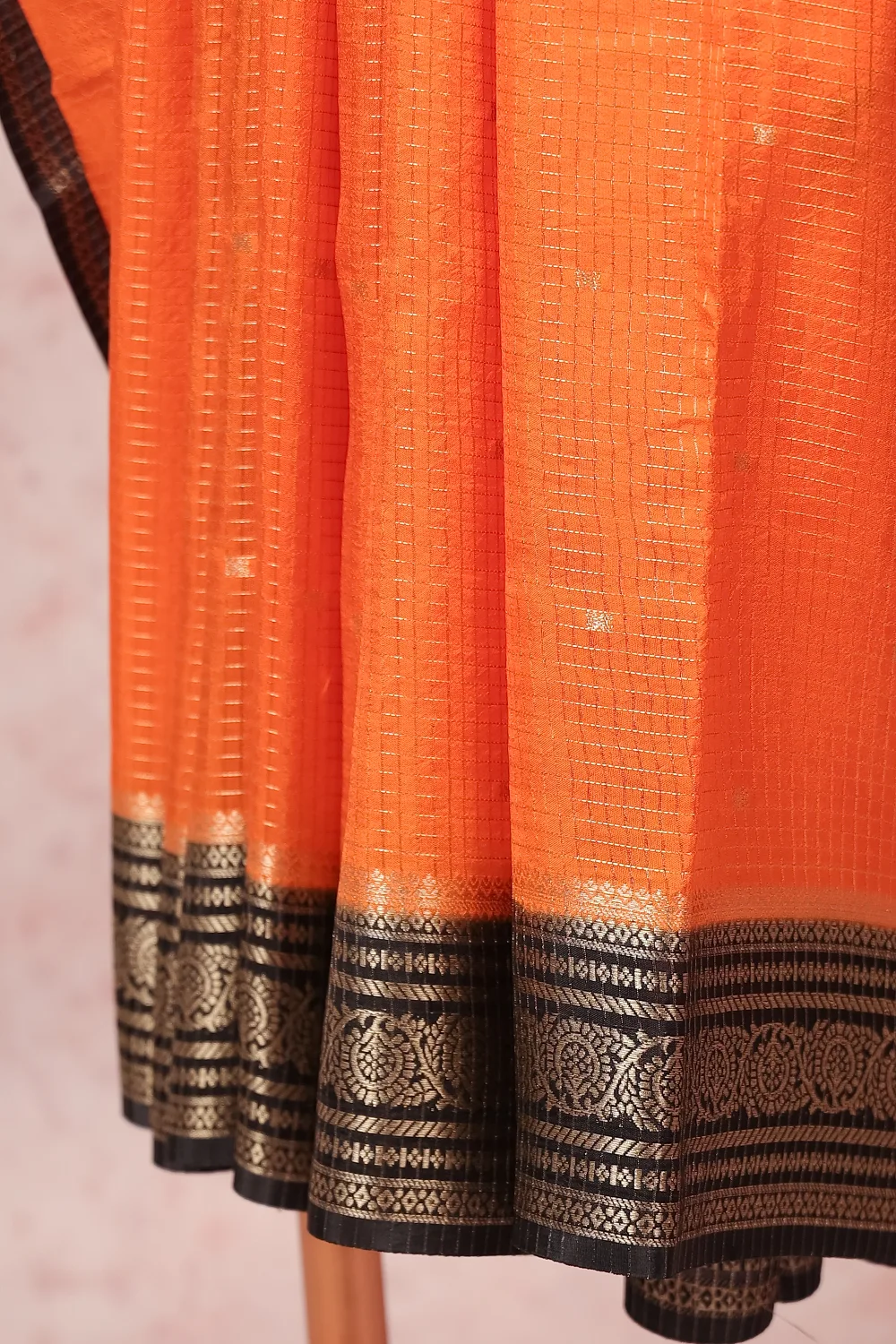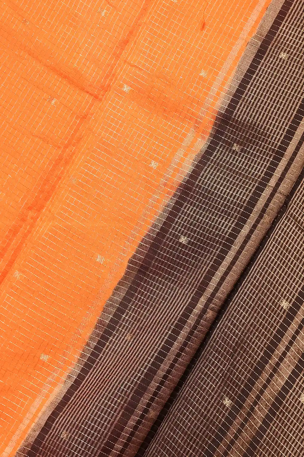 Orange Semi Silk Checks Saree with Designer border. Includes Unstitched Blouse